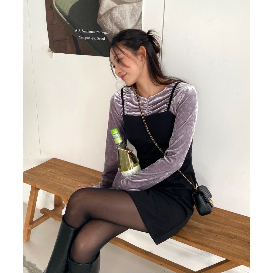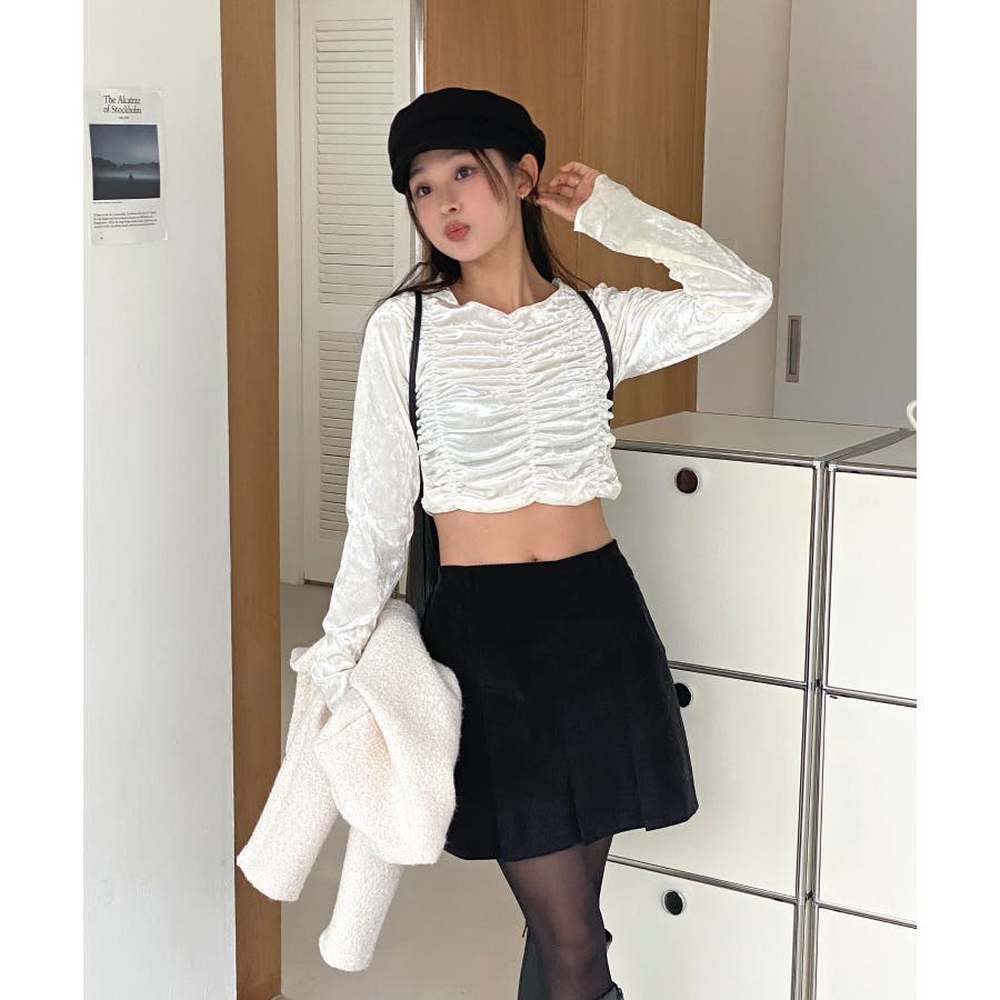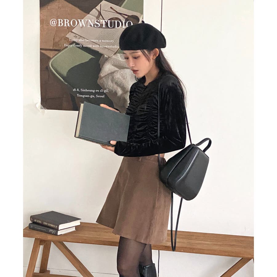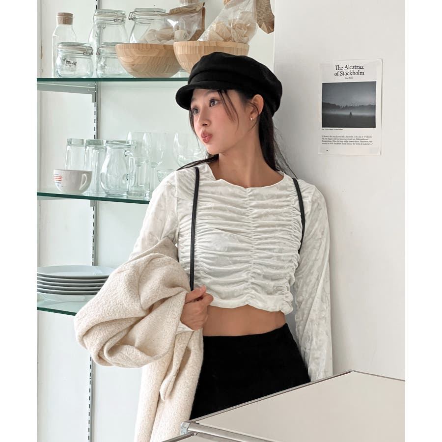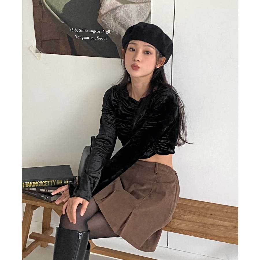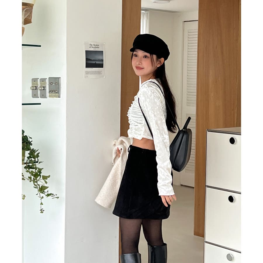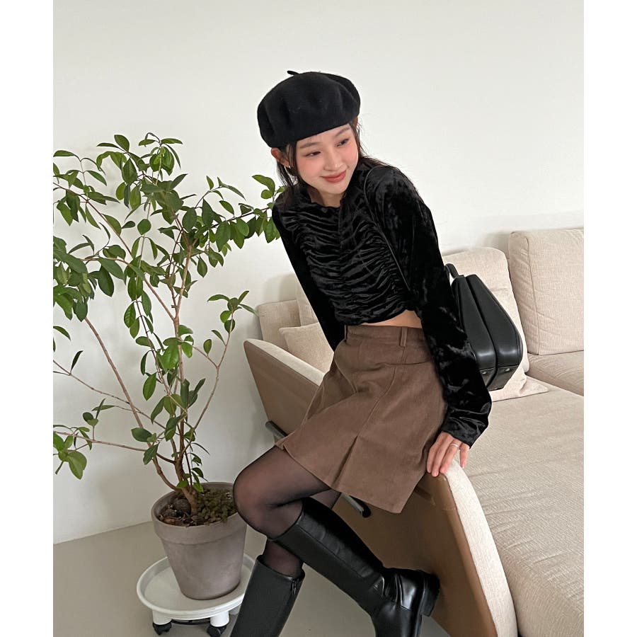 ベルベット素材とシャーリング仕様がポイントのトップスです:)