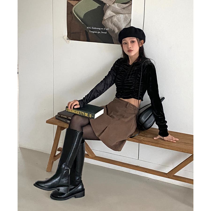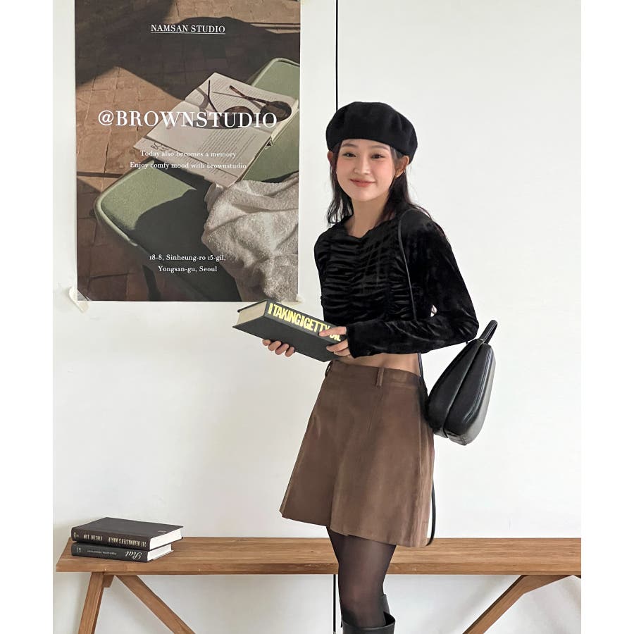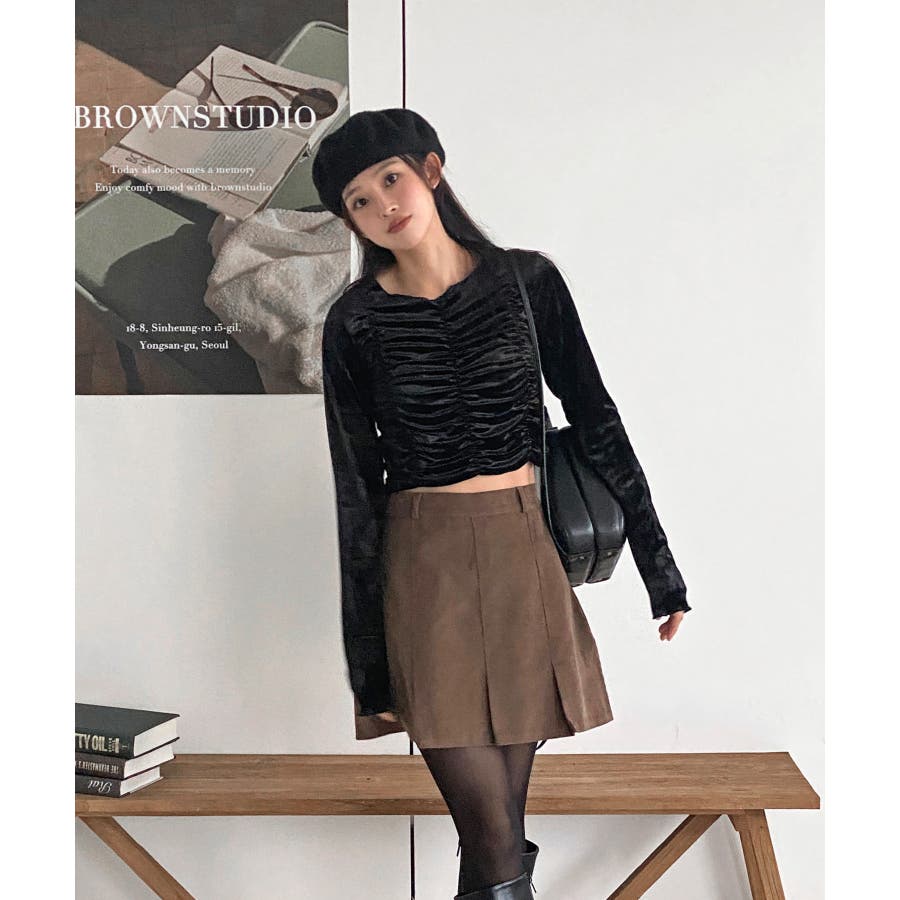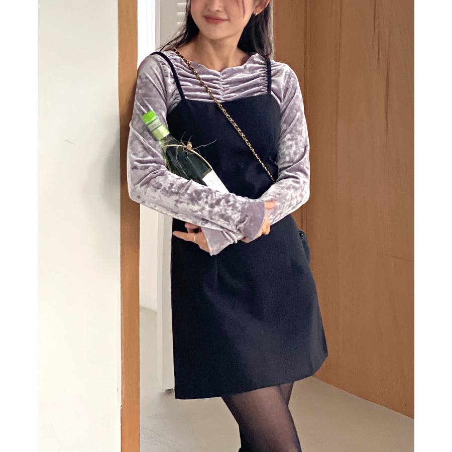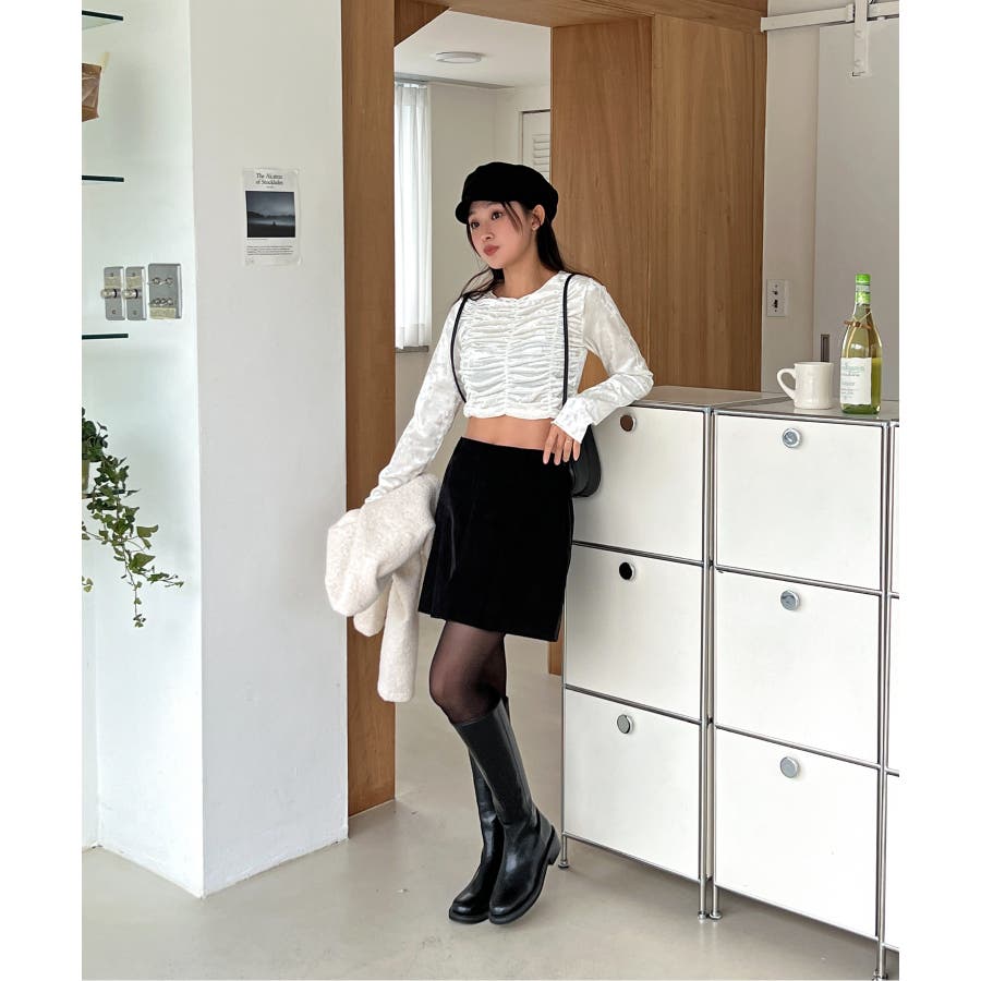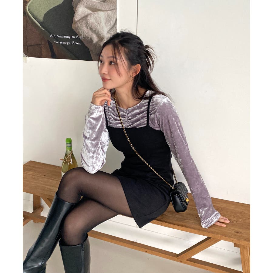 ベルベット素材とシャーリング仕様がポイントのトップスです:)