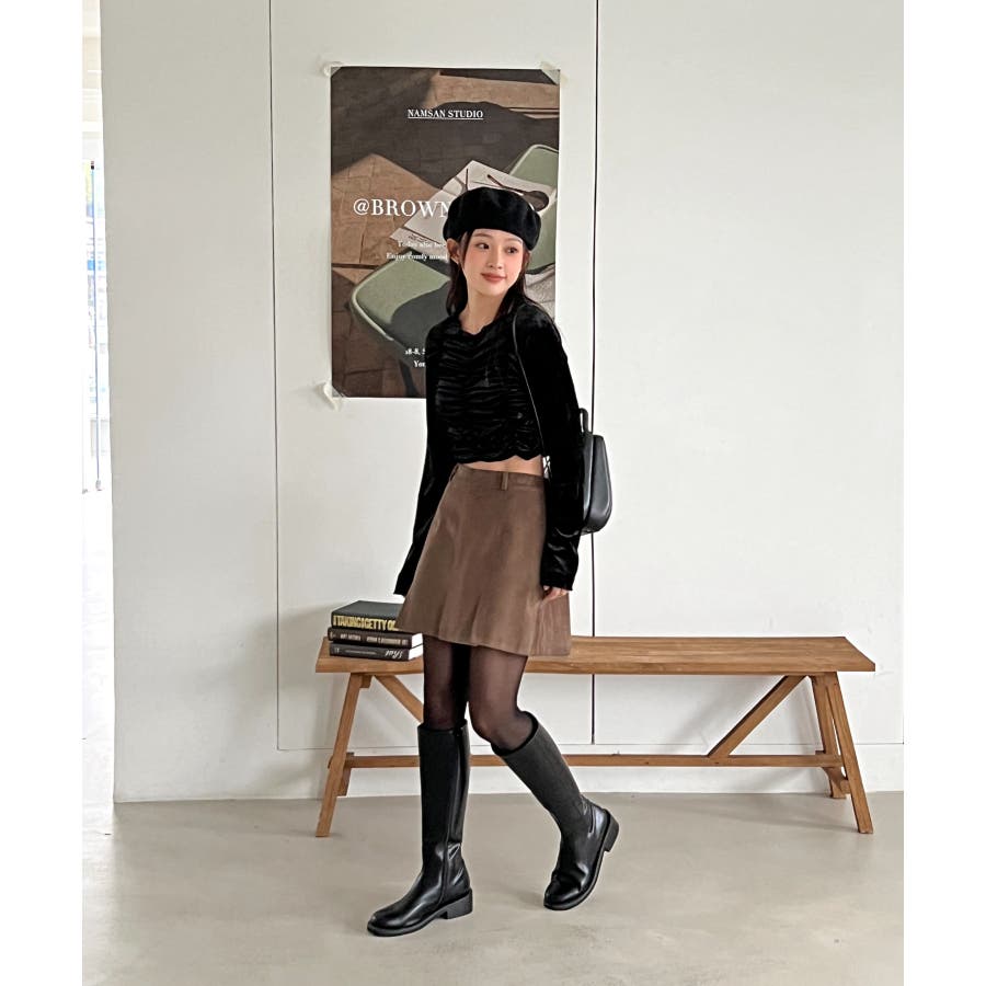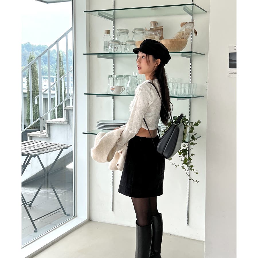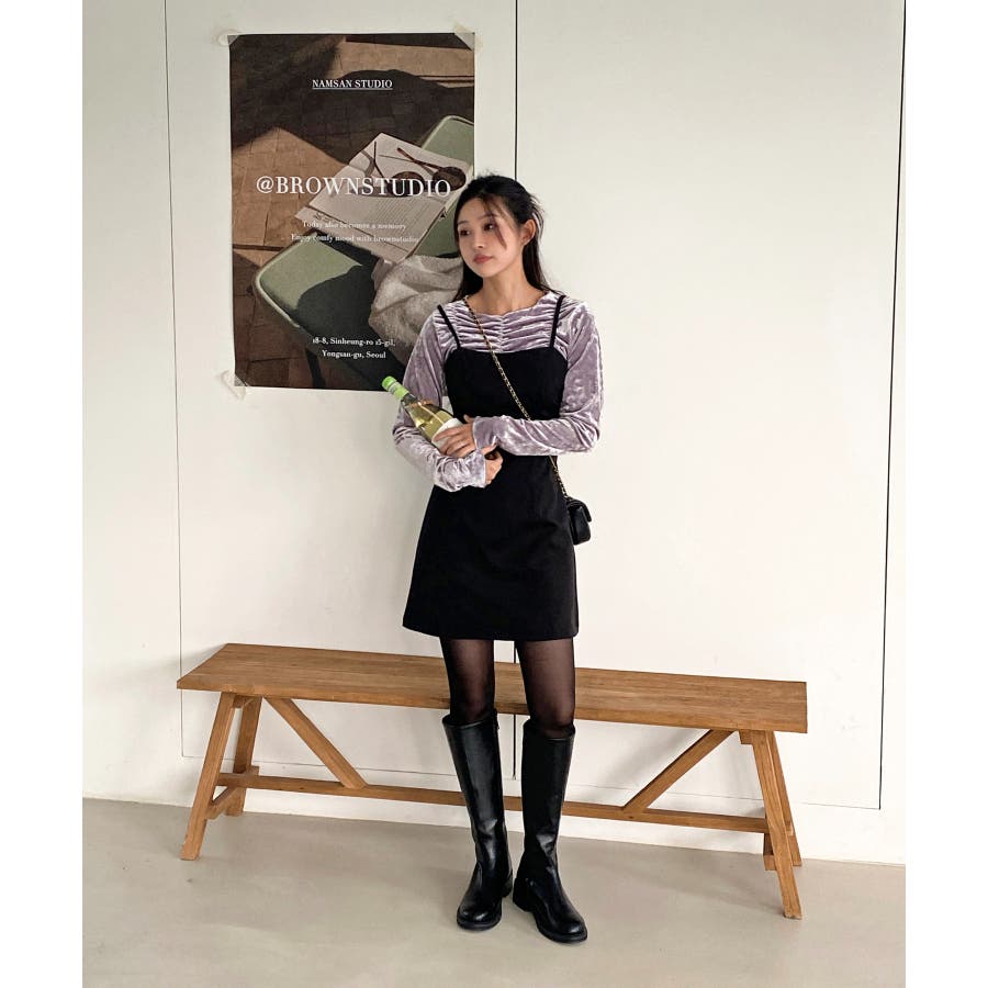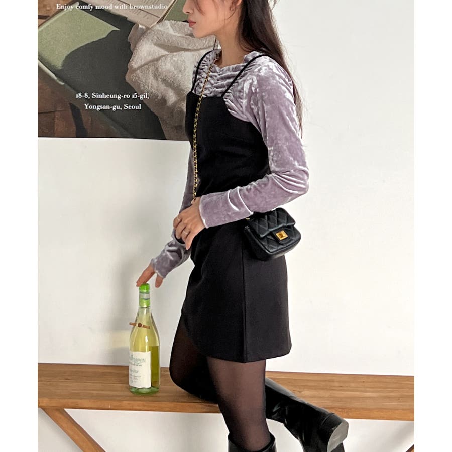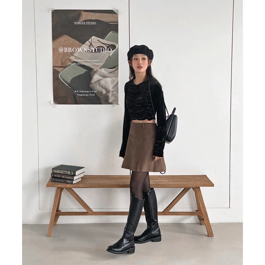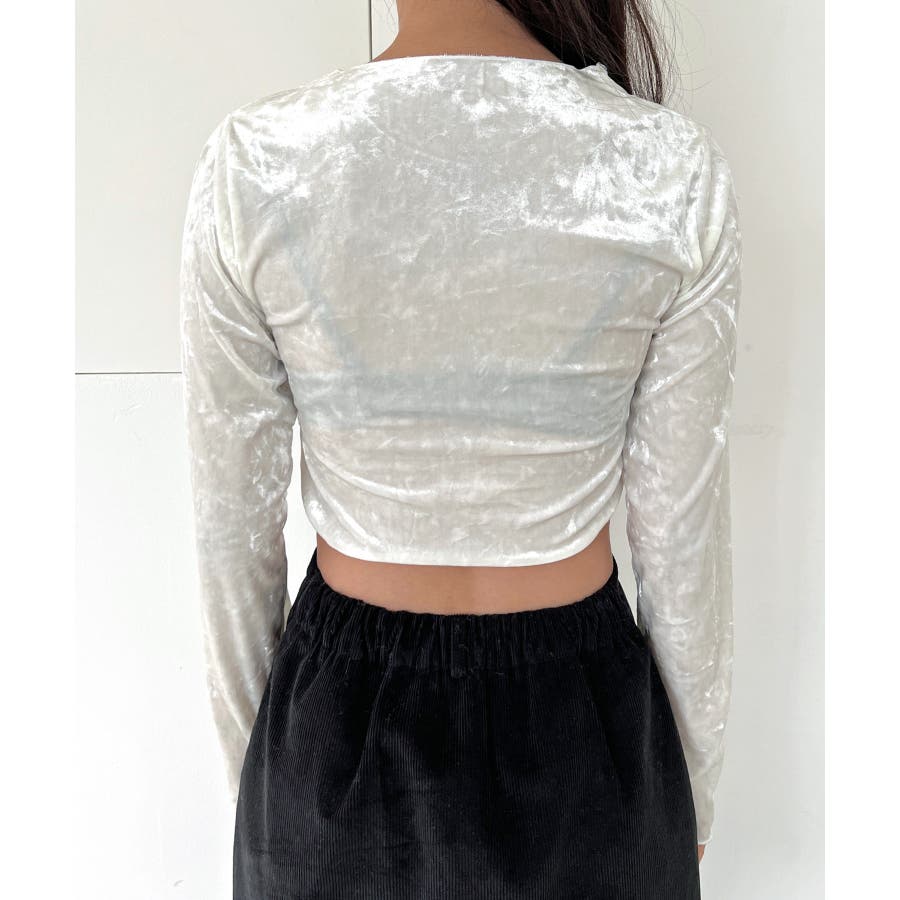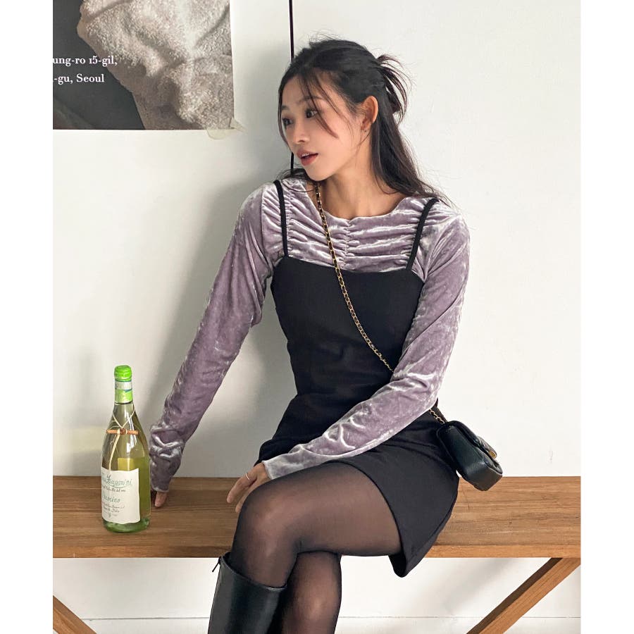 ベルベット素材とシャーリング仕様がポイントのトップスです:)
