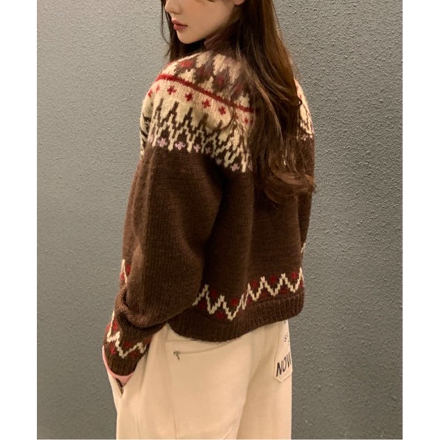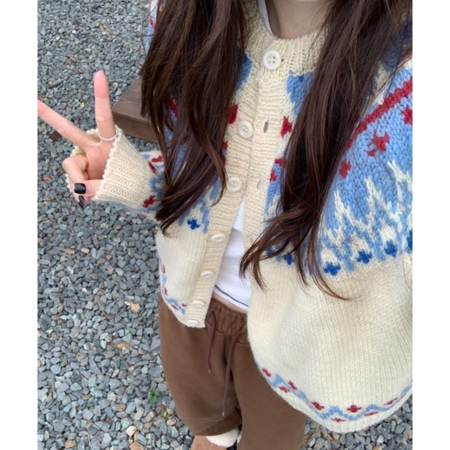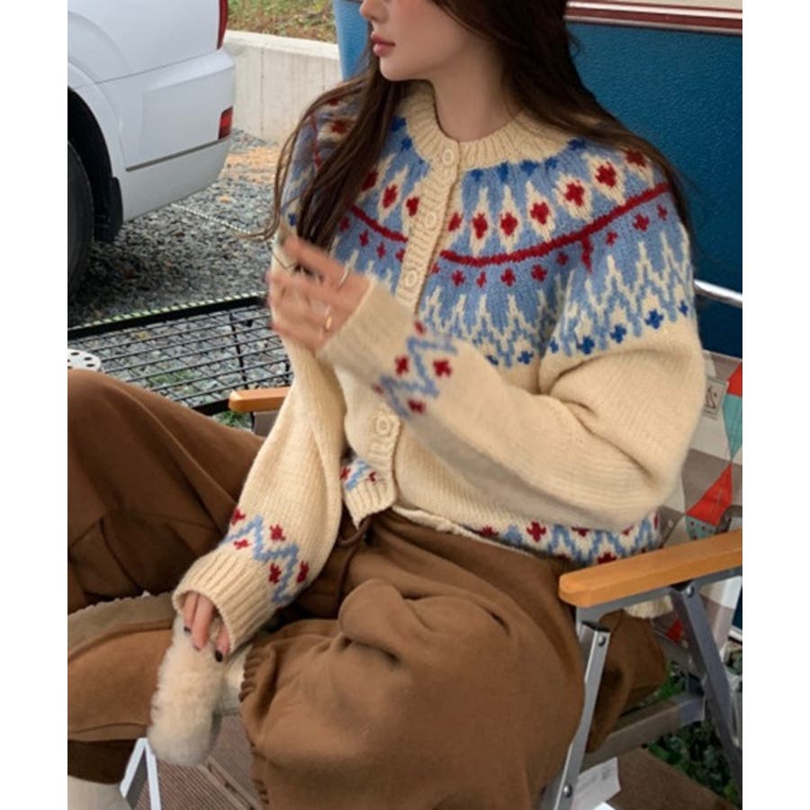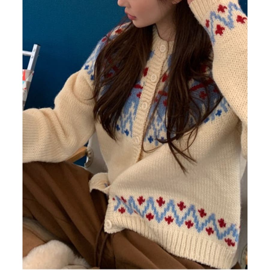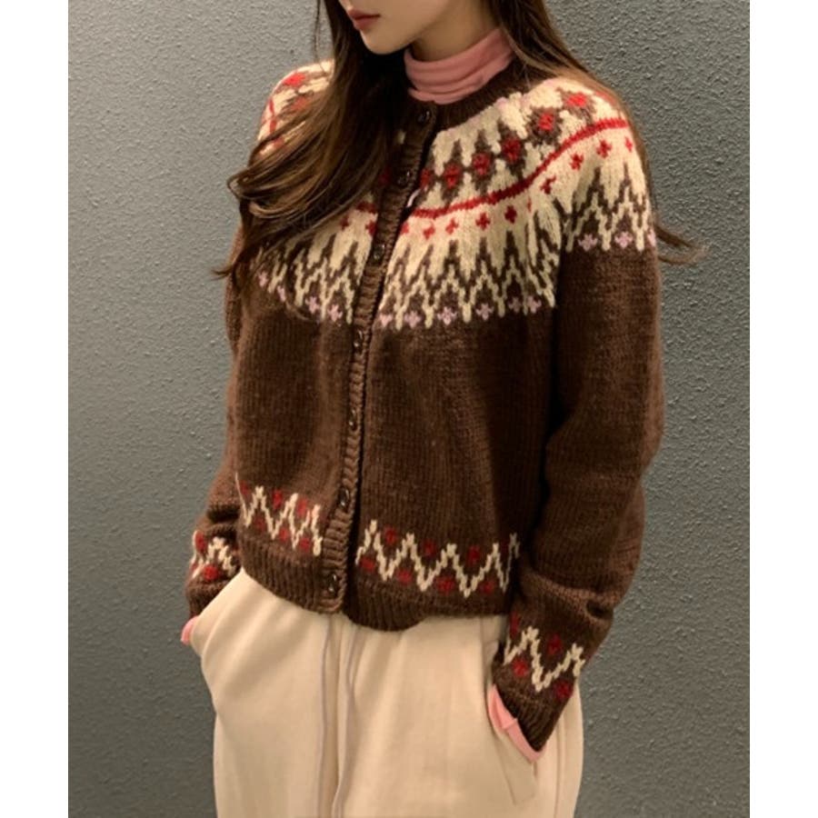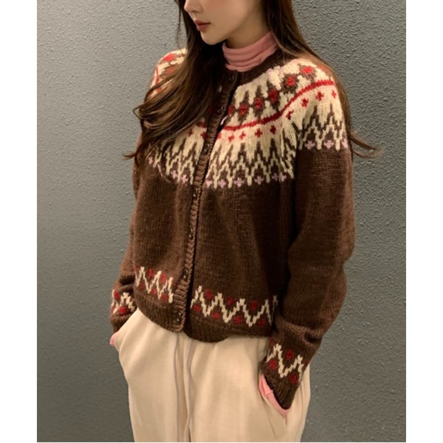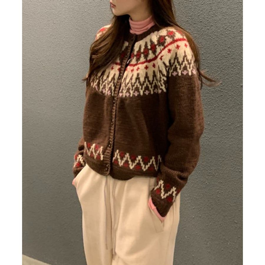 ジャガードデザインでポイントになってくれる、ラブリーでありながらカジュアルな雰囲気も演出してくれるニットカーディガンです :)