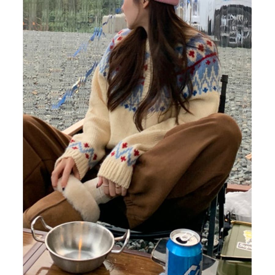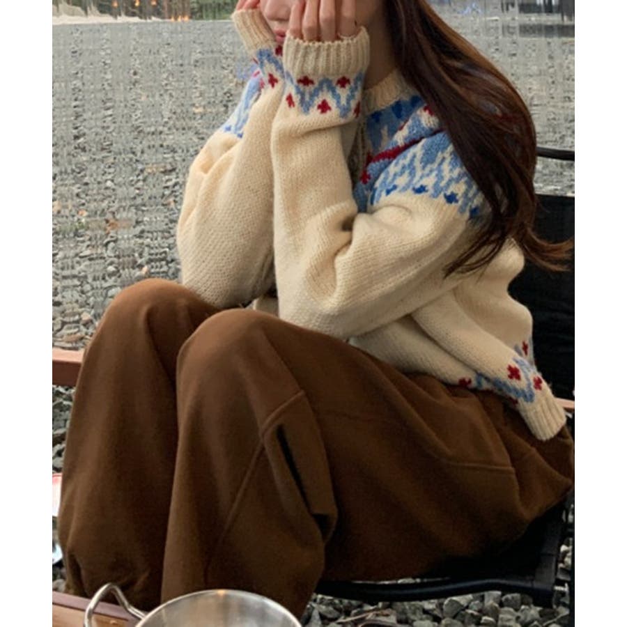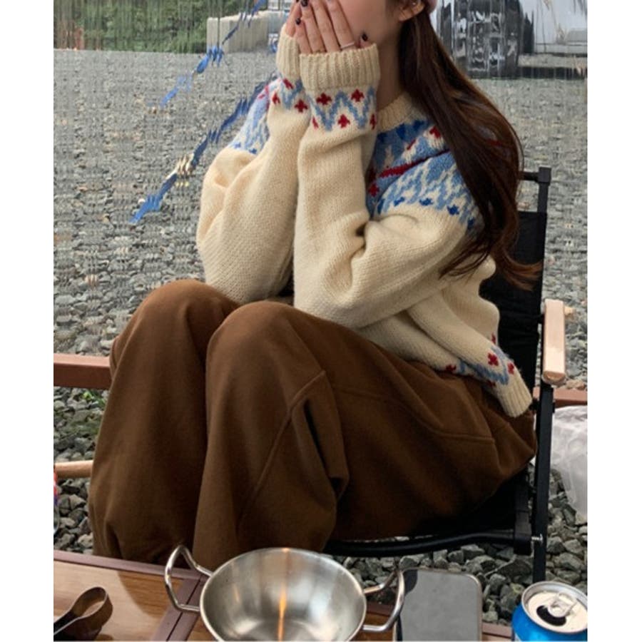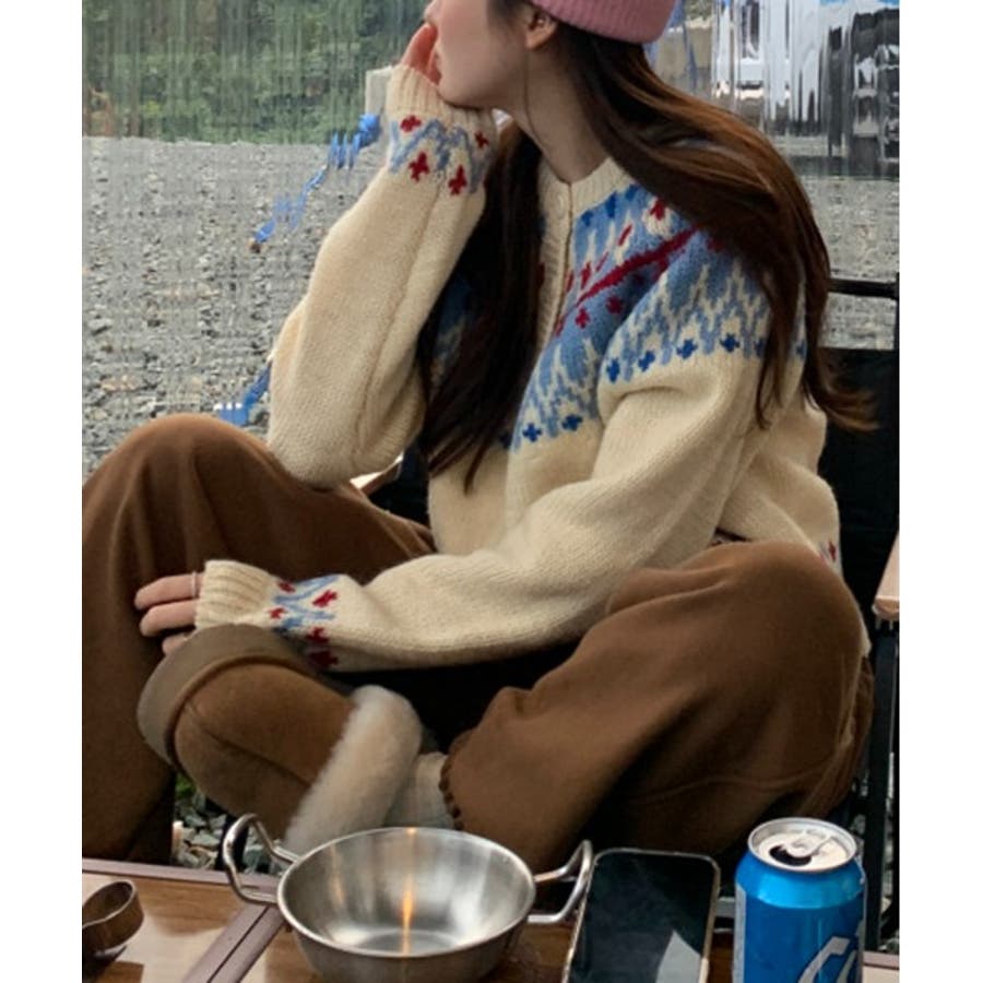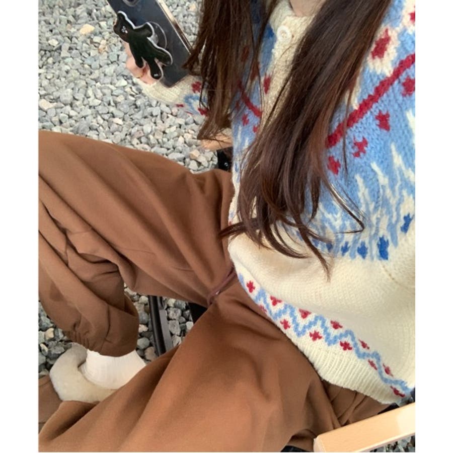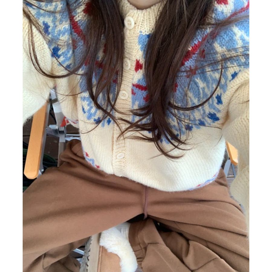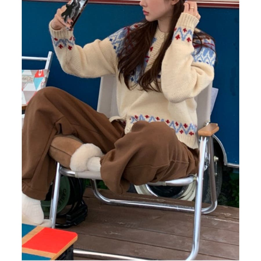 ジャガードデザインでポイントになってくれる、ラブリーでありながらカジュアルな雰囲気も演出してくれるニットカーディガンです :)