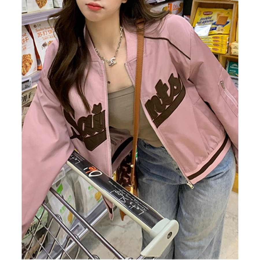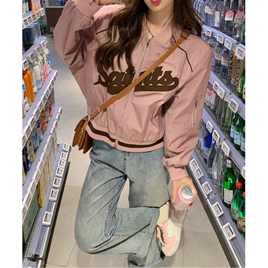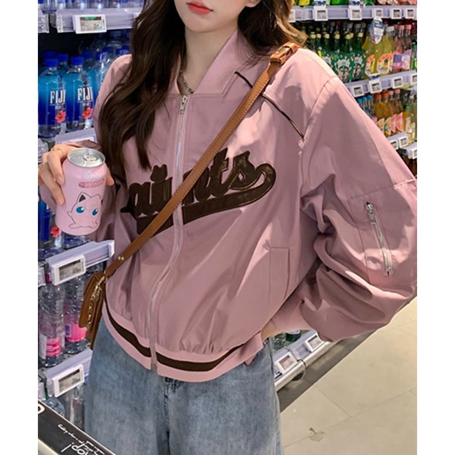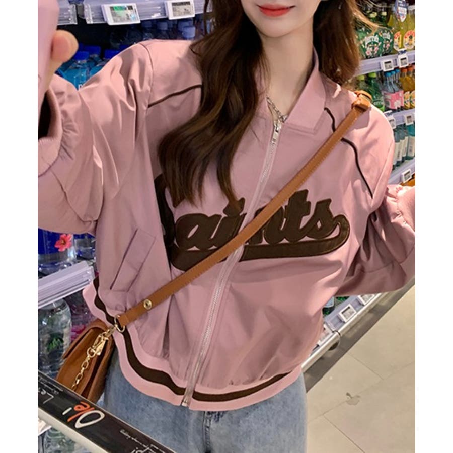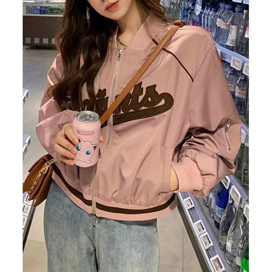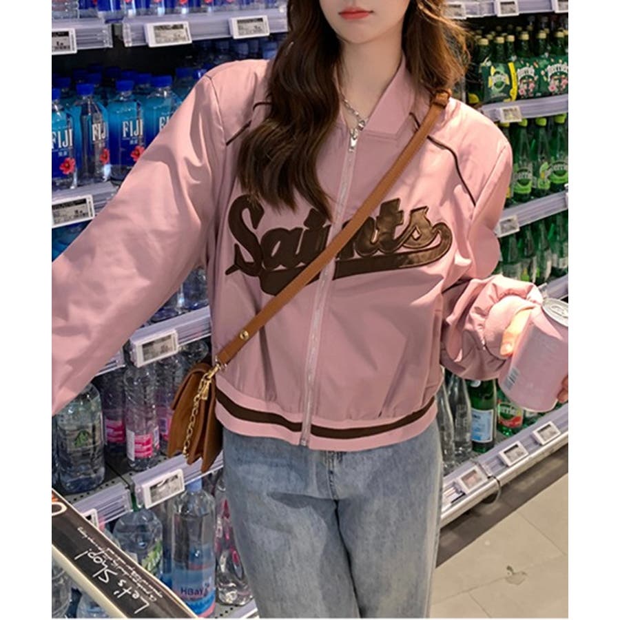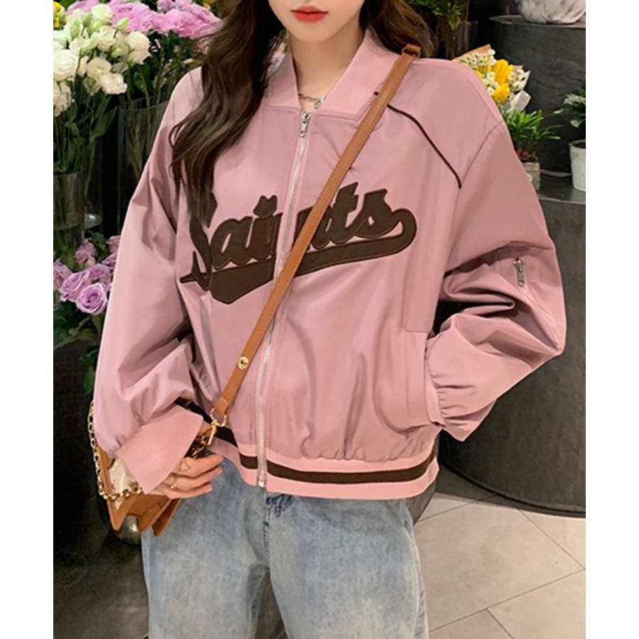 【ピンク】レタリングカジュアルスタジアムジャンパー