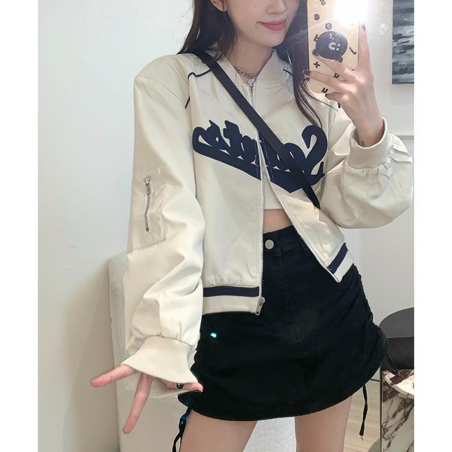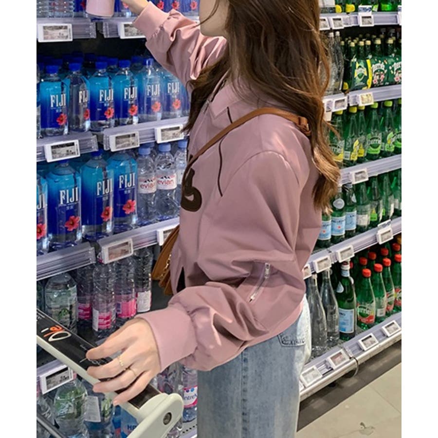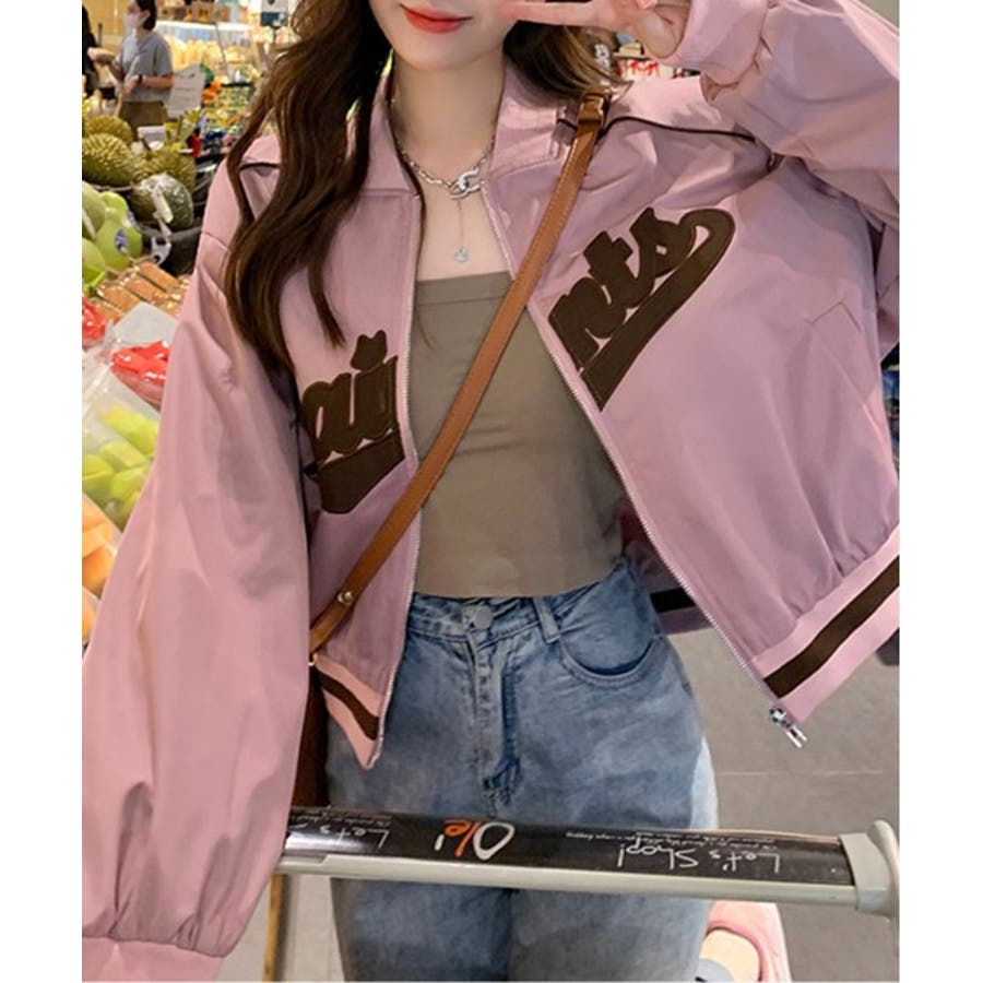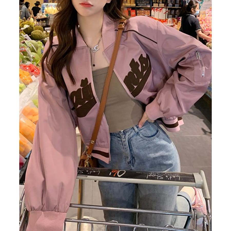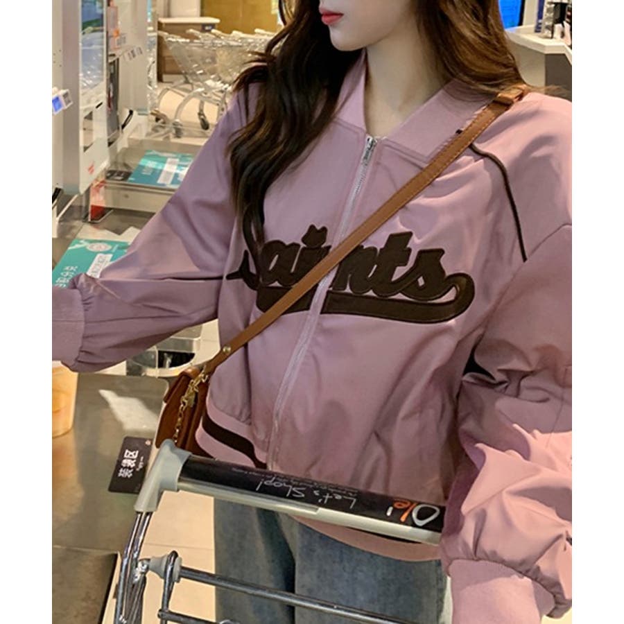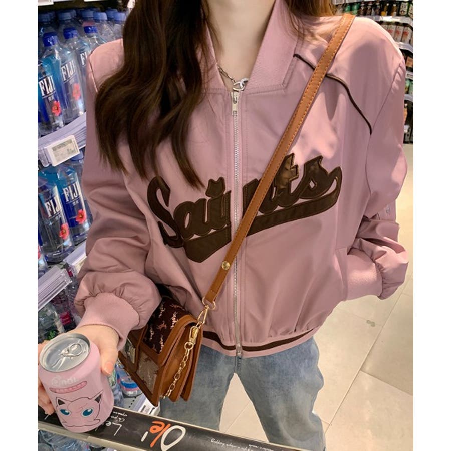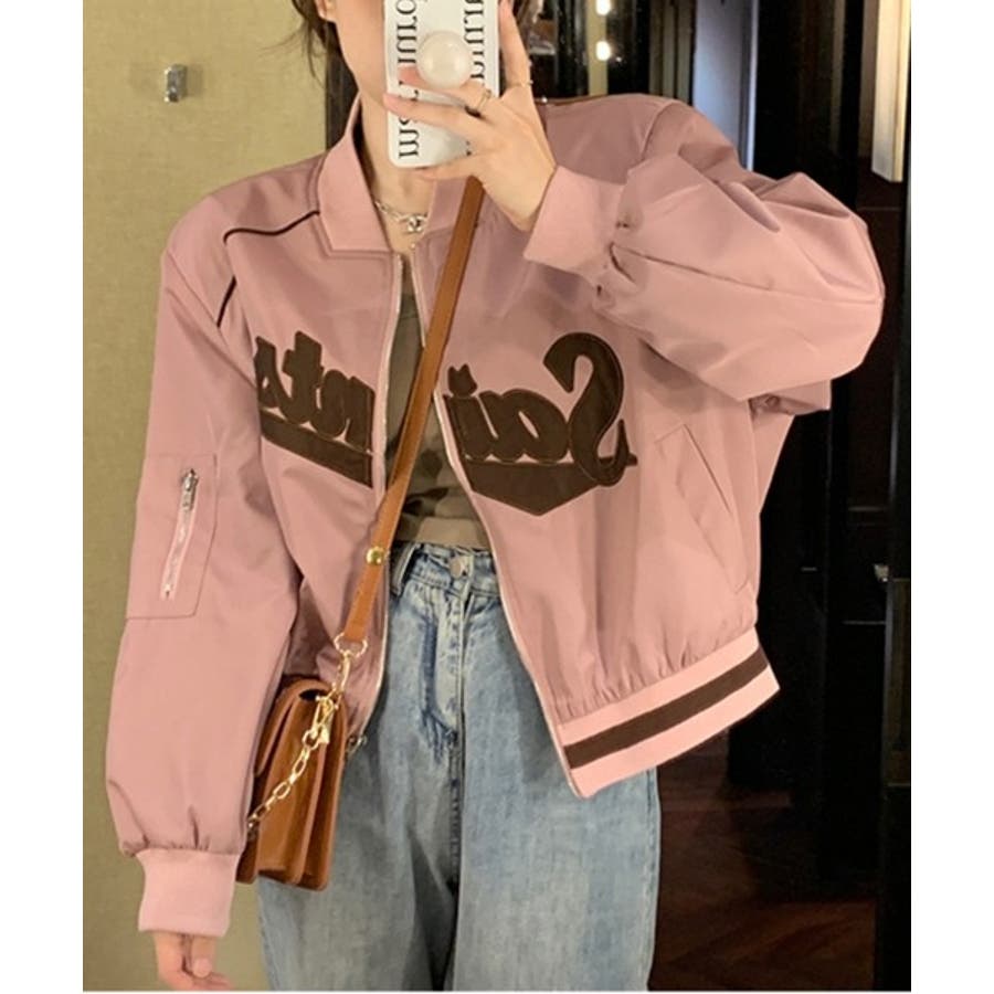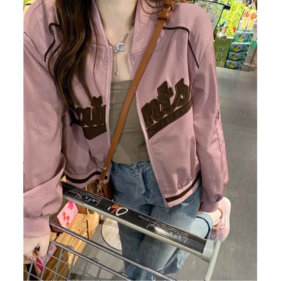 【ピンク】レタリングカジュアルスタジアムジャンパー