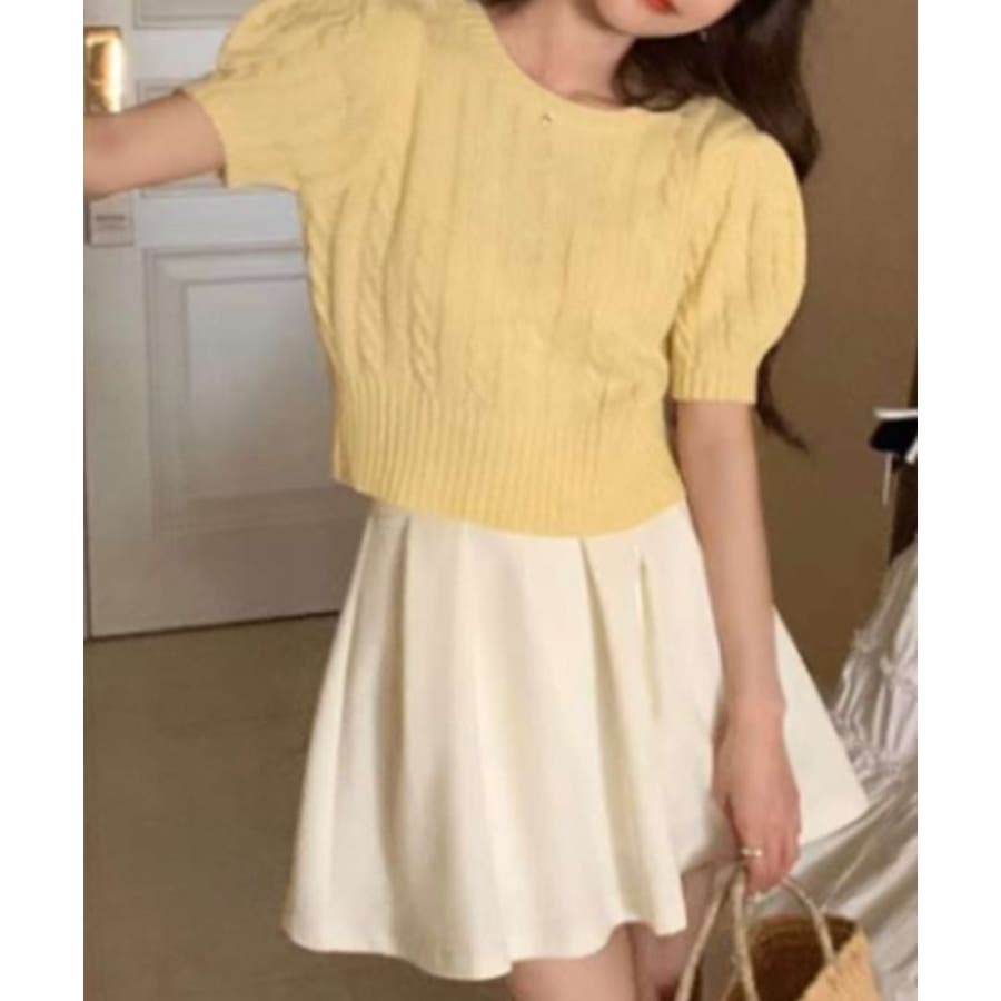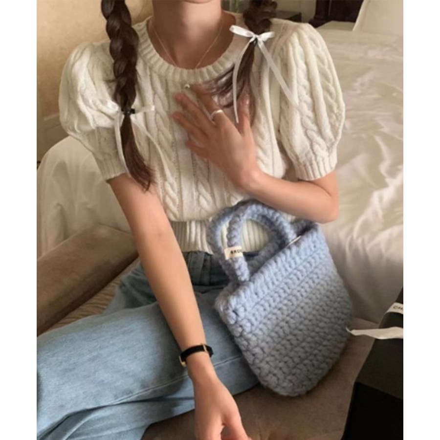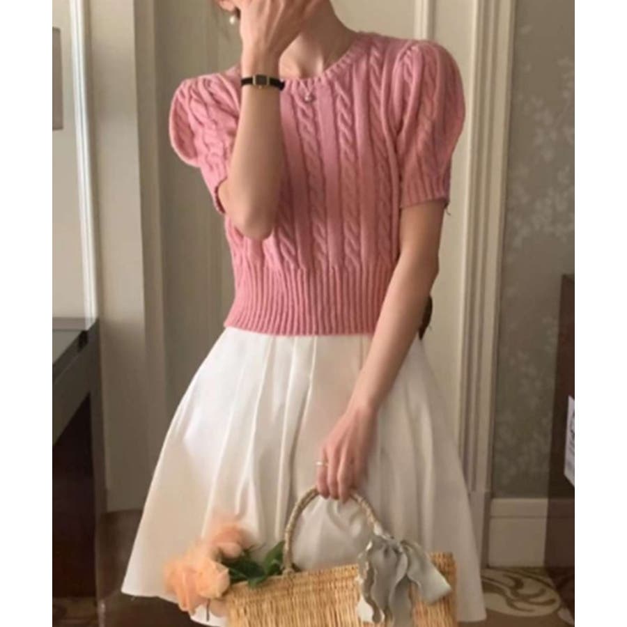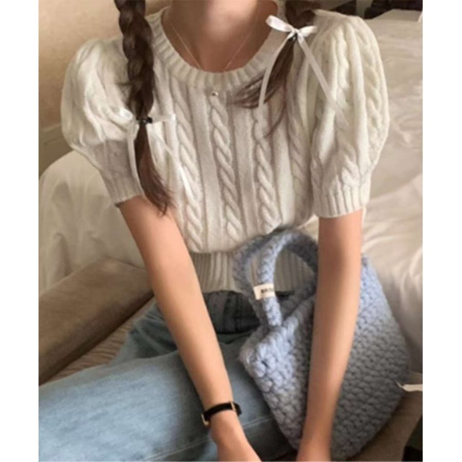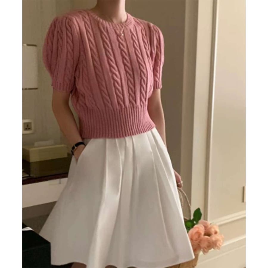 お洒落な雰囲気のケーブル半袖ニットを紹介します。