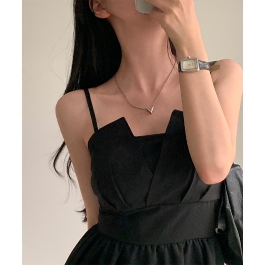 女性らしい雰囲気のキャミワンピースです。