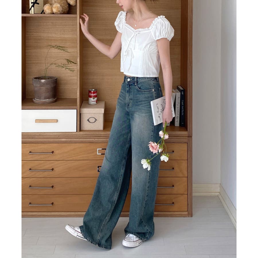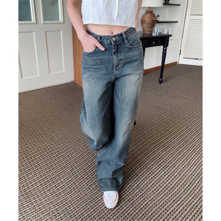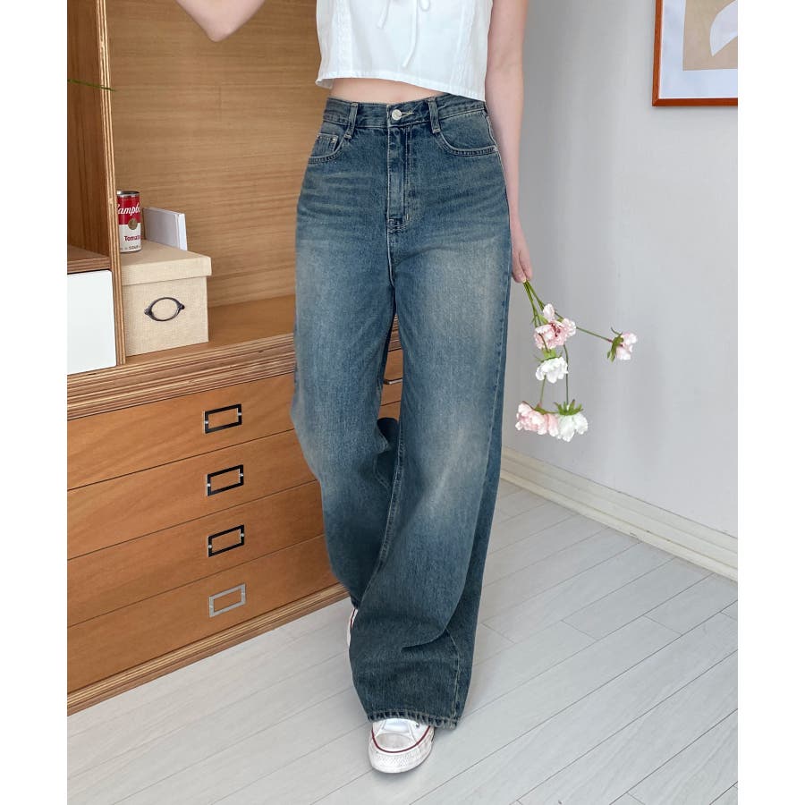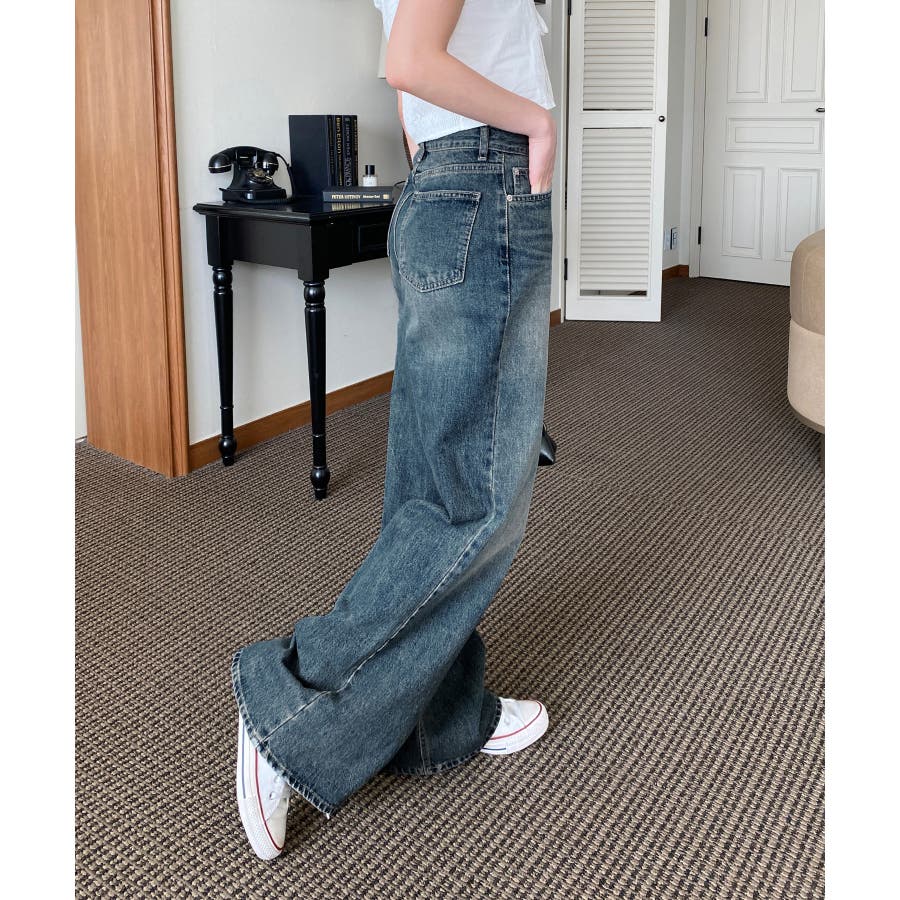 【ヴィンテージウォッシングワイドデニムパンツ】