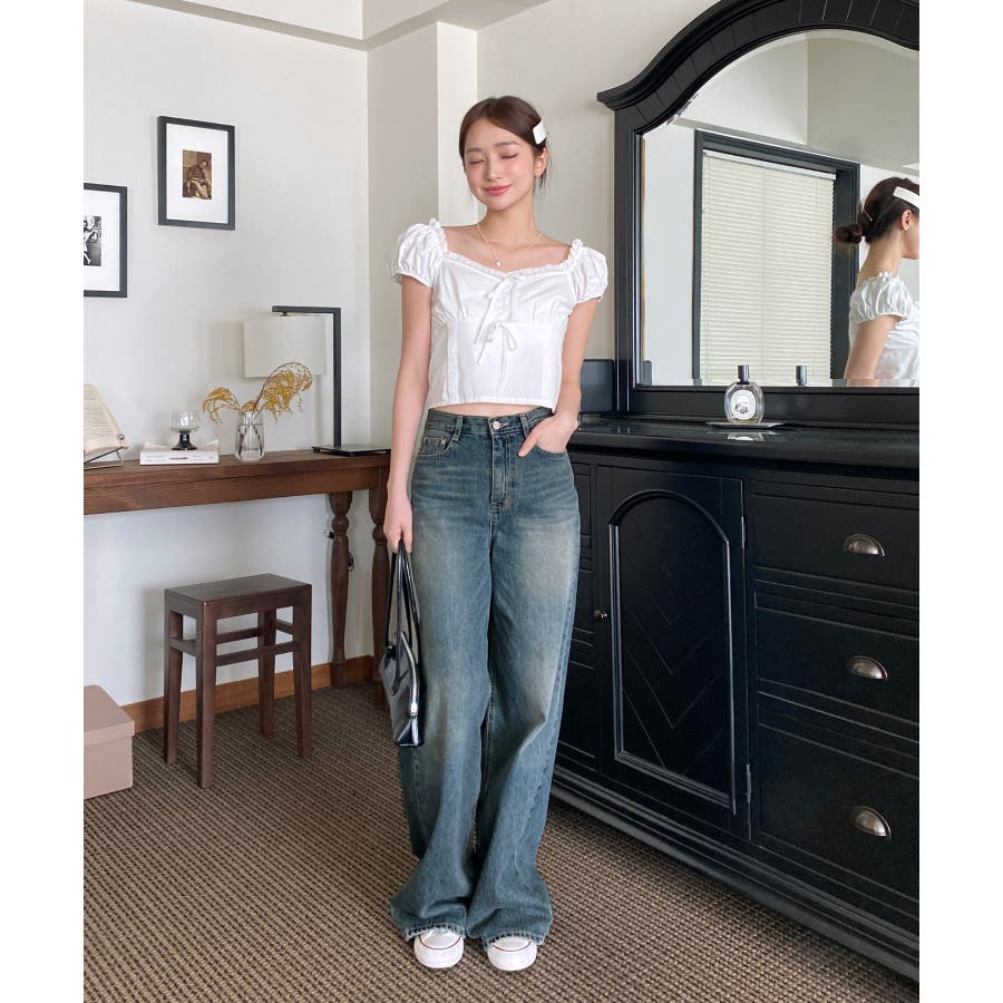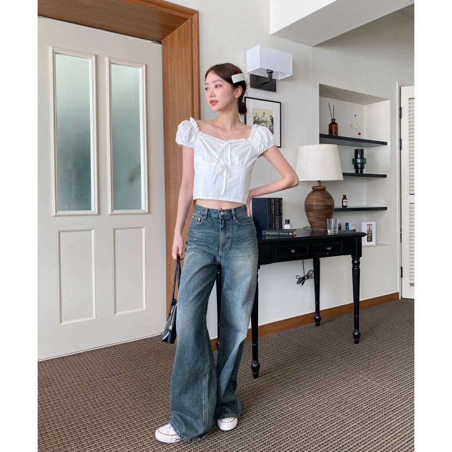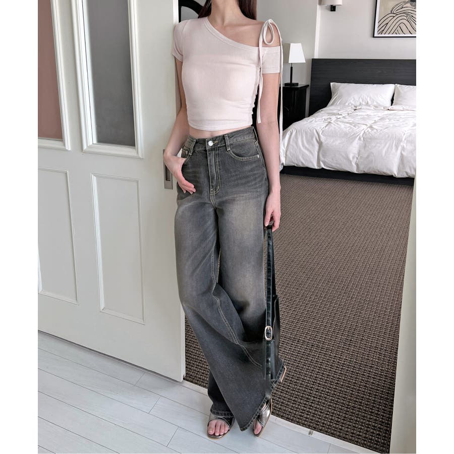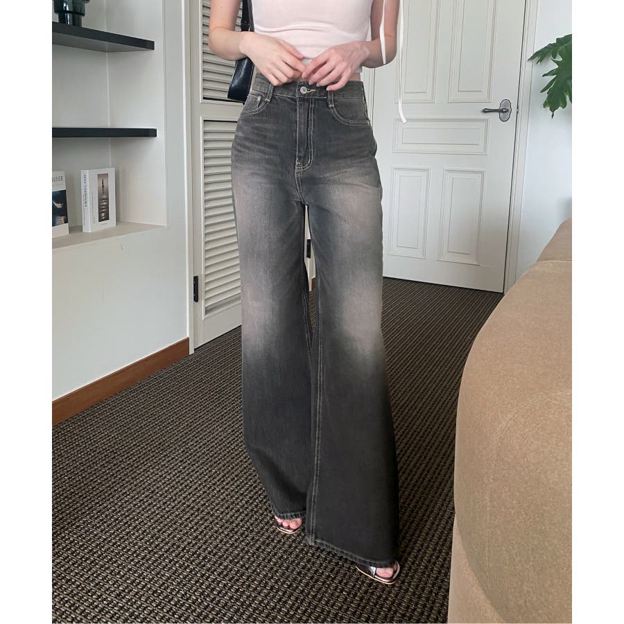 【ヴィンテージウォッシングワイドデニムパンツ】