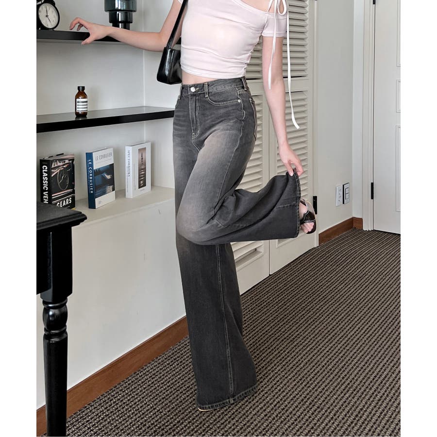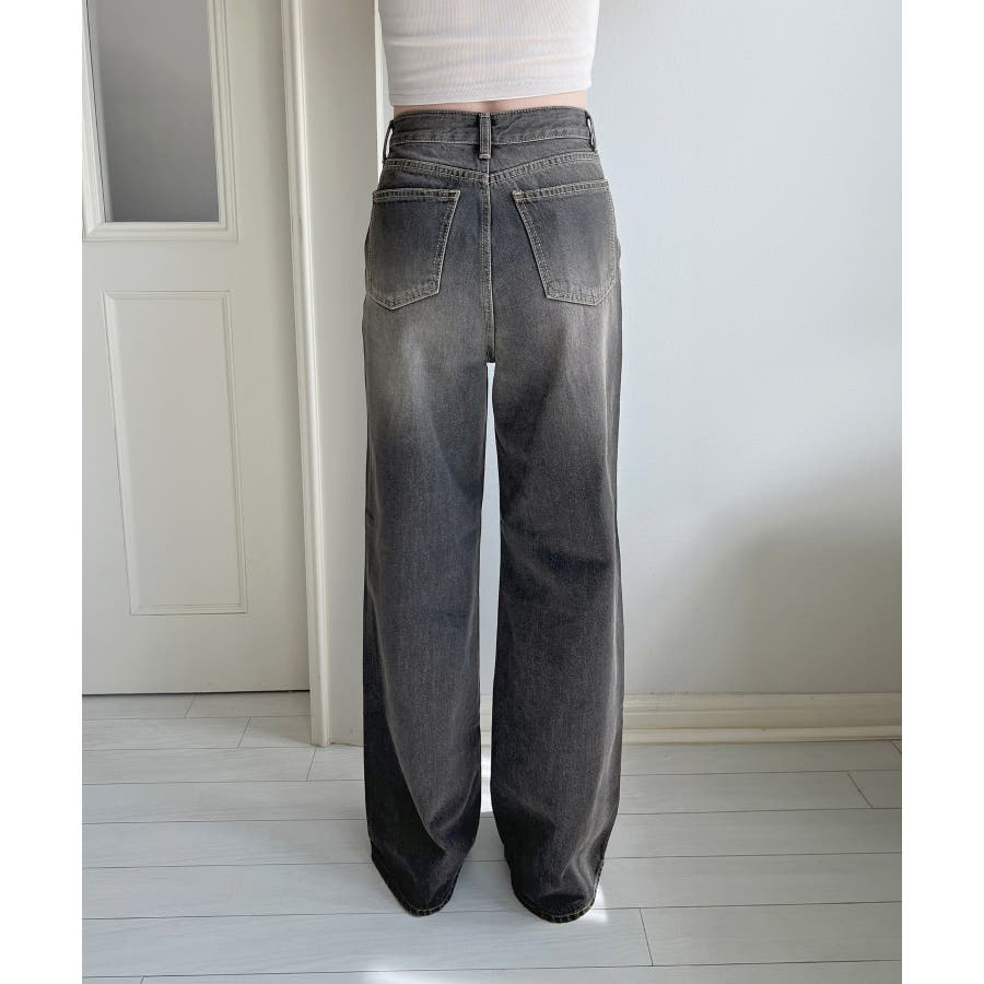 ナチュラルなウォッシング加工が魅力的なワイドデニムパンツを紹介します。