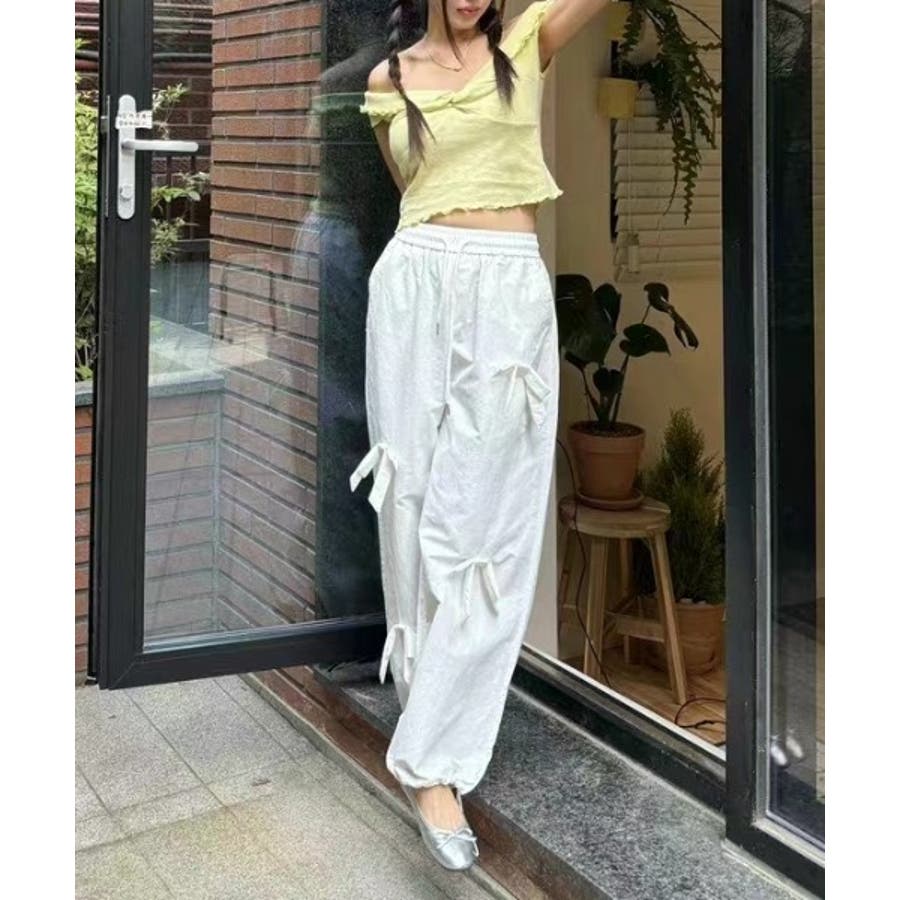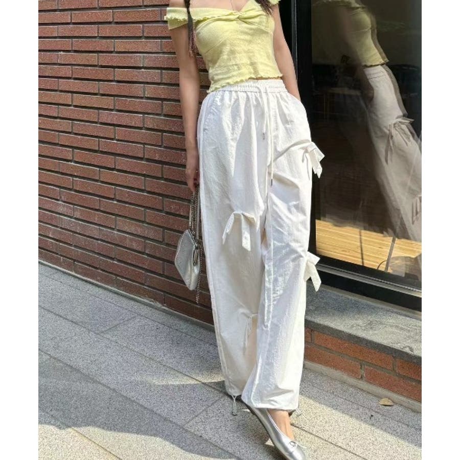 【アイボリー】リボンバンディングストリングジョガーパンツ