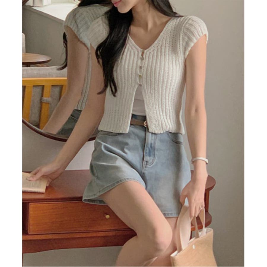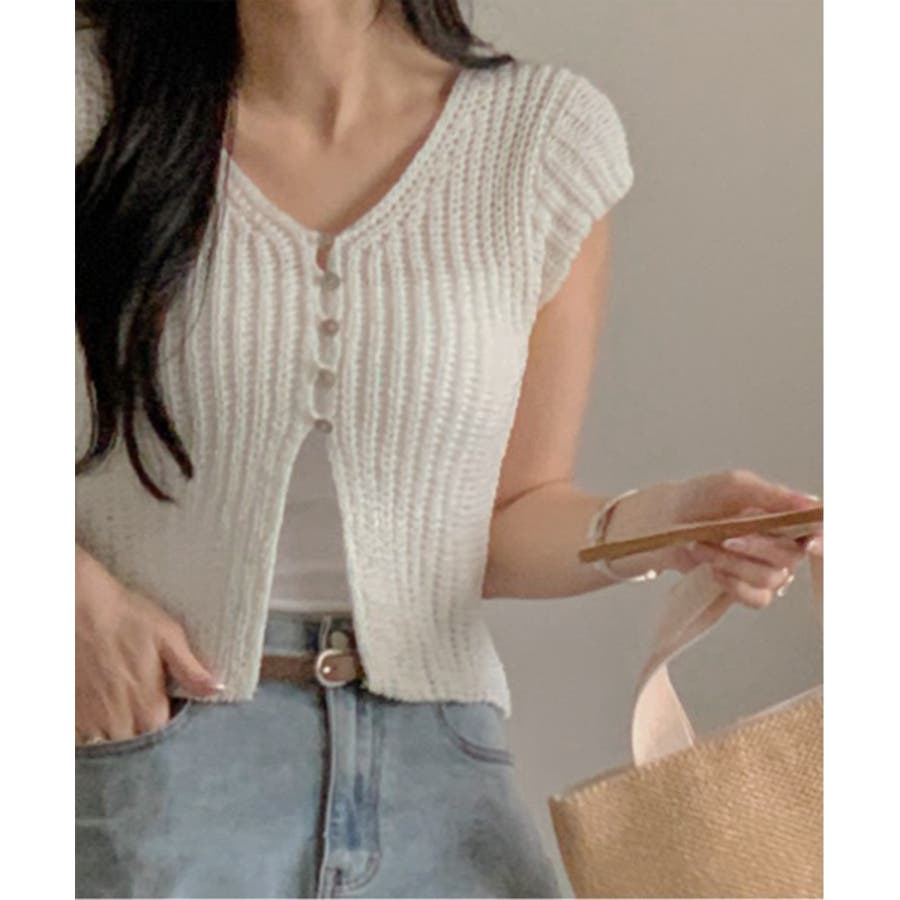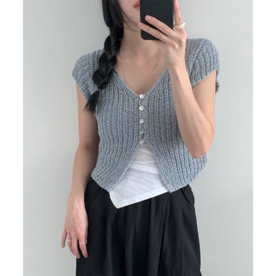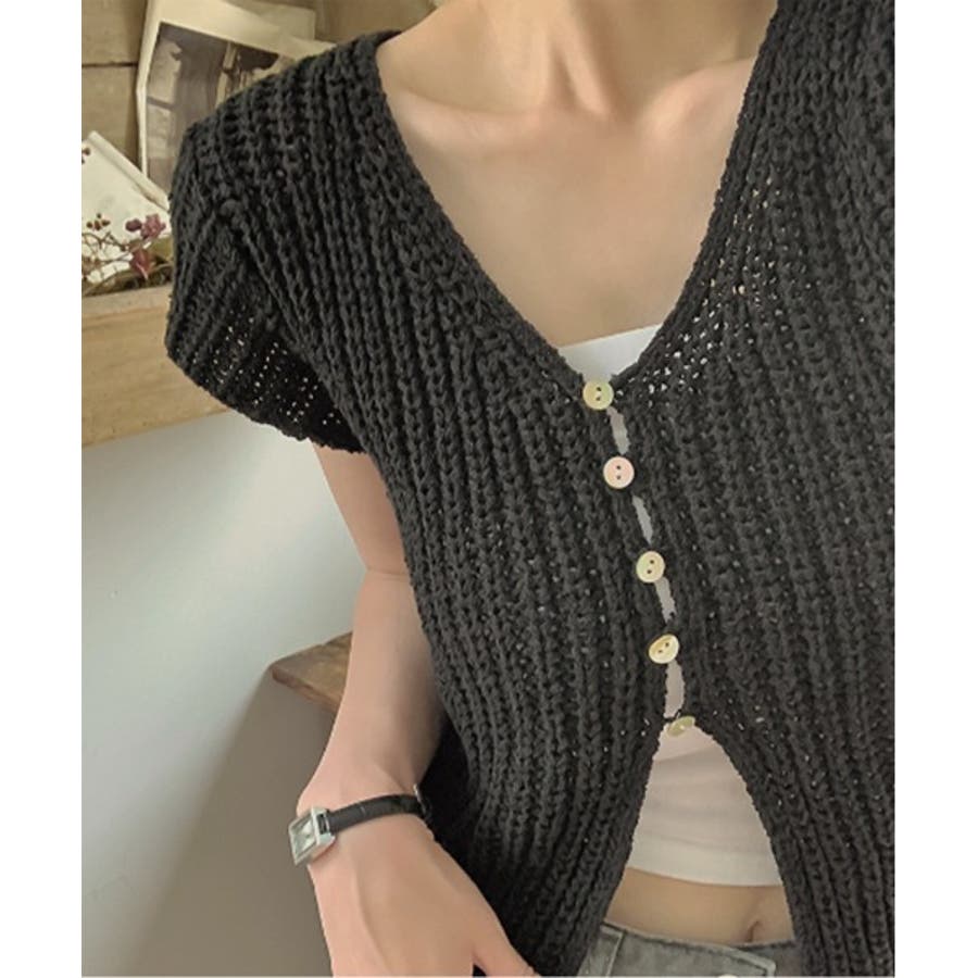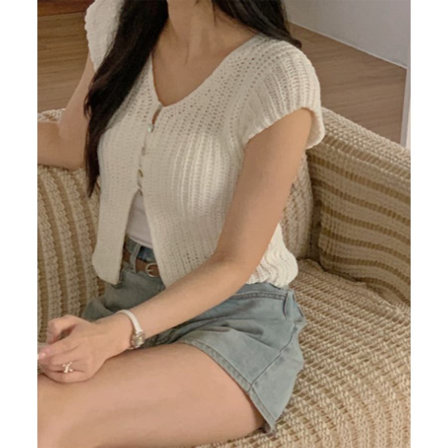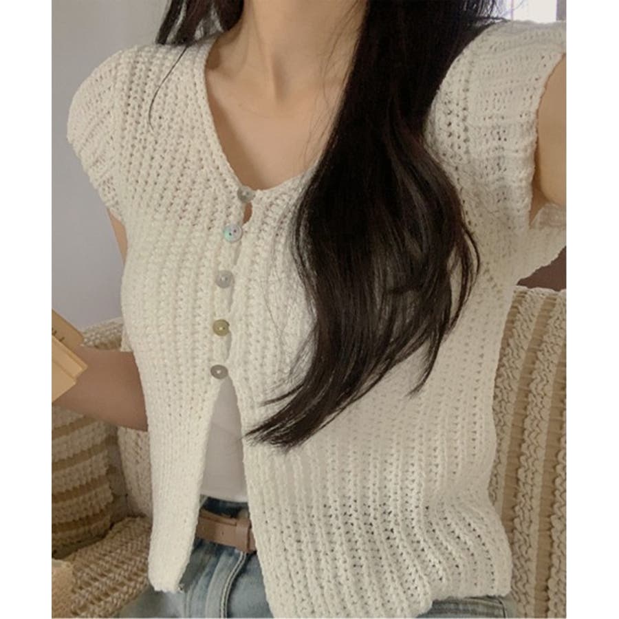 【サマーボタンニット半袖カーディガン】