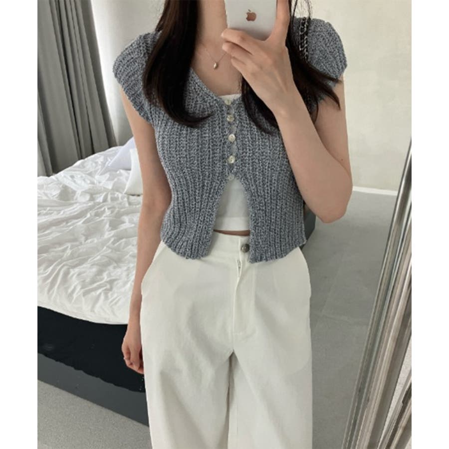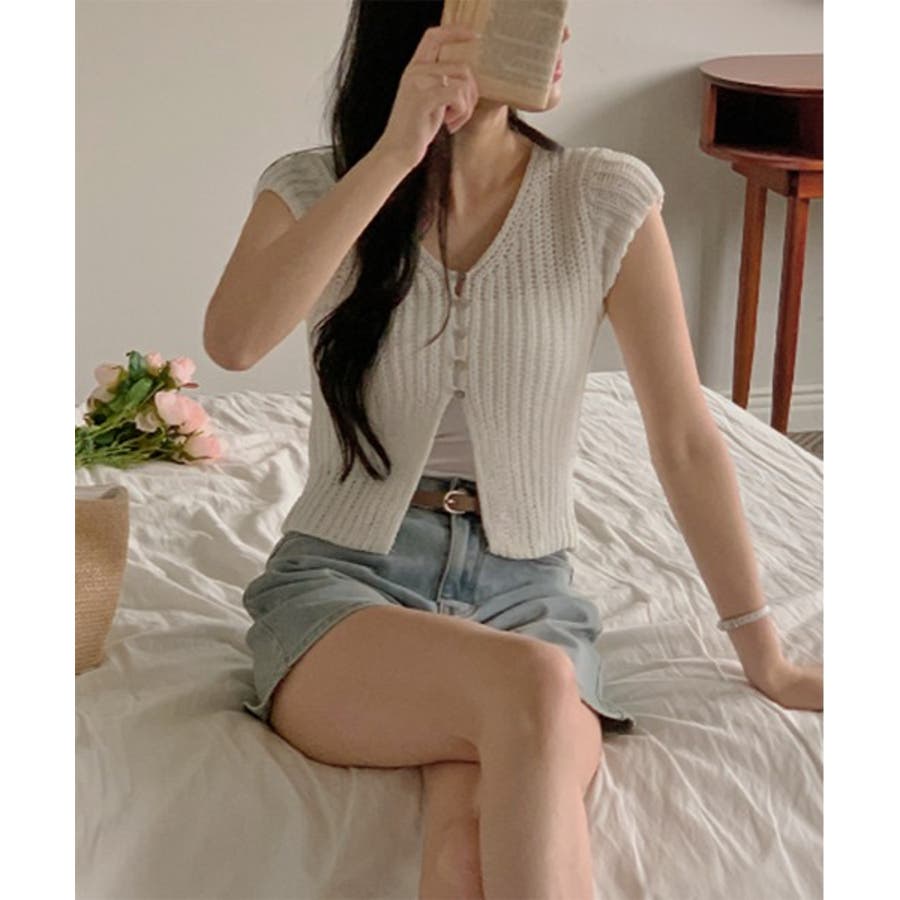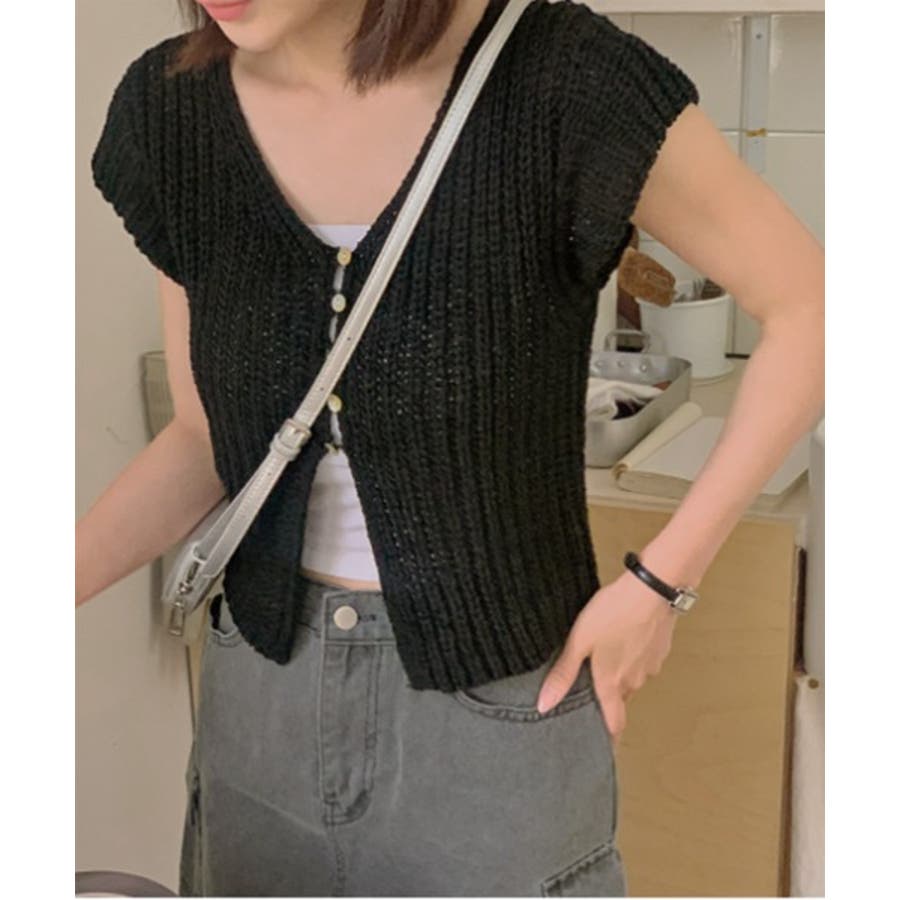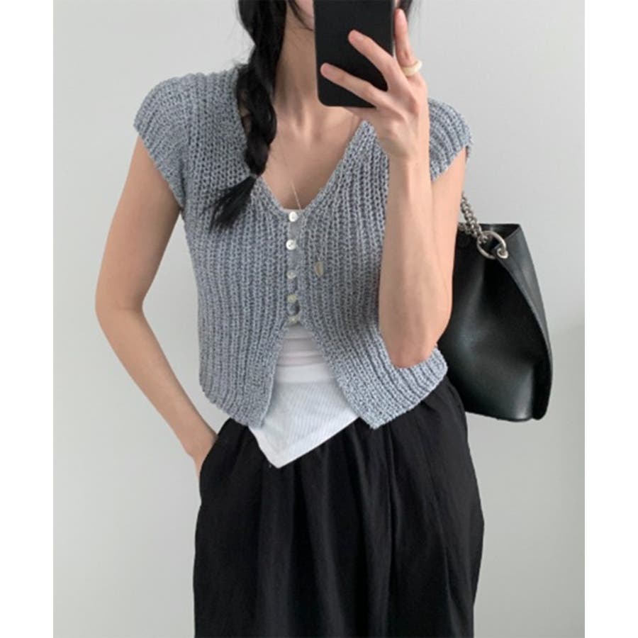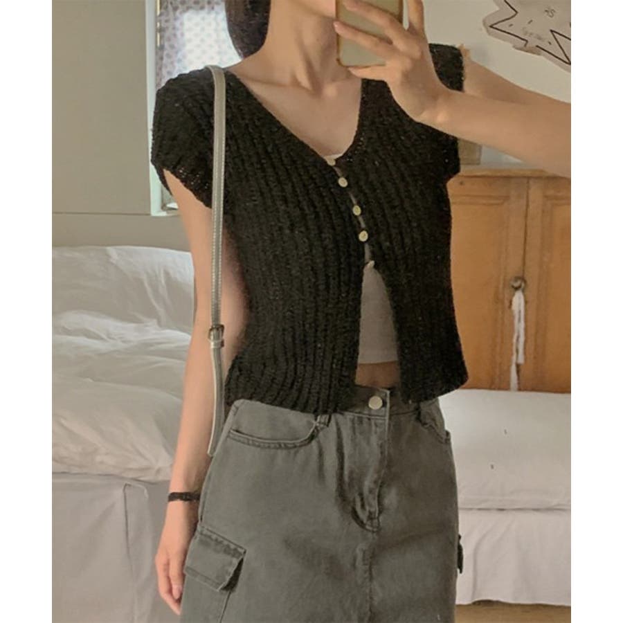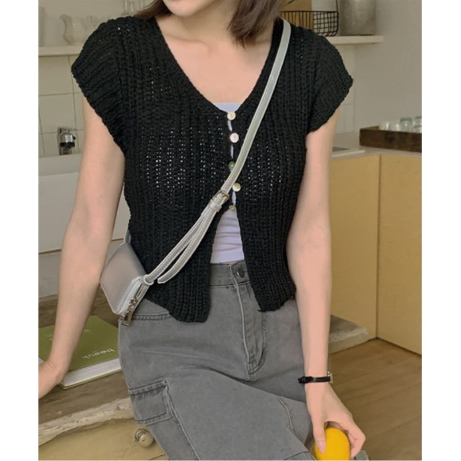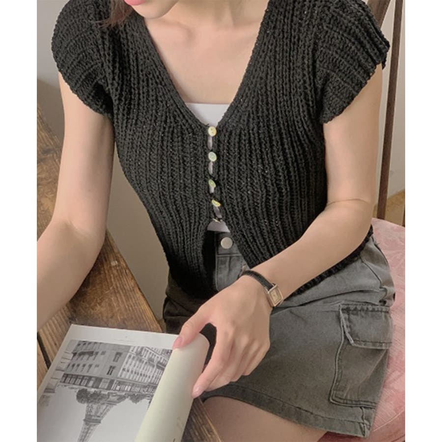 【サマーボタンニット半袖カーディガン】