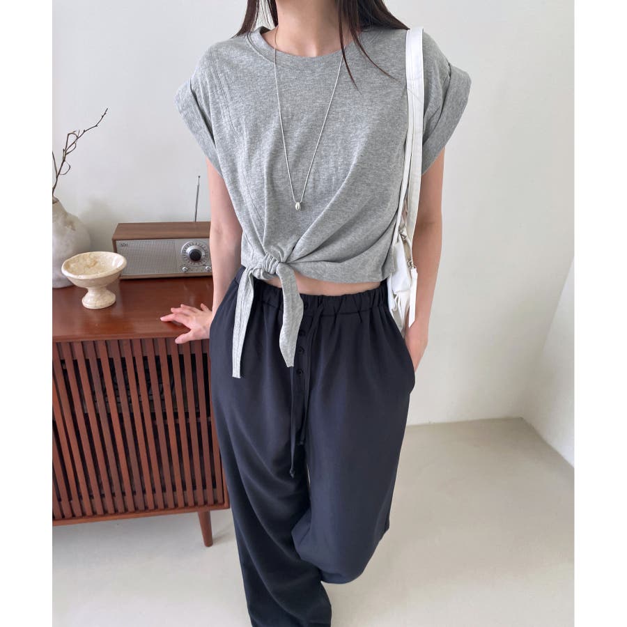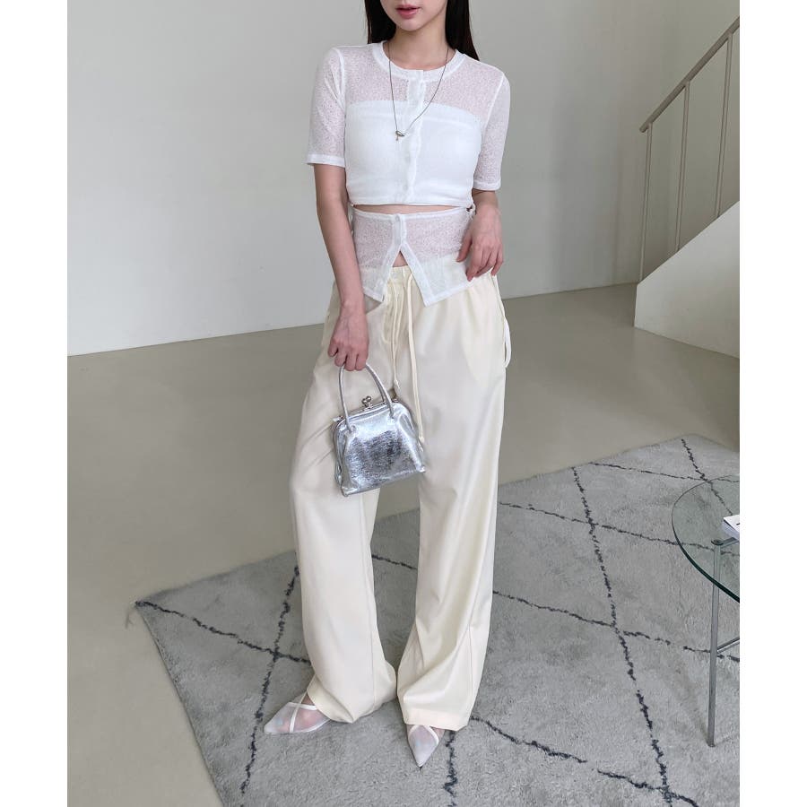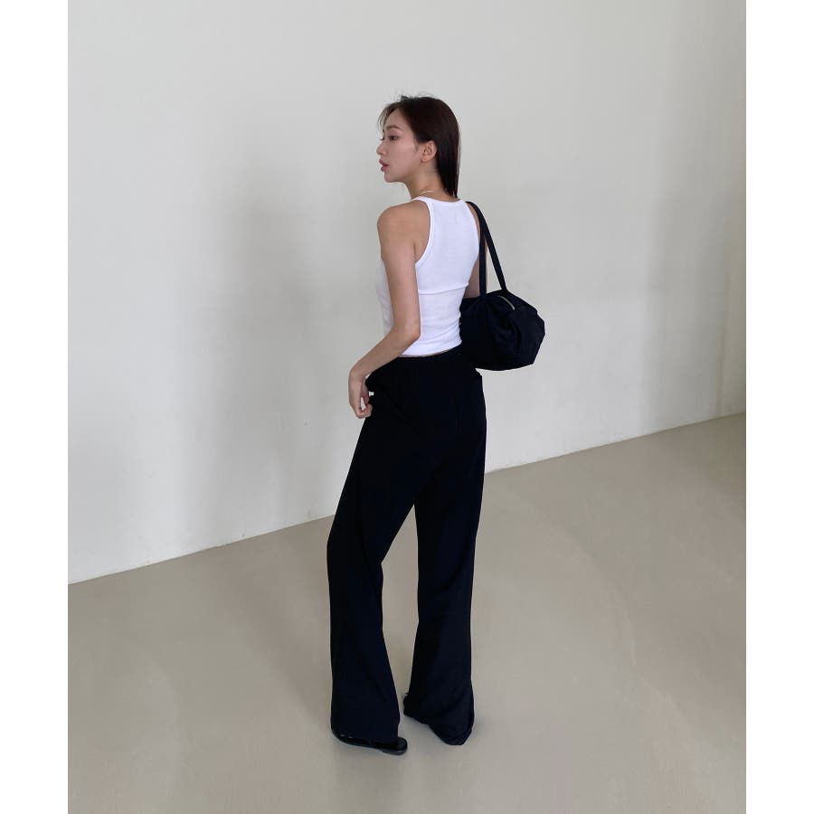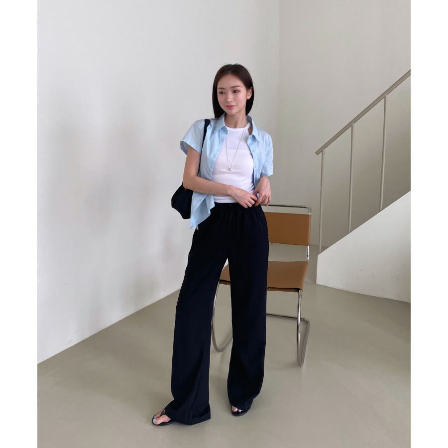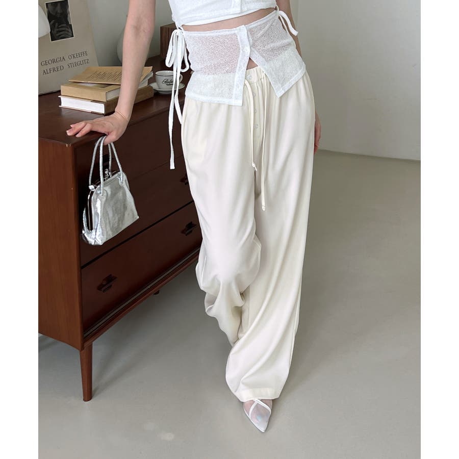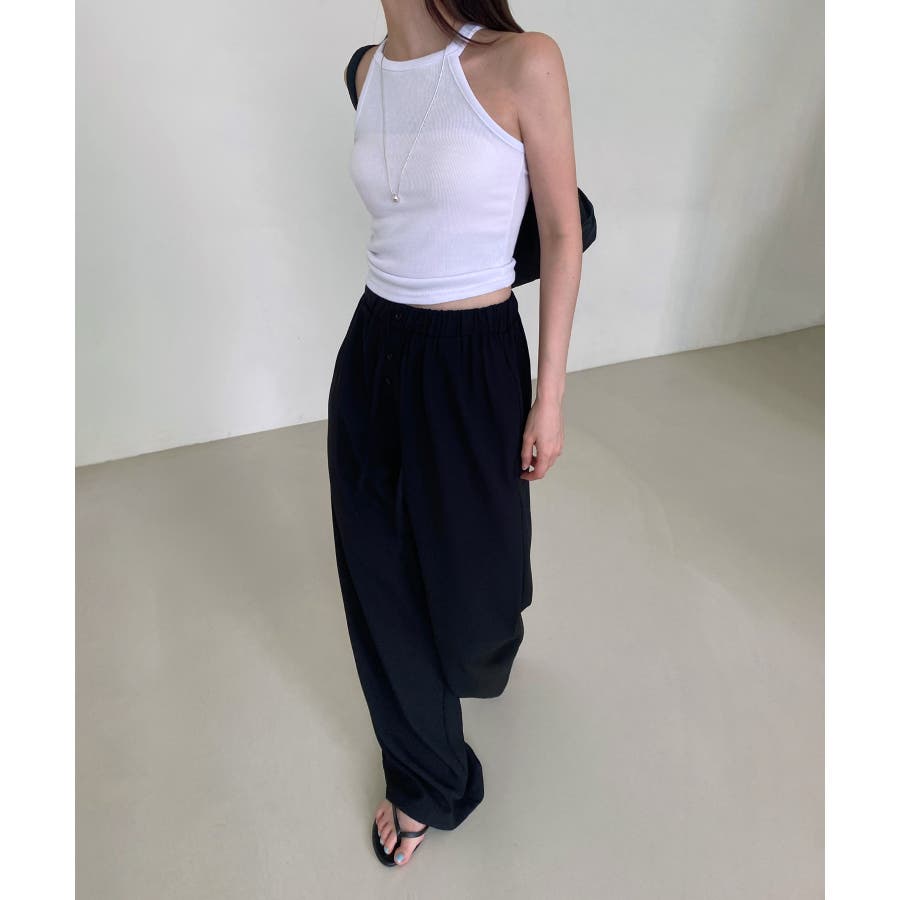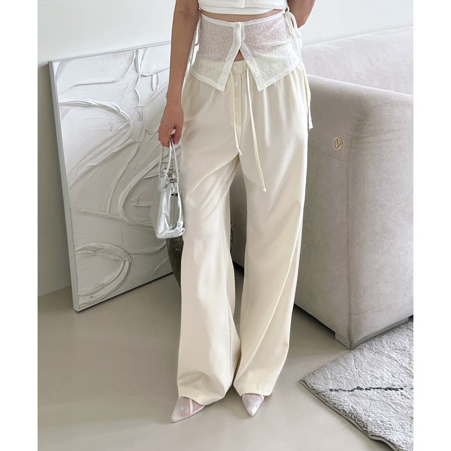 【ボタンポイントロングスラックスバンディングパンツ】