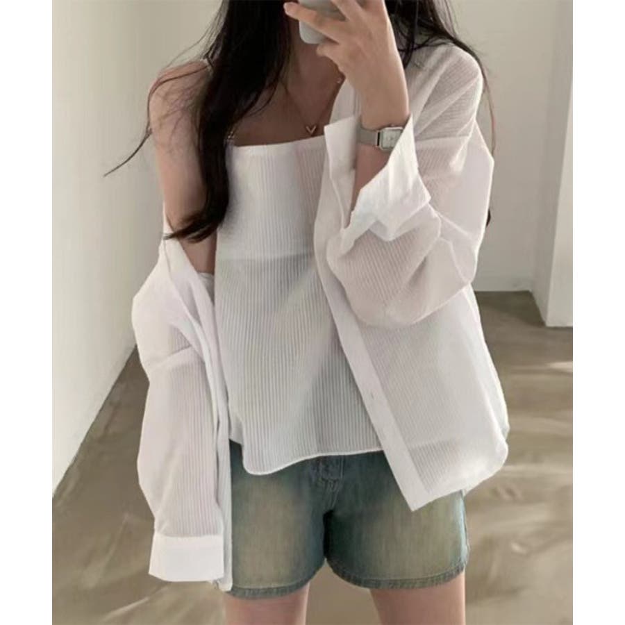 涼しい素材のオシャレなキャミソール+シャツSETを紹介します。