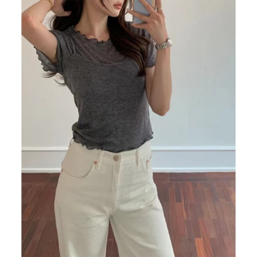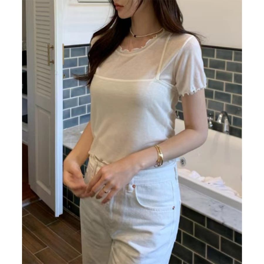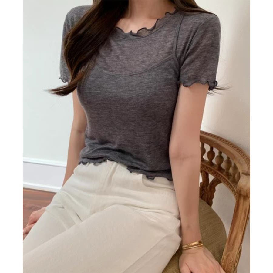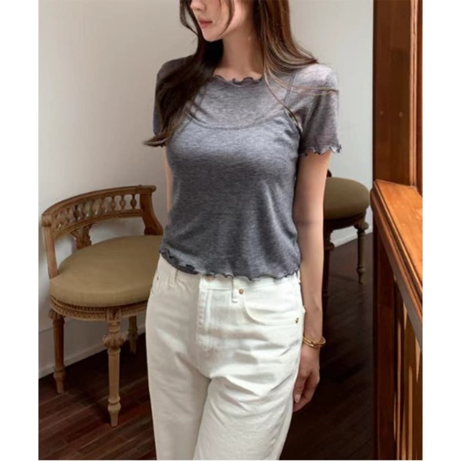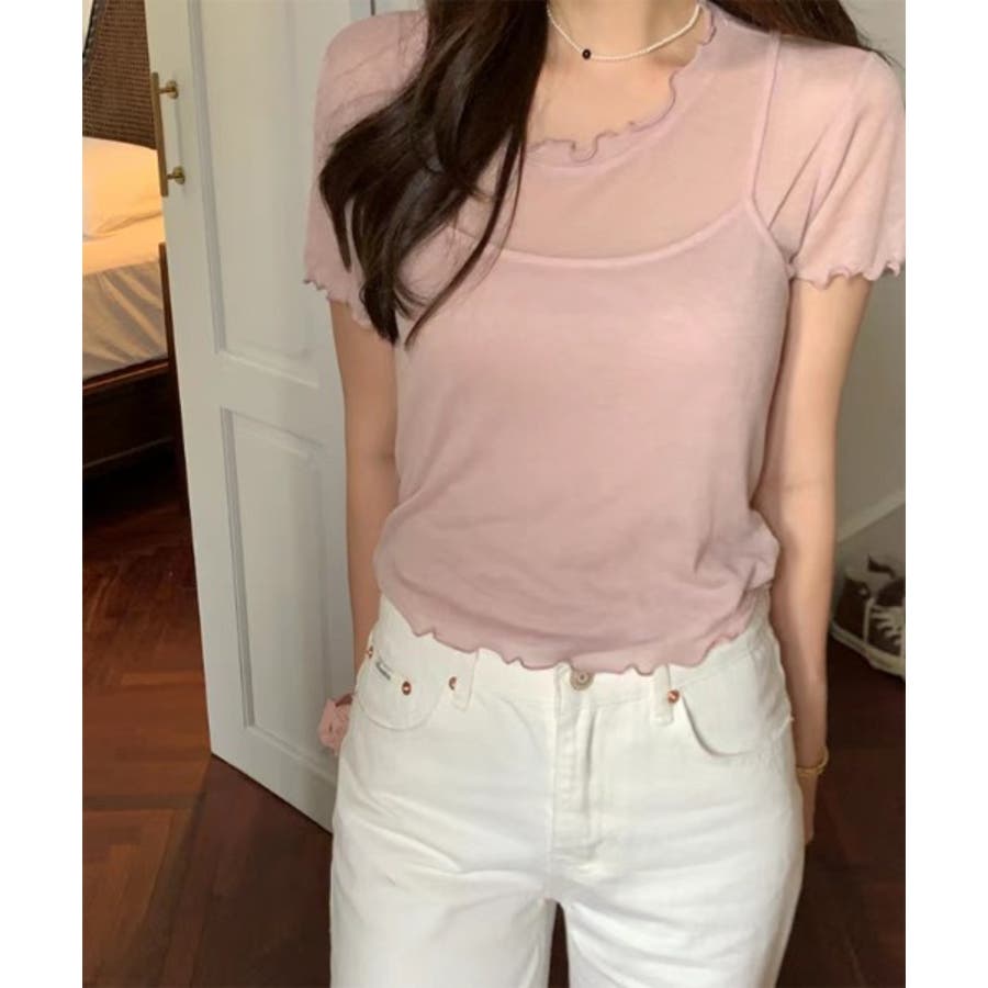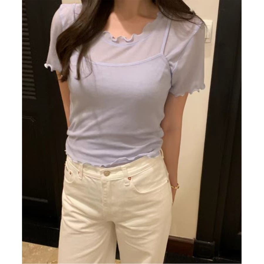 【レイヤードウェーブ半袖Tシャツ+キャミソールSET】