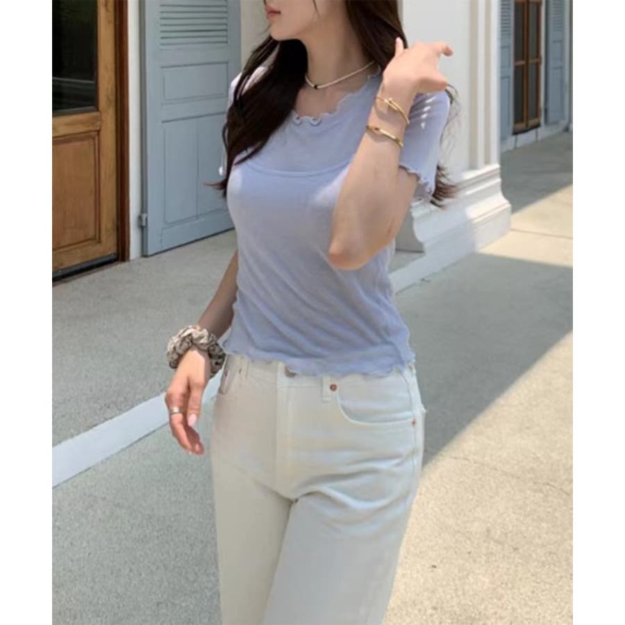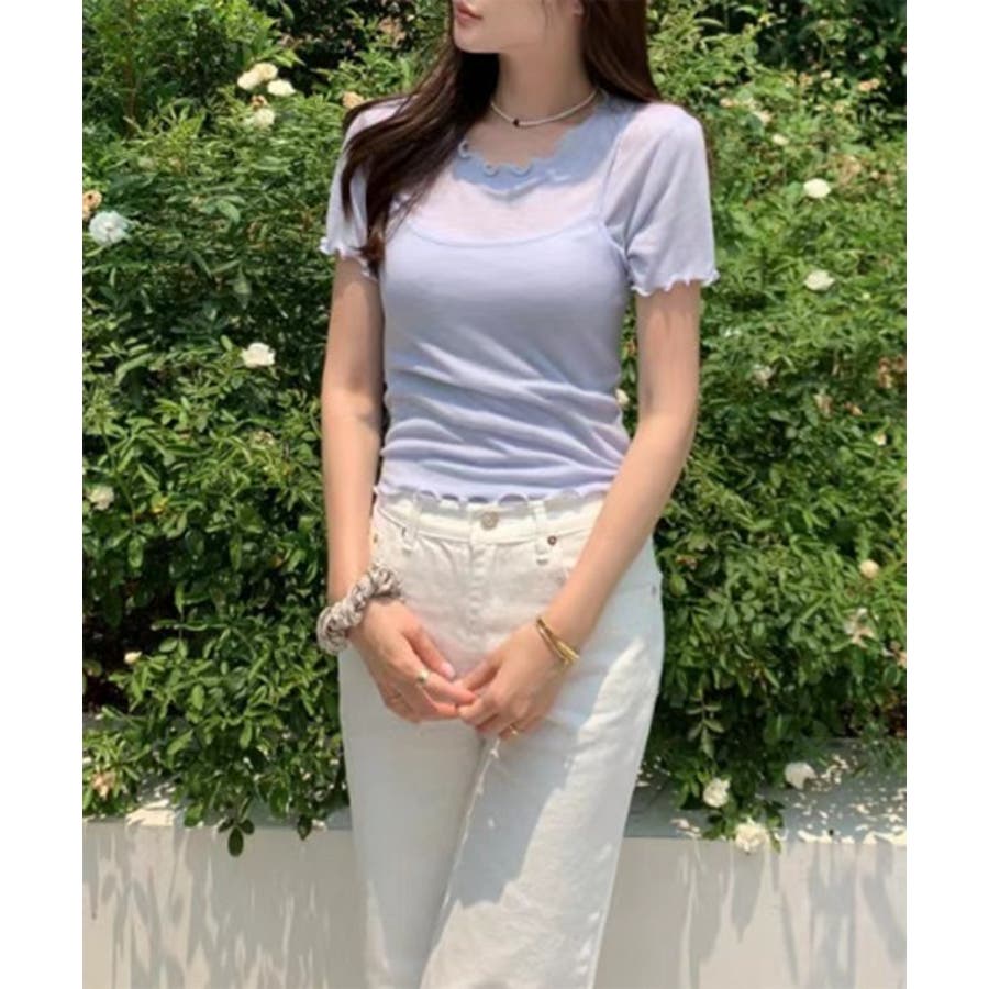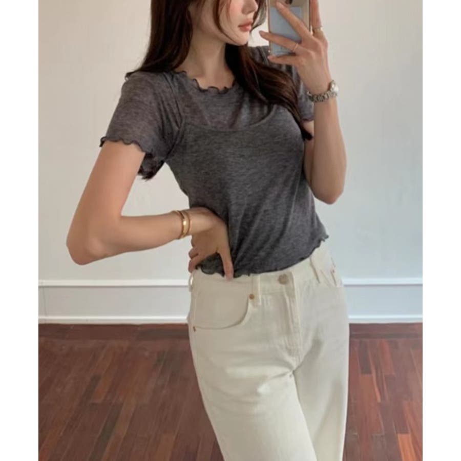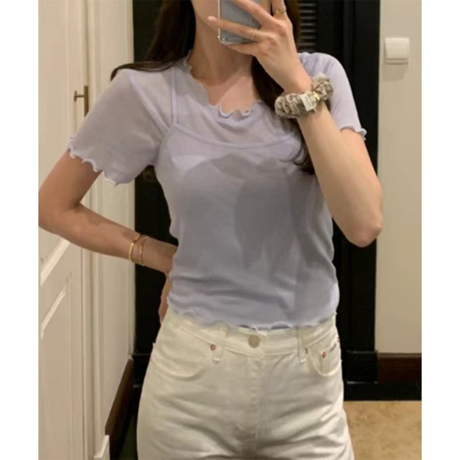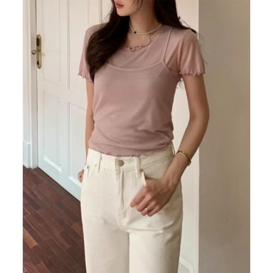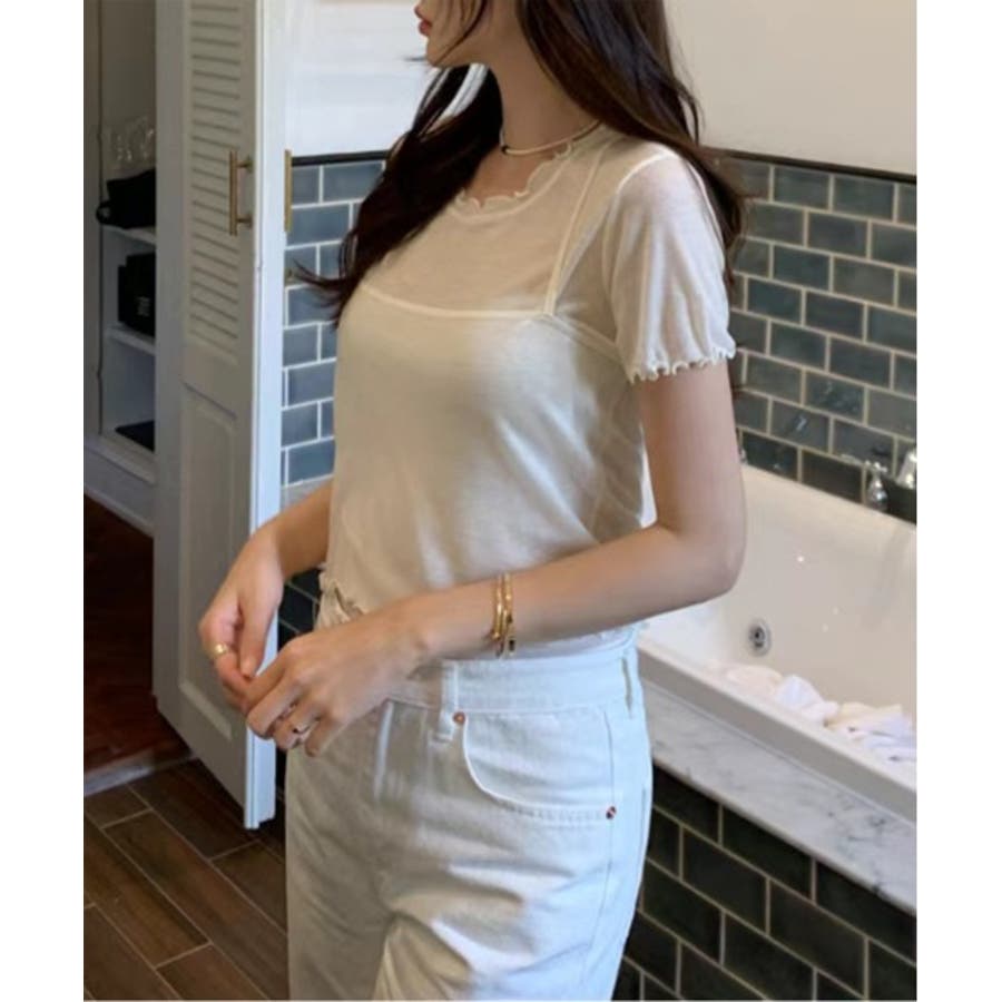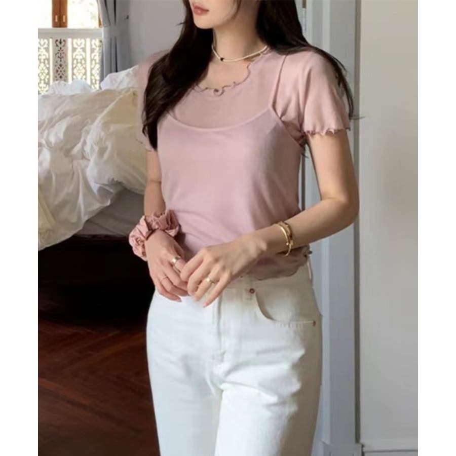 【レイヤードウェーブ半袖Tシャツ+キャミソールSET】