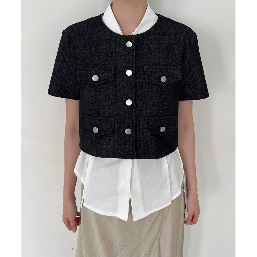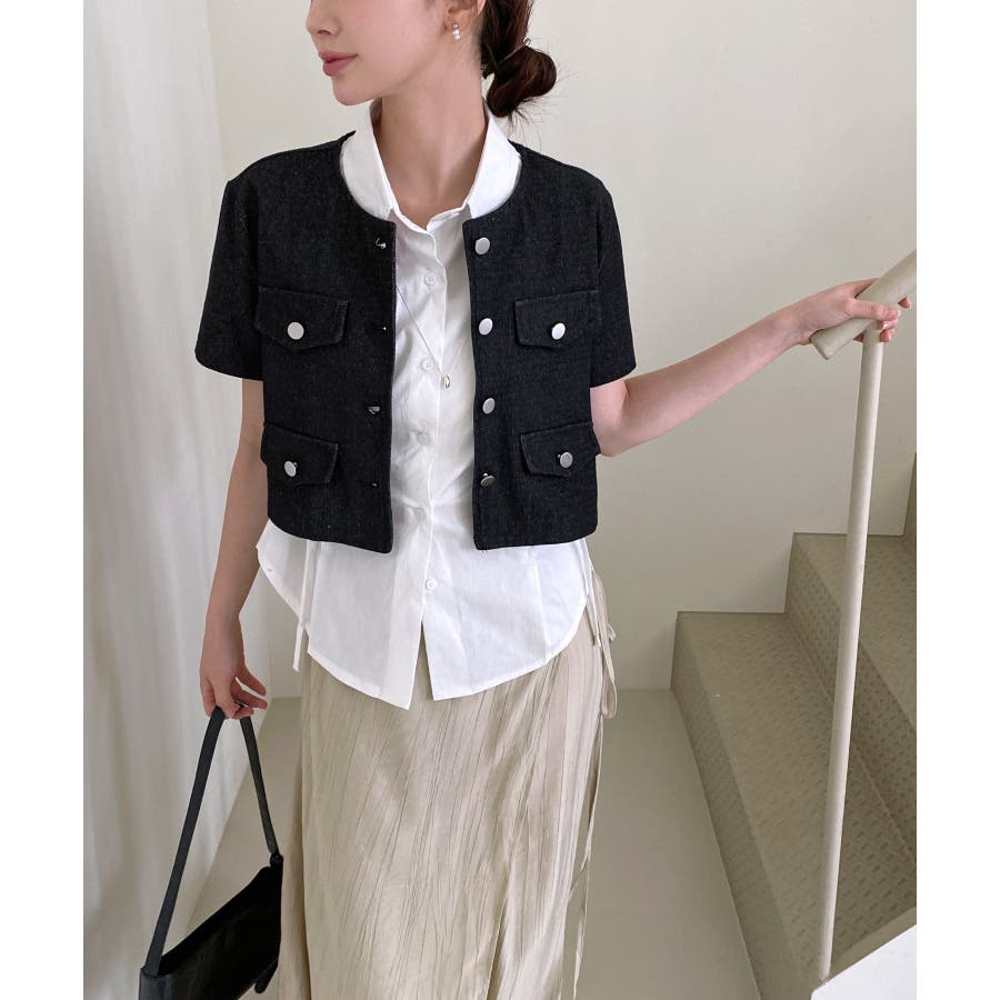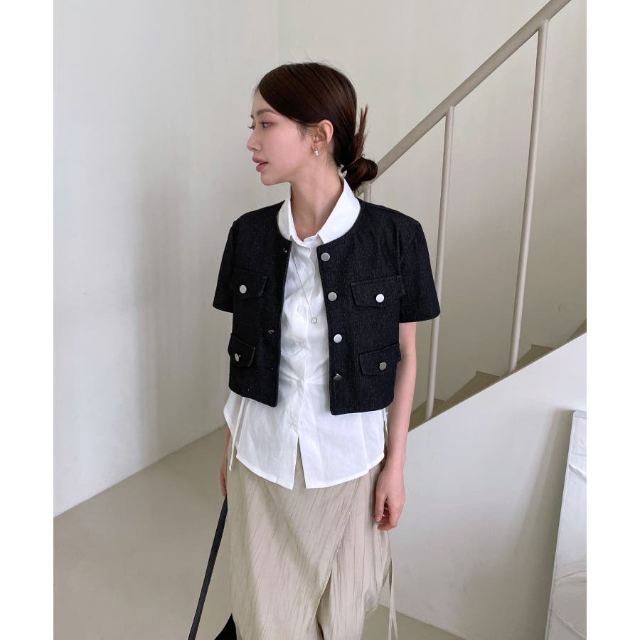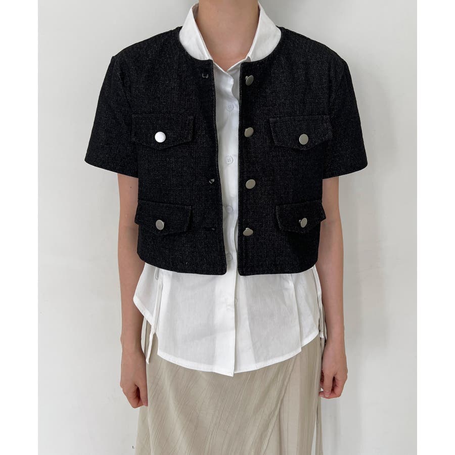 モダンな雰囲気のデニム半袖ジャケットを紹介します。