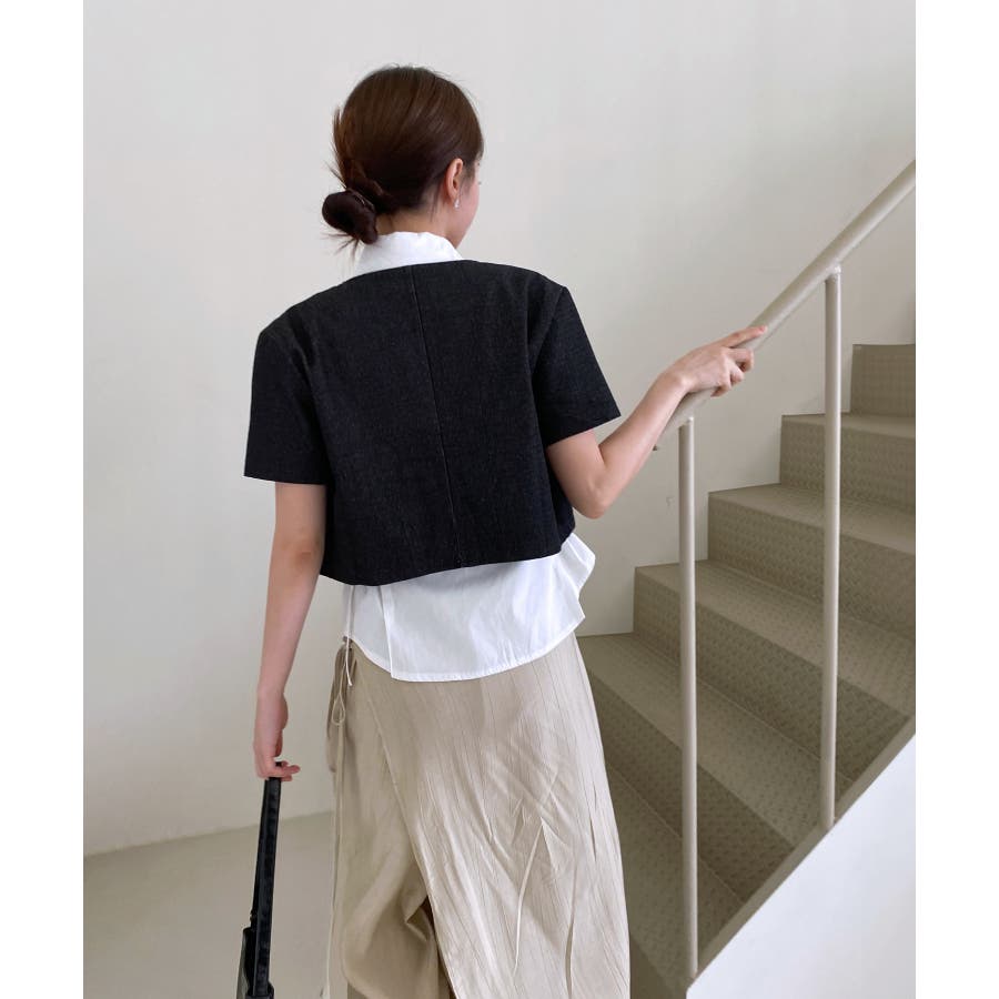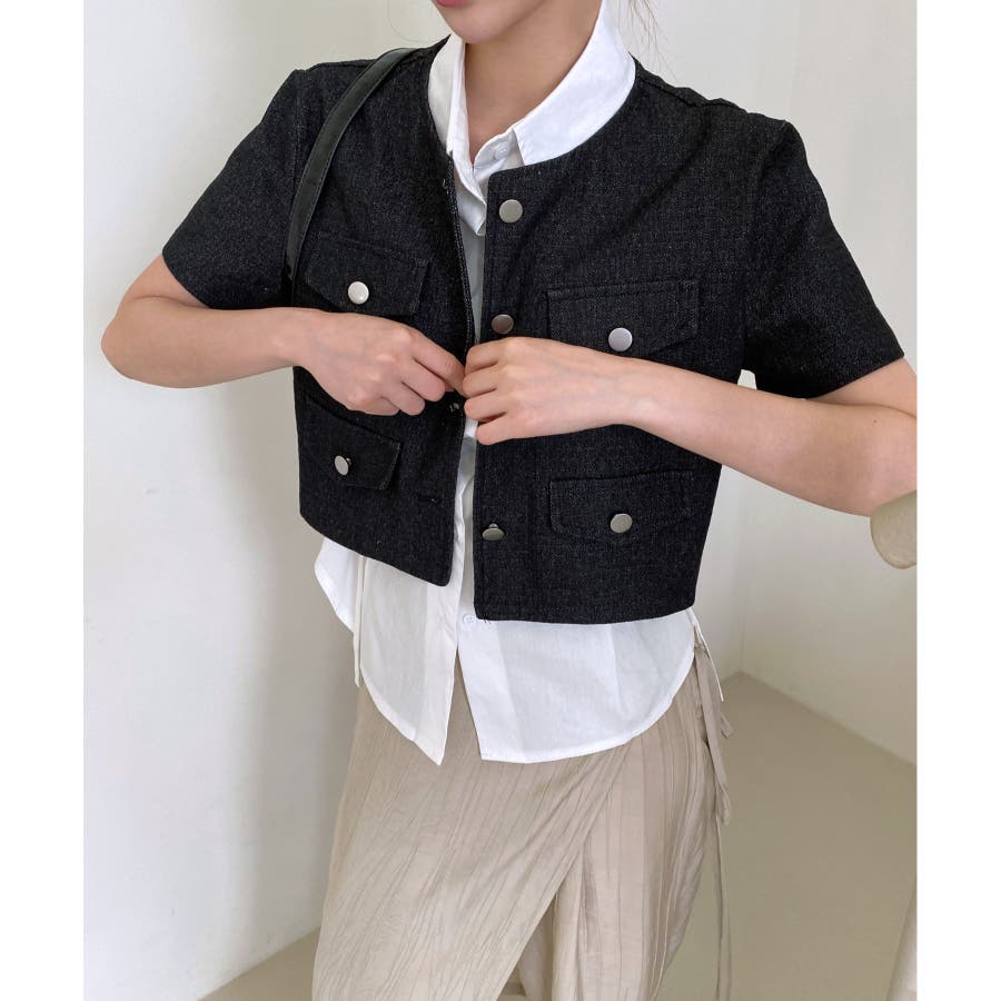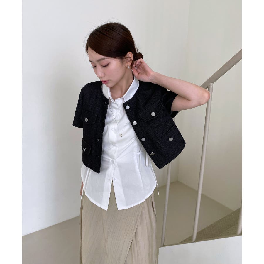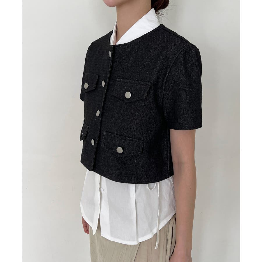 モダンな雰囲気のデニム半袖ジャケットを紹介します。