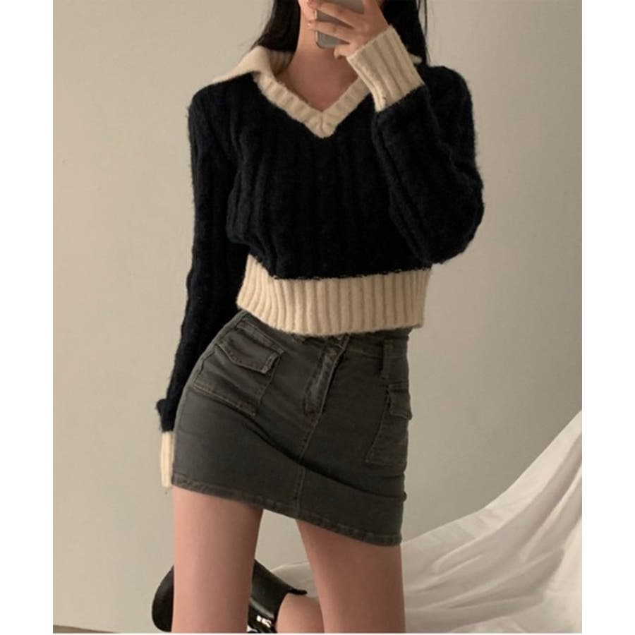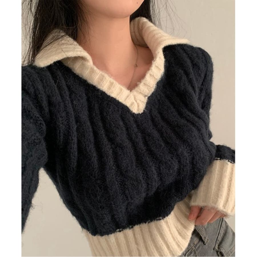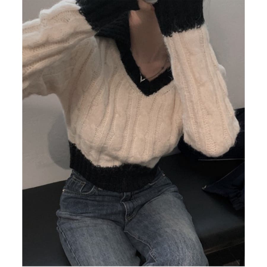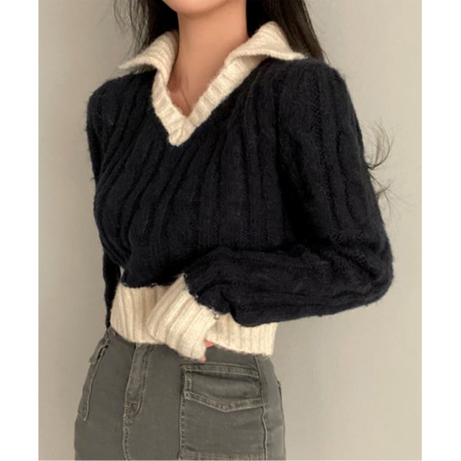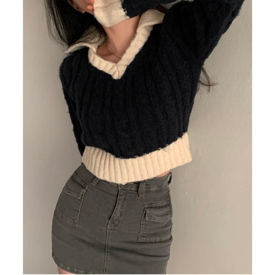 【バイカラークロップドニット】