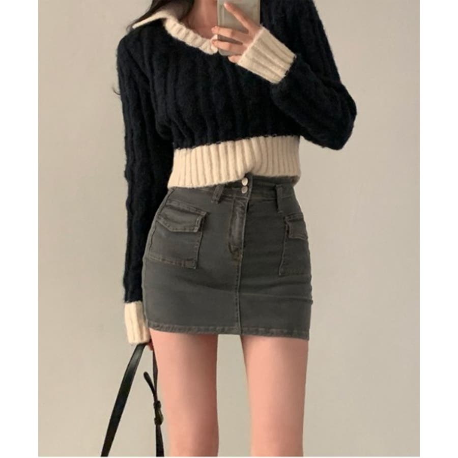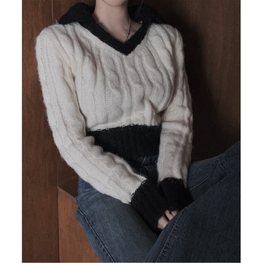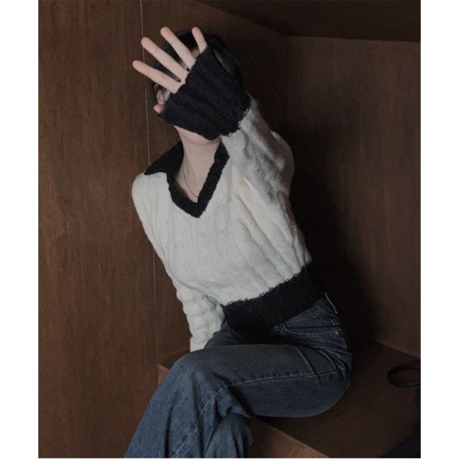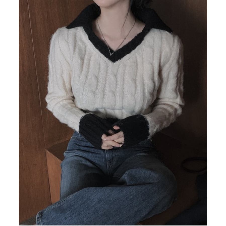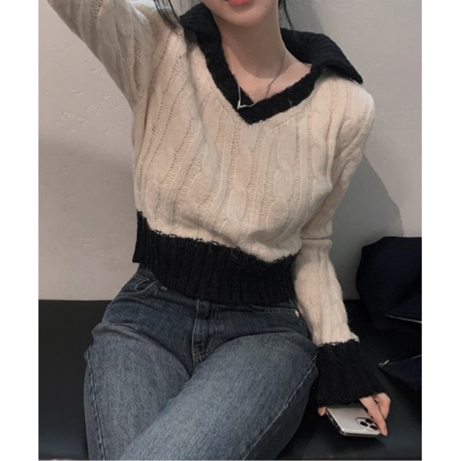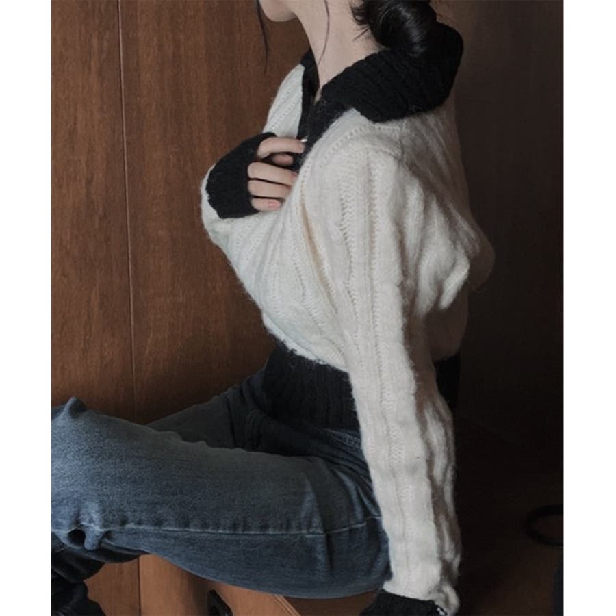 【バイカラークロップドニット】
