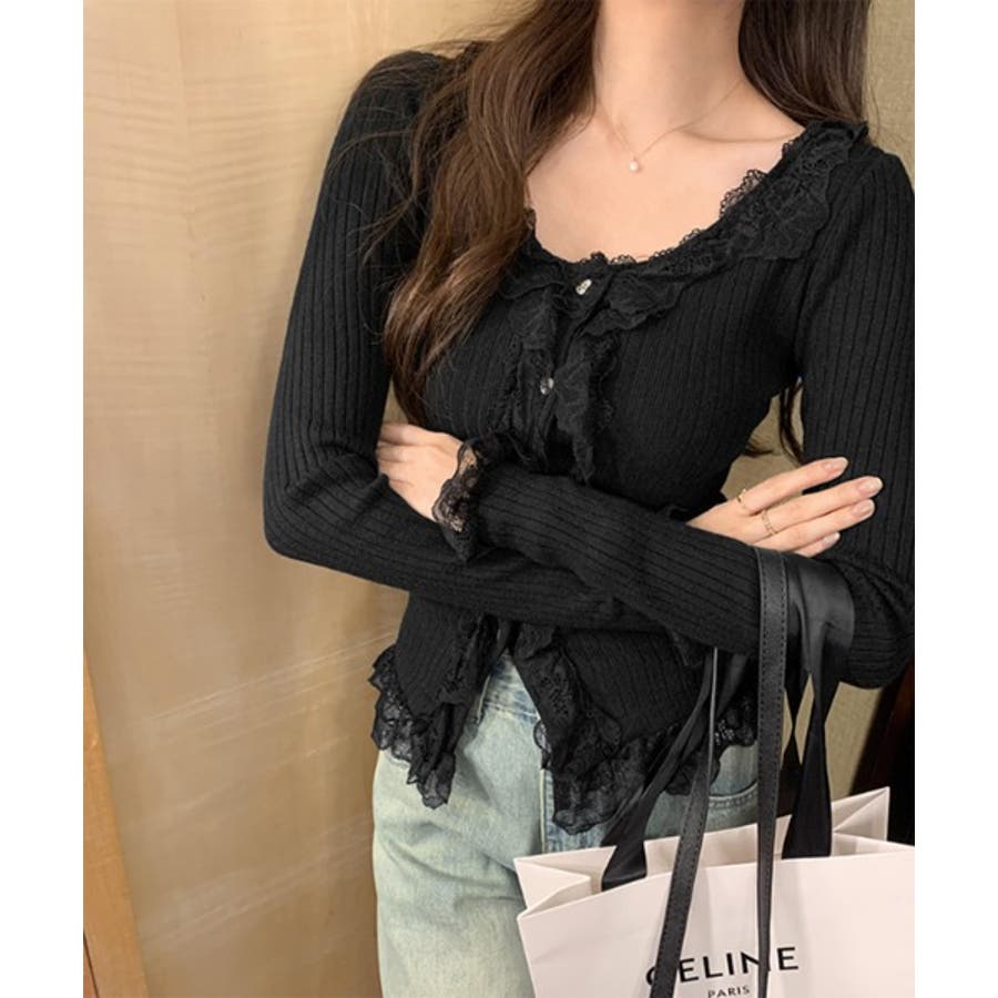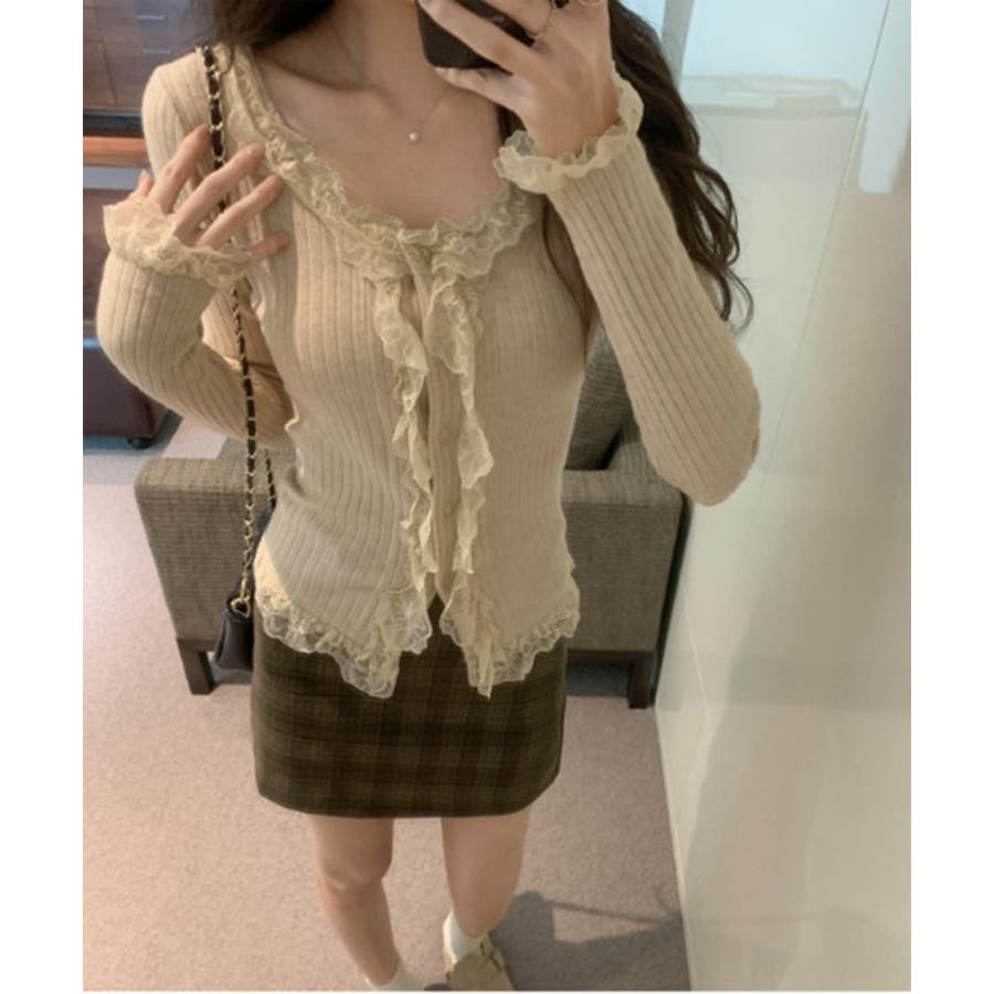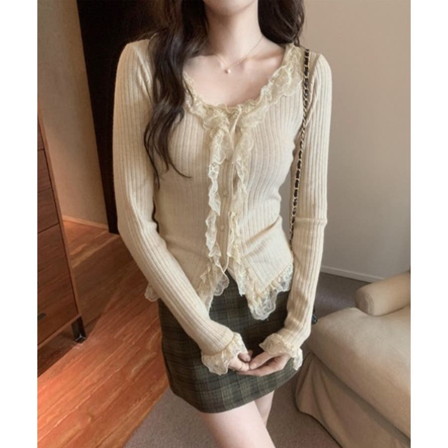 ラブリーなレース仕様のリブカーディガンを紹介します。