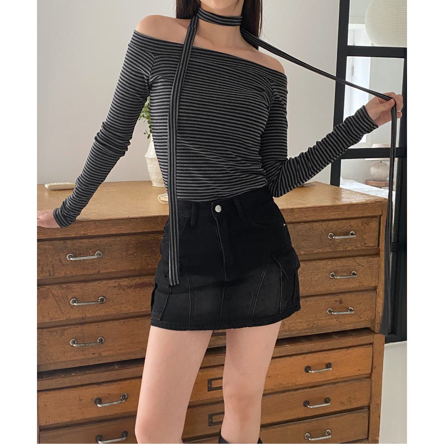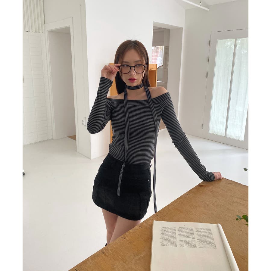 【ボーダーオフショルダーマフラーSET】
