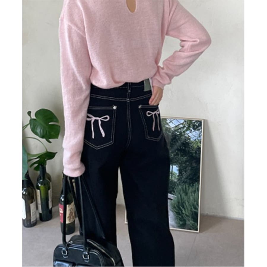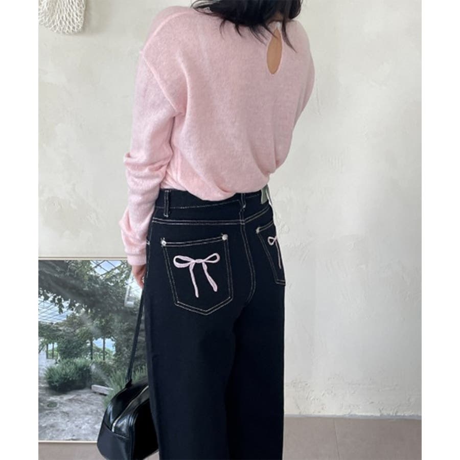 バックポケット部分のリボン刺繍がポイントになり