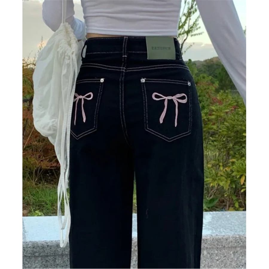 コーデのポイントになってくれる人気急上昇中のリボン刺繍パンツ ♥