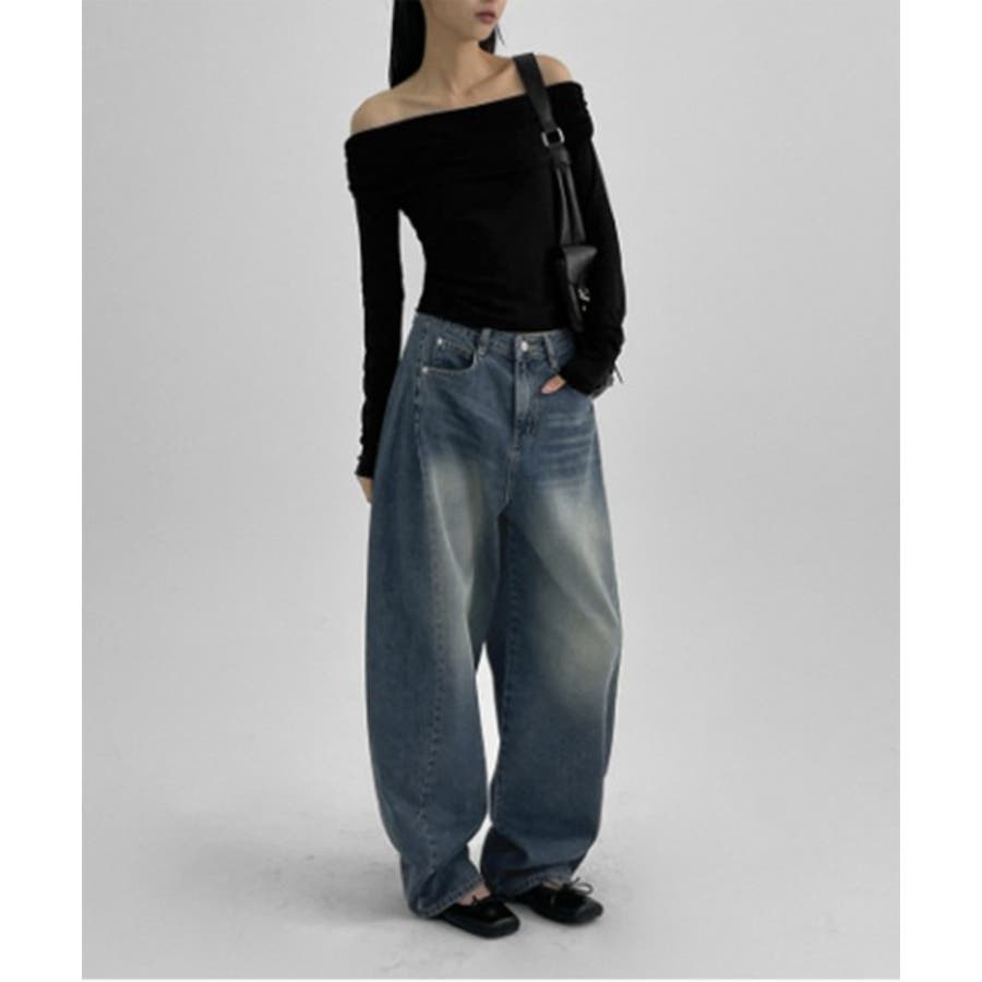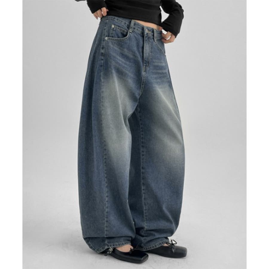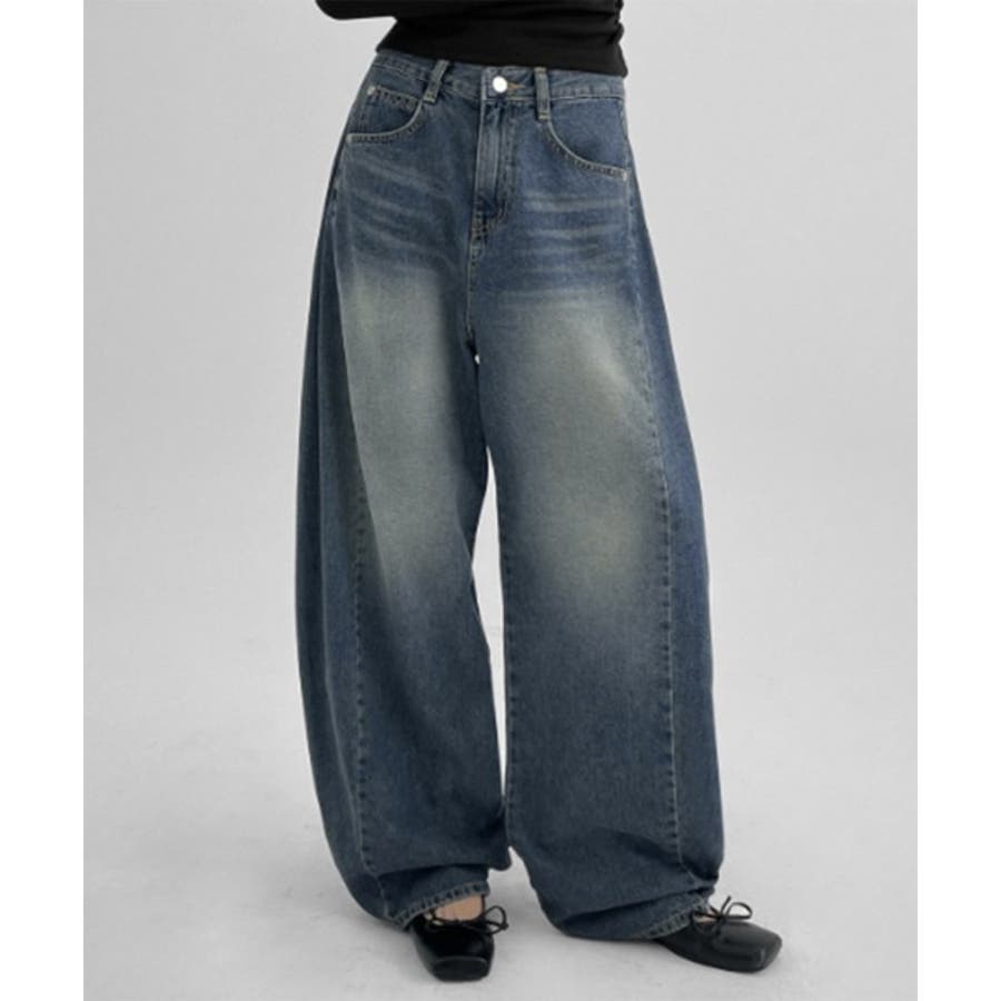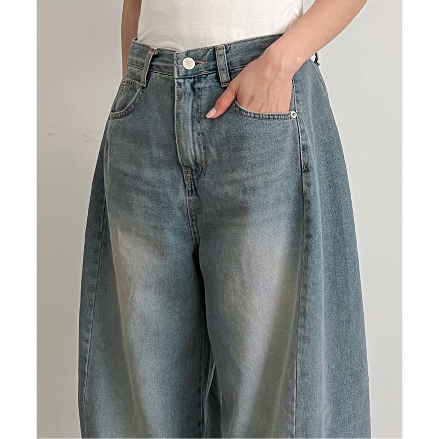 ワイドなバルーンシルエットのデニムパンツを紹介します。
