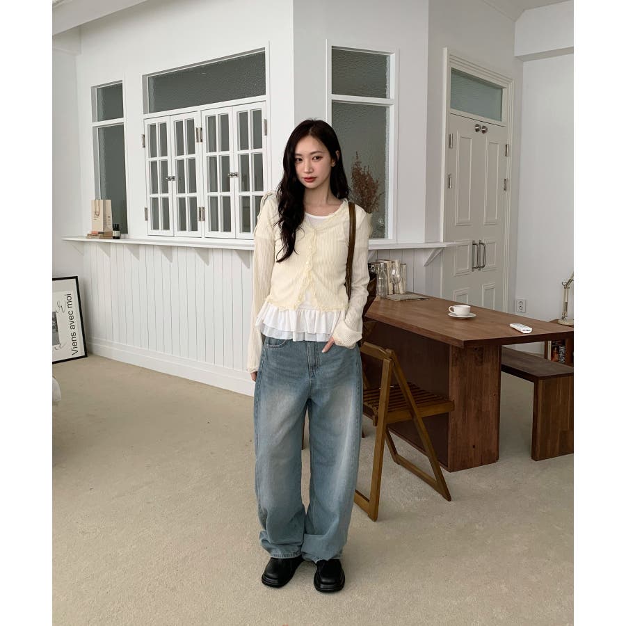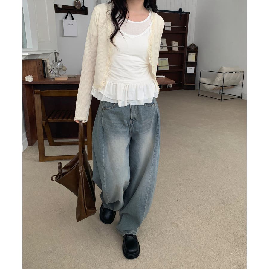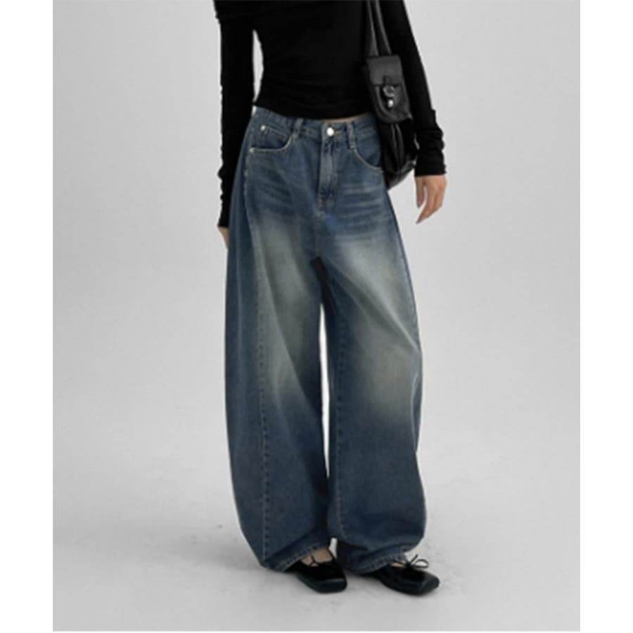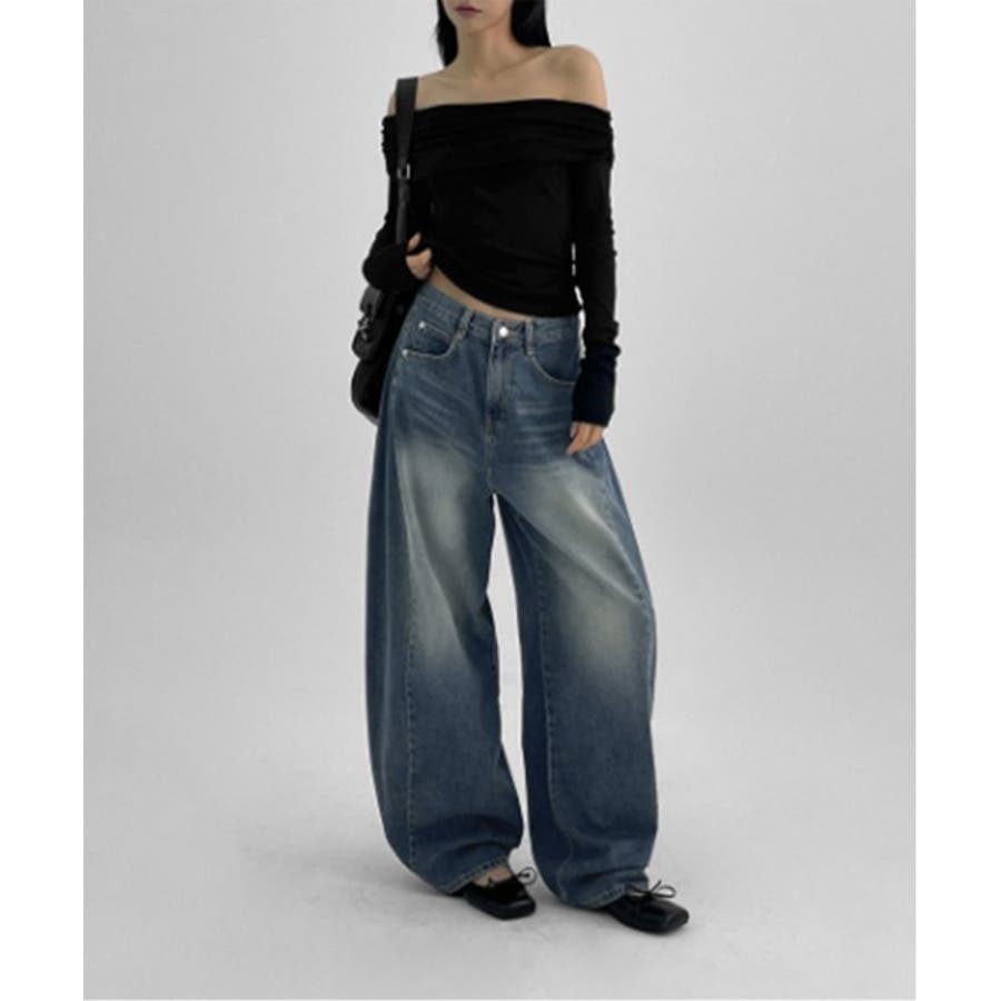 ワイドなバルーンシルエットのデニムパンツを紹介します。