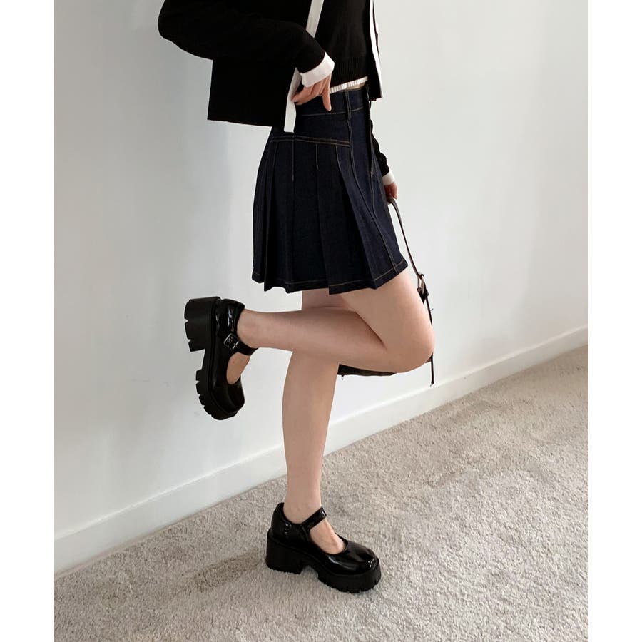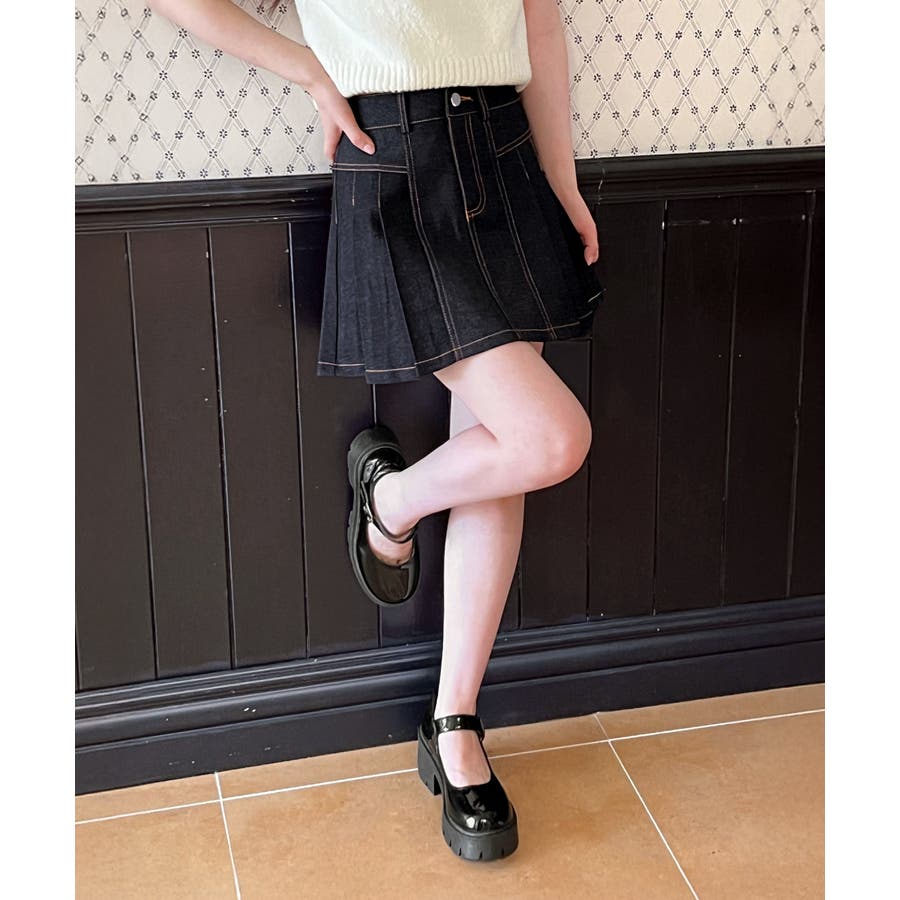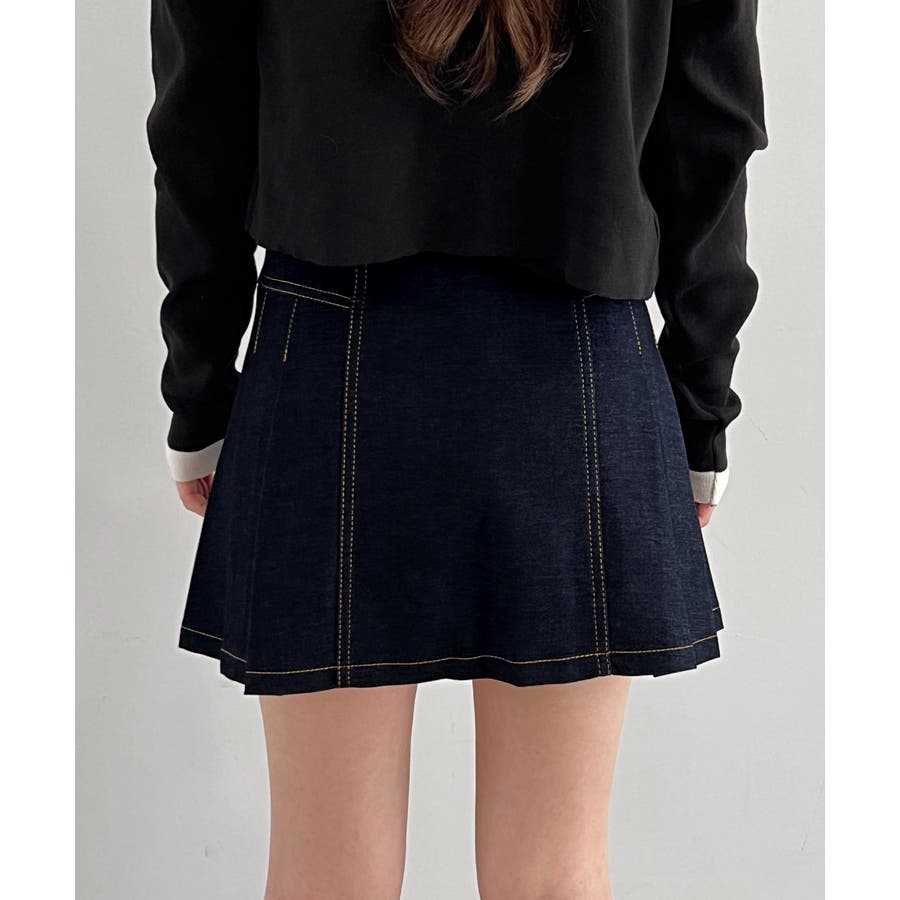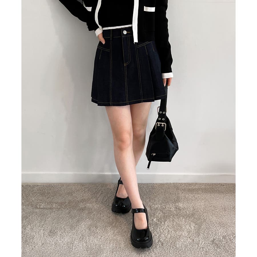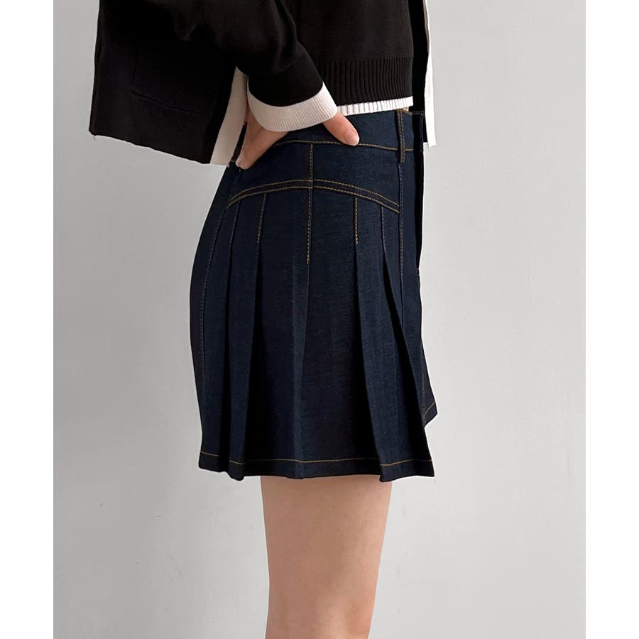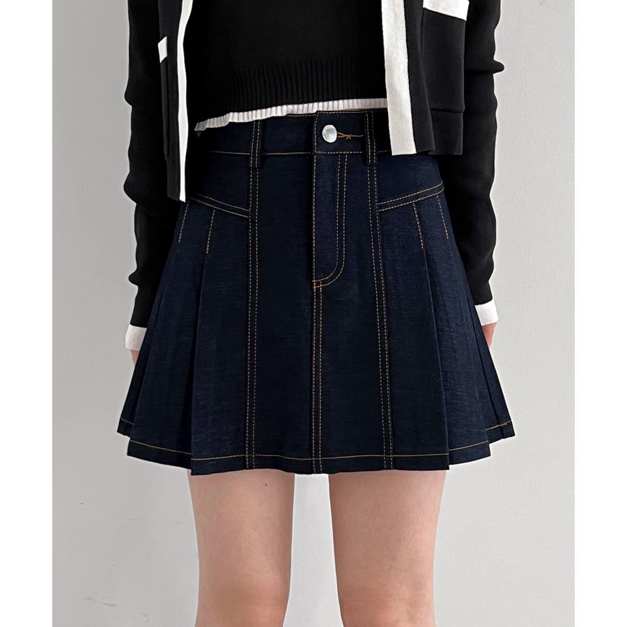 毎日気軽に着られるベーシックなデニムプリーツミニスカート。