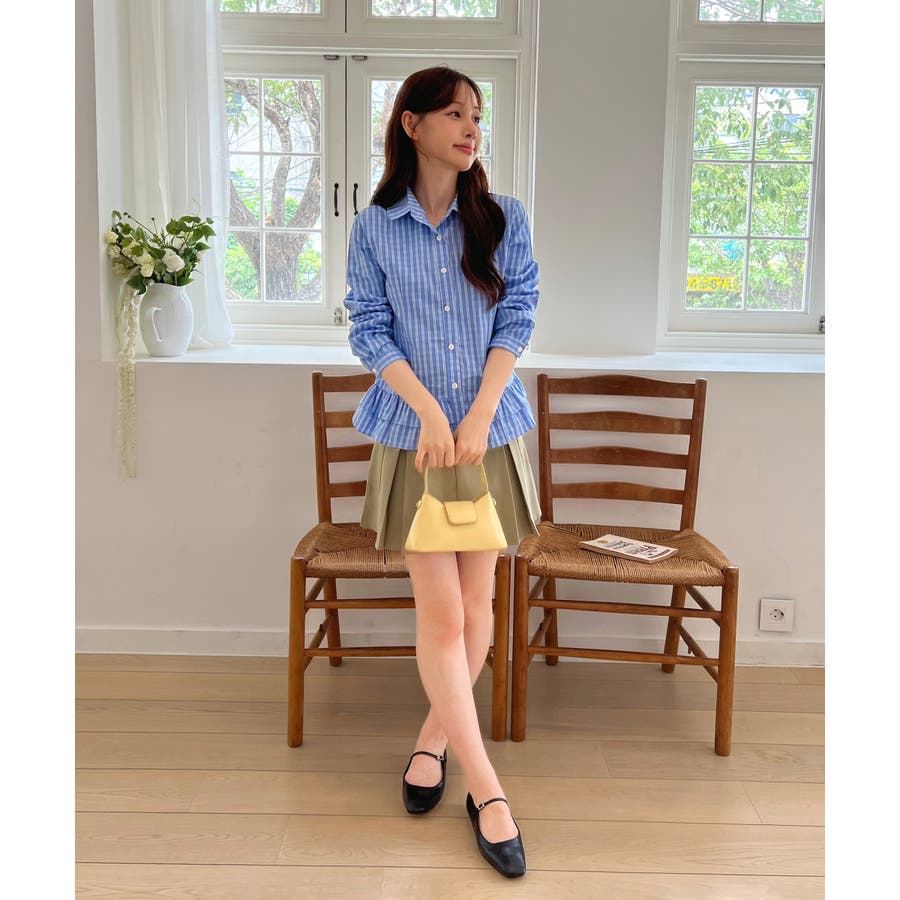 よりフェミニンで可愛らしい印象にしたいときは、ミニスカートやプリーツスカートと合わせて、