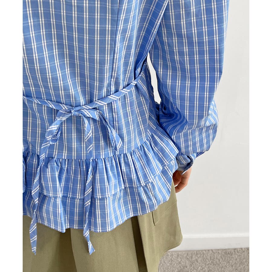 ウエストラインに沿って自然に広がるフリルヘムが、ラブリーなシルエットを演出。
