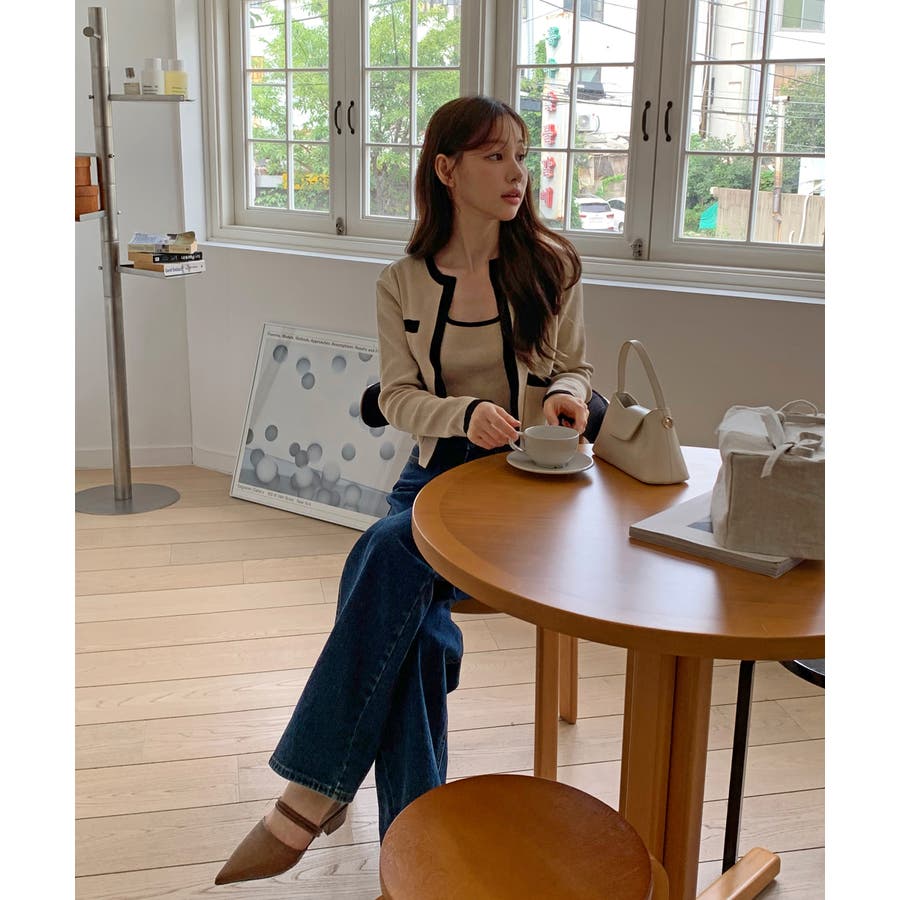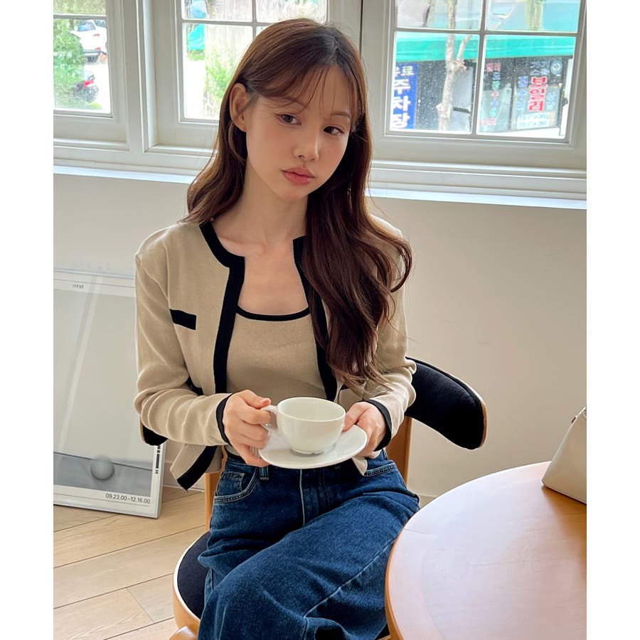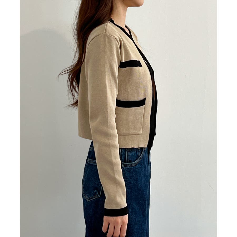 ツイードジャケットを思わせる高級感漂うニットカーディガン。