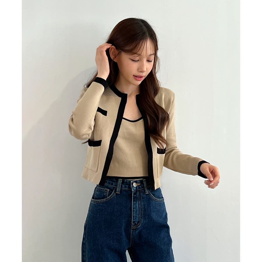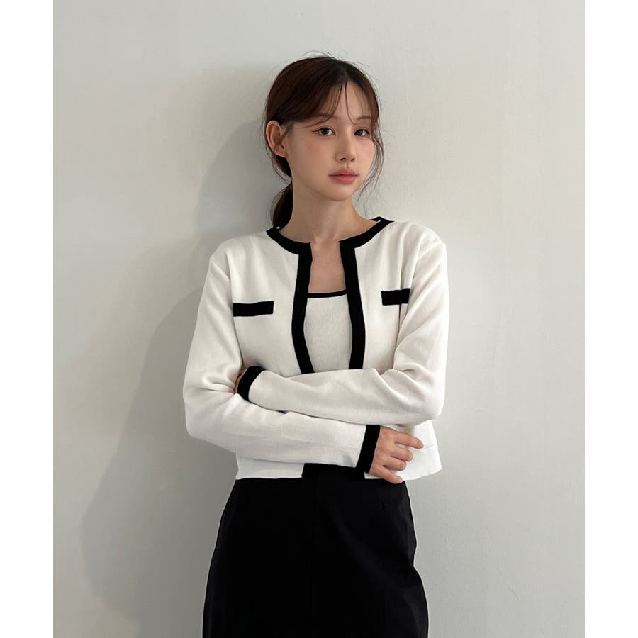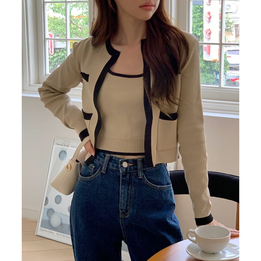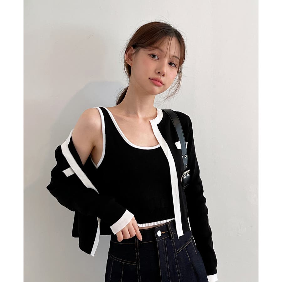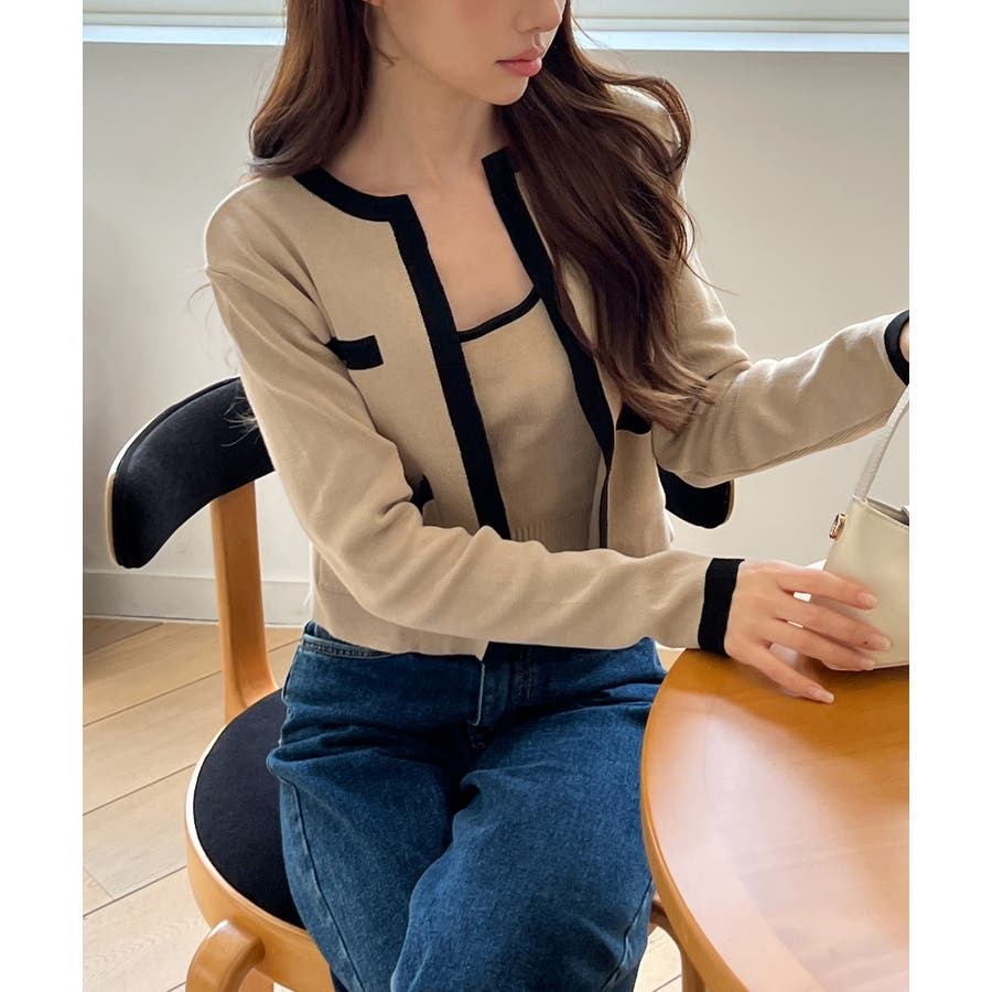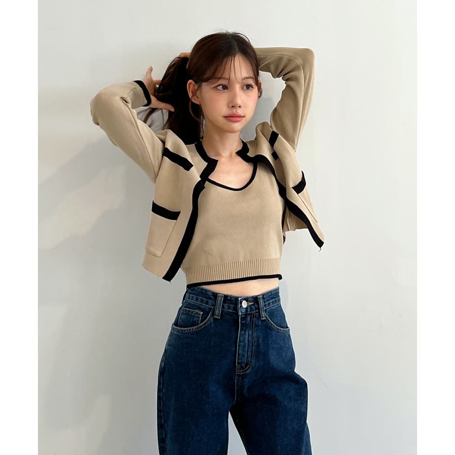 配色クロップド ニットカーディガン セット(長袖Ver.)