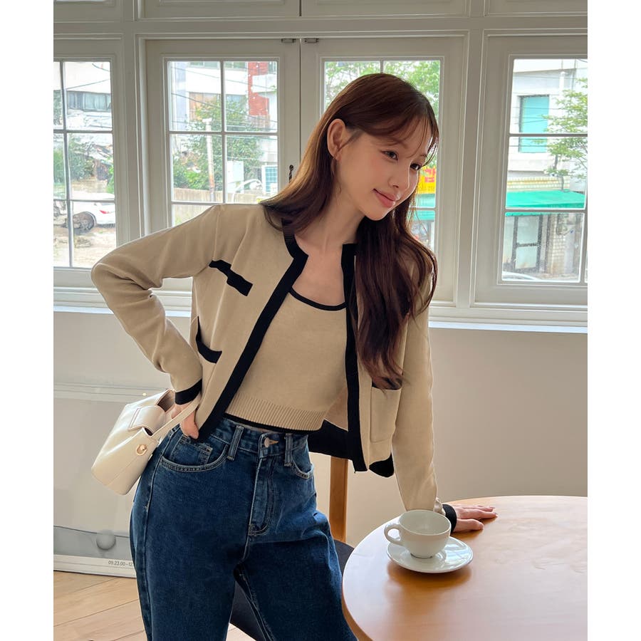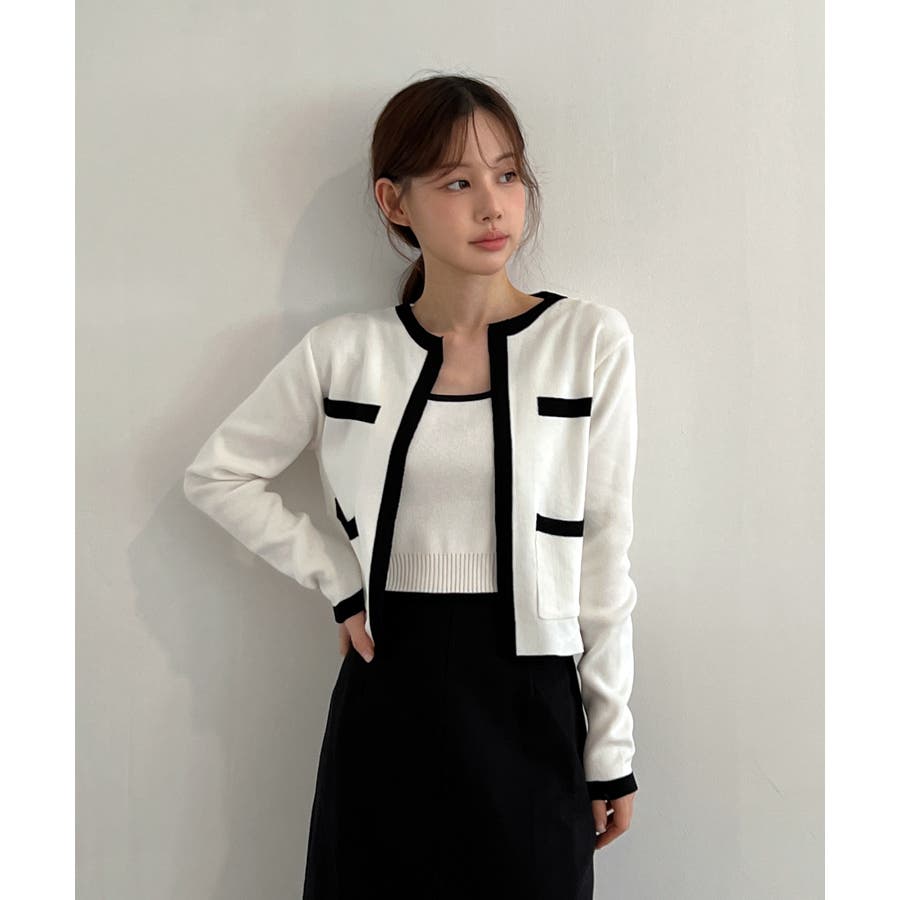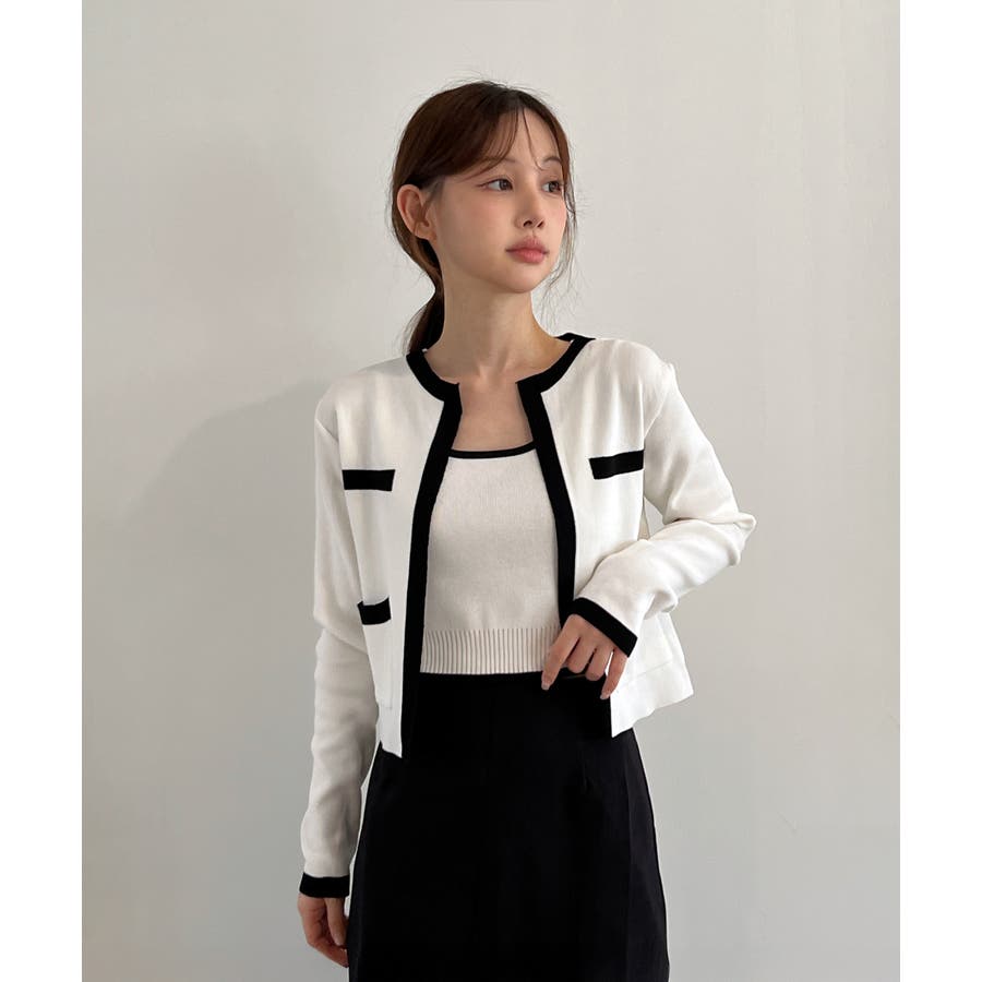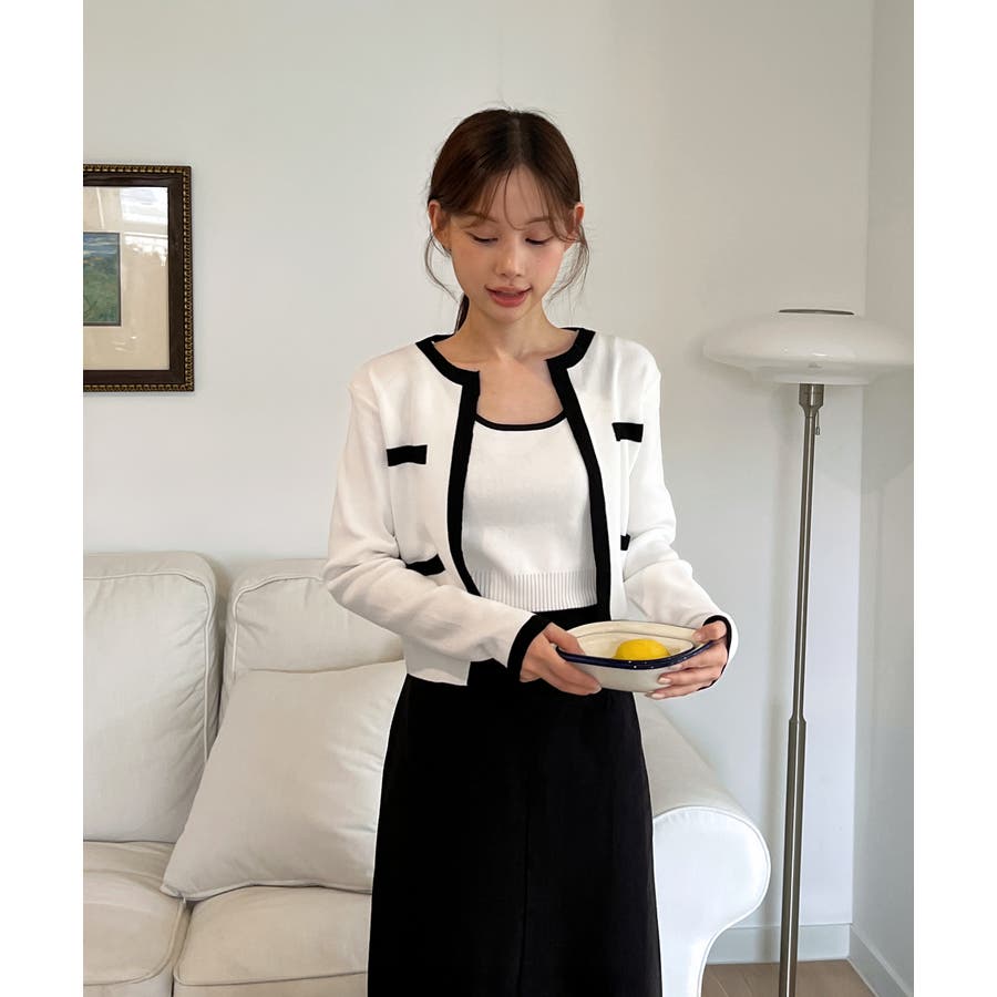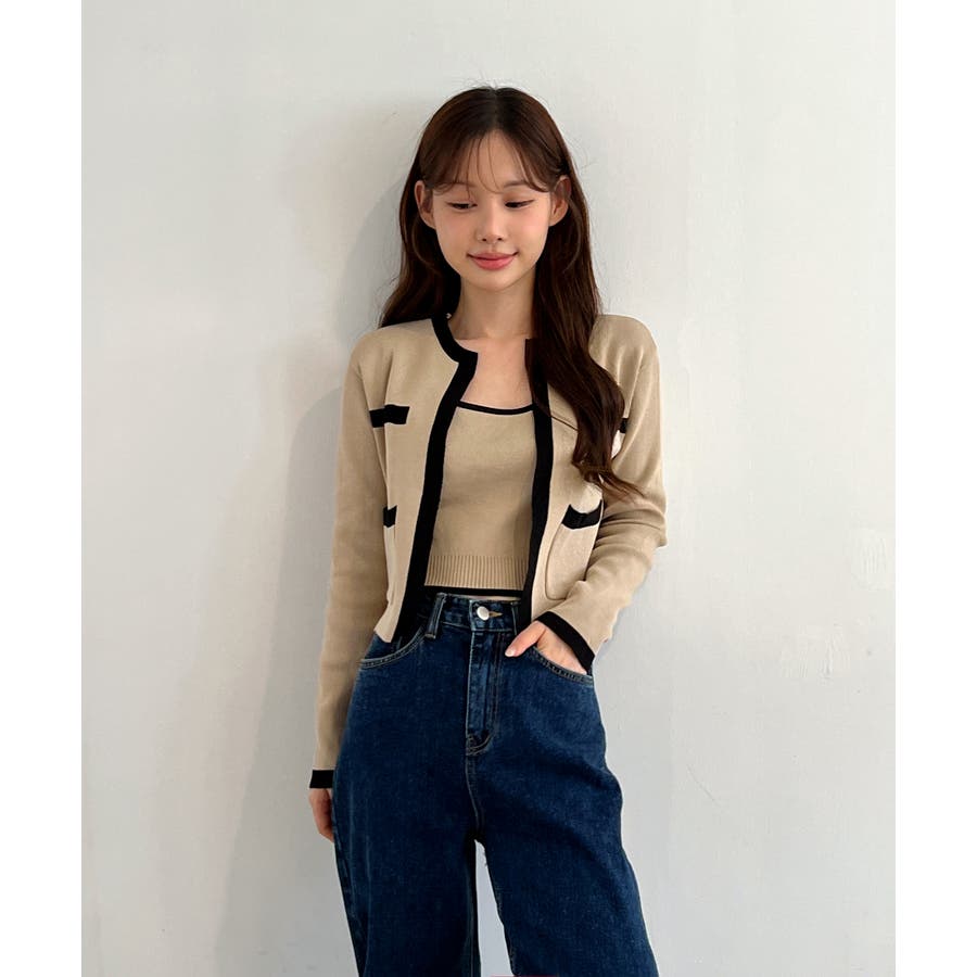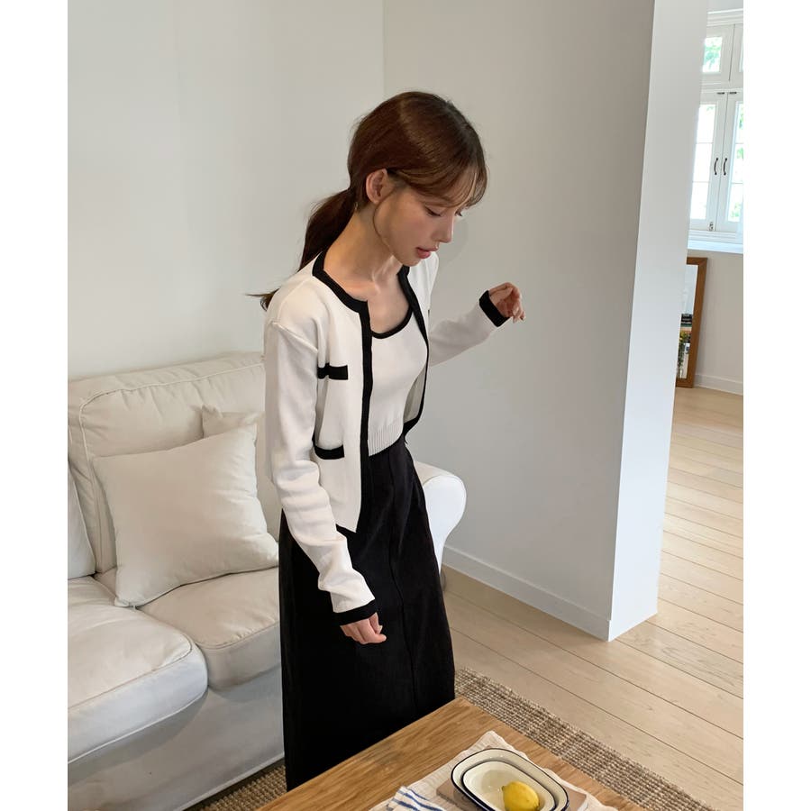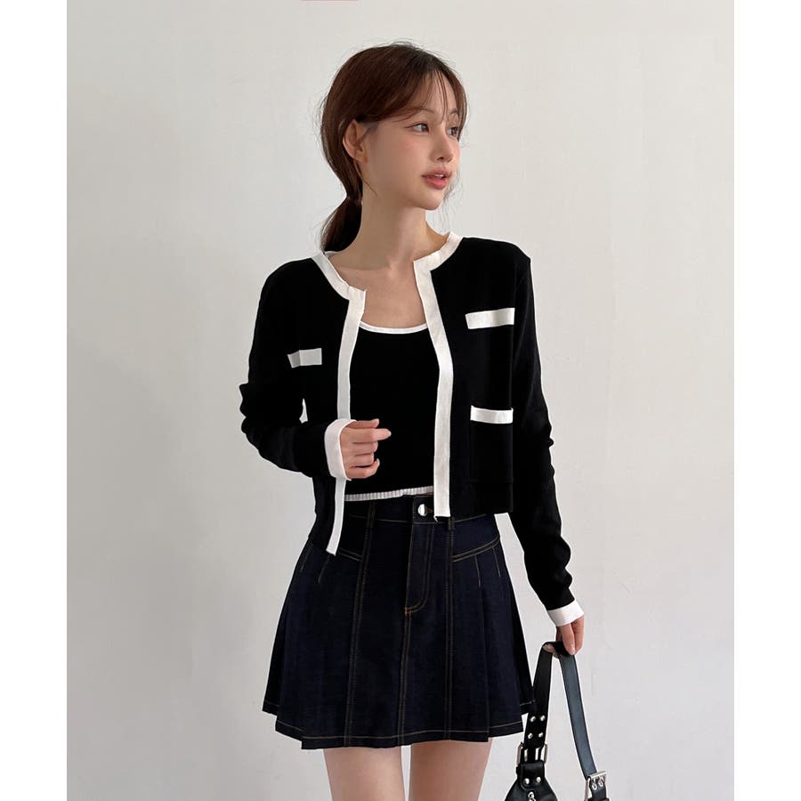 配色クロップド ニットカーディガン セット(長袖Ver.)