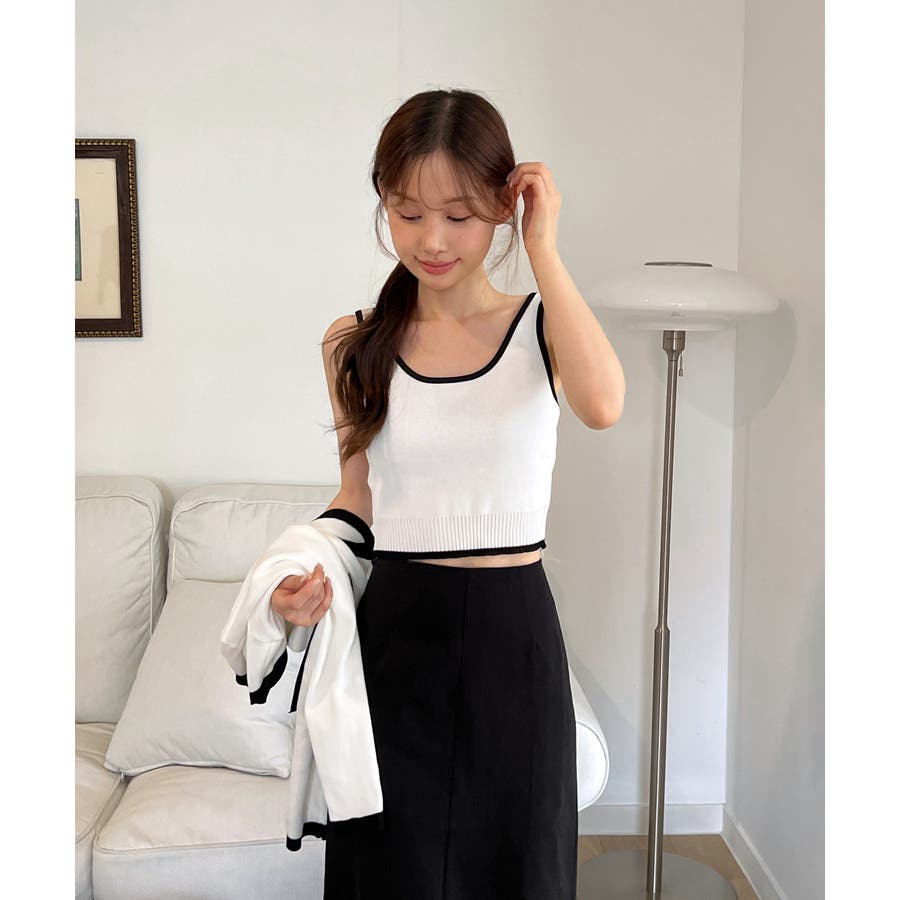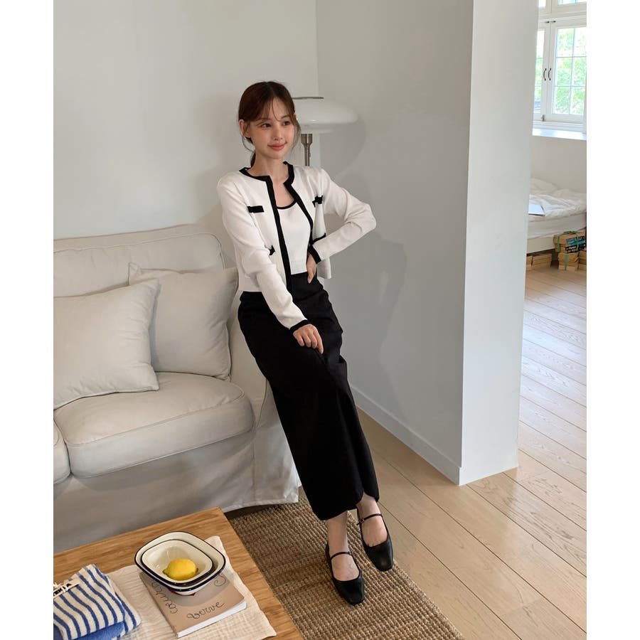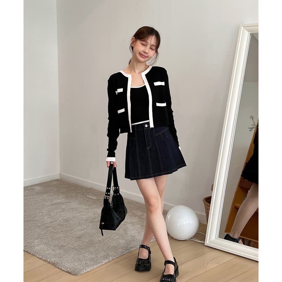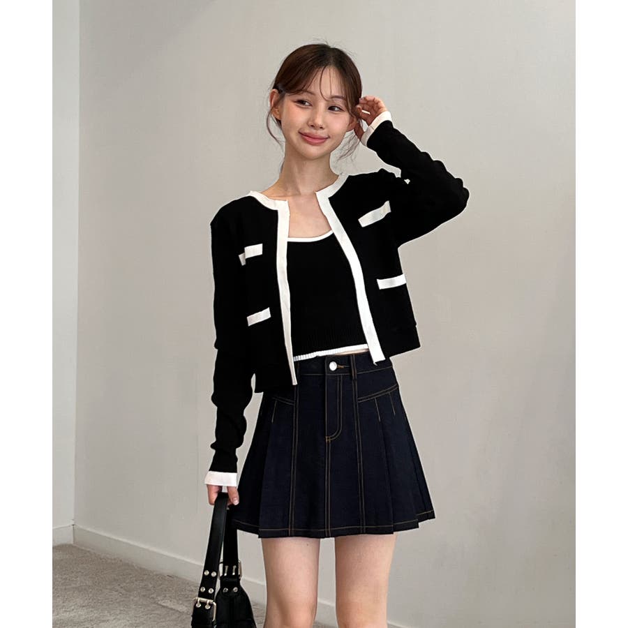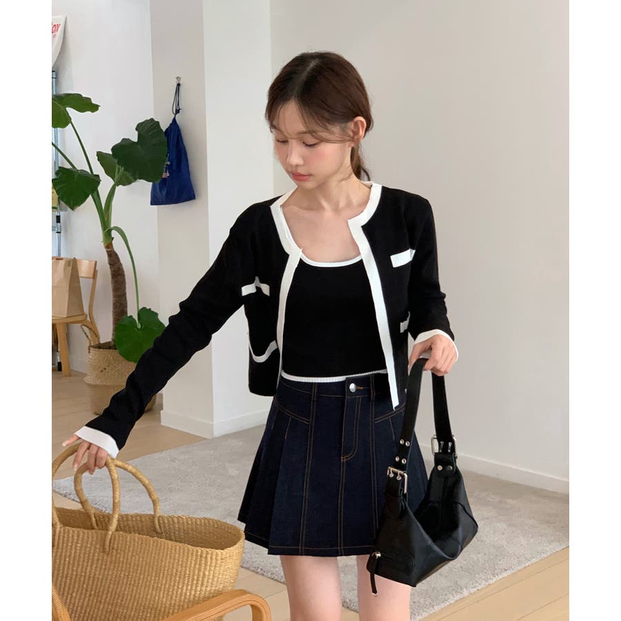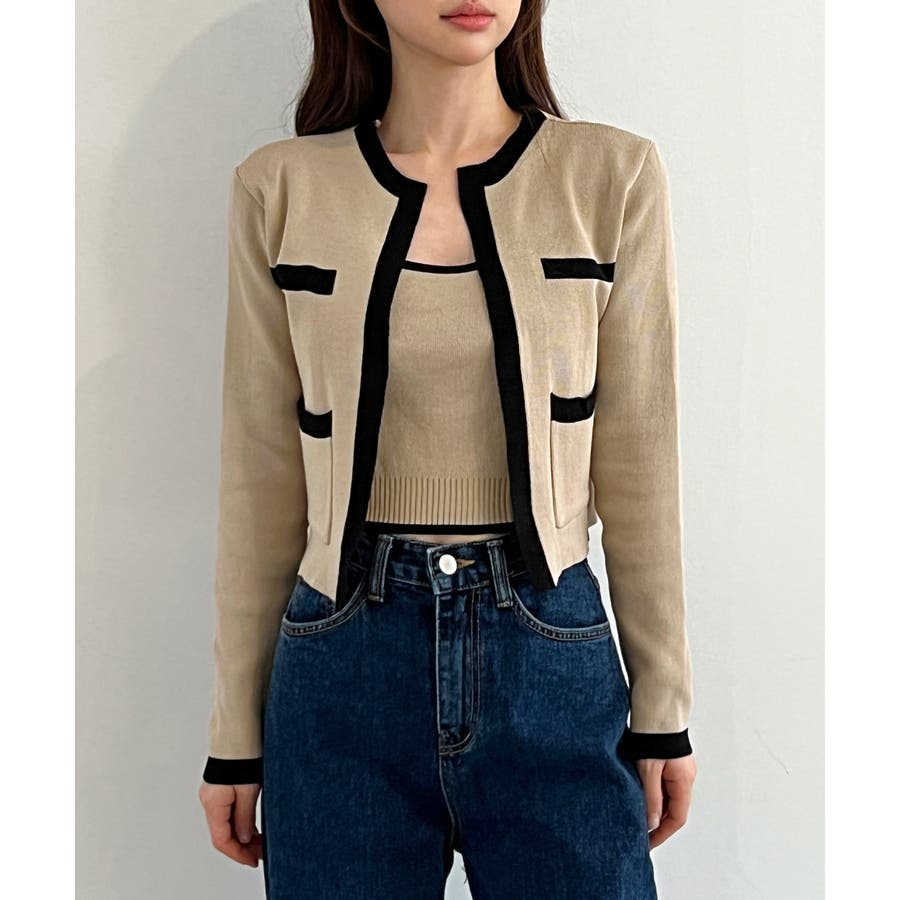 配色クロップド ニットカーディガン セット(長袖Ver.)
