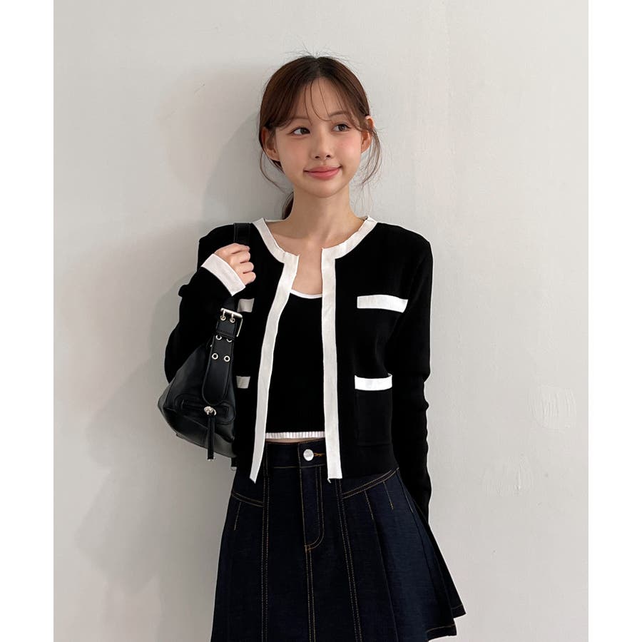 【着用動画あり 3色展開】配色クロップド ニットカーディガン