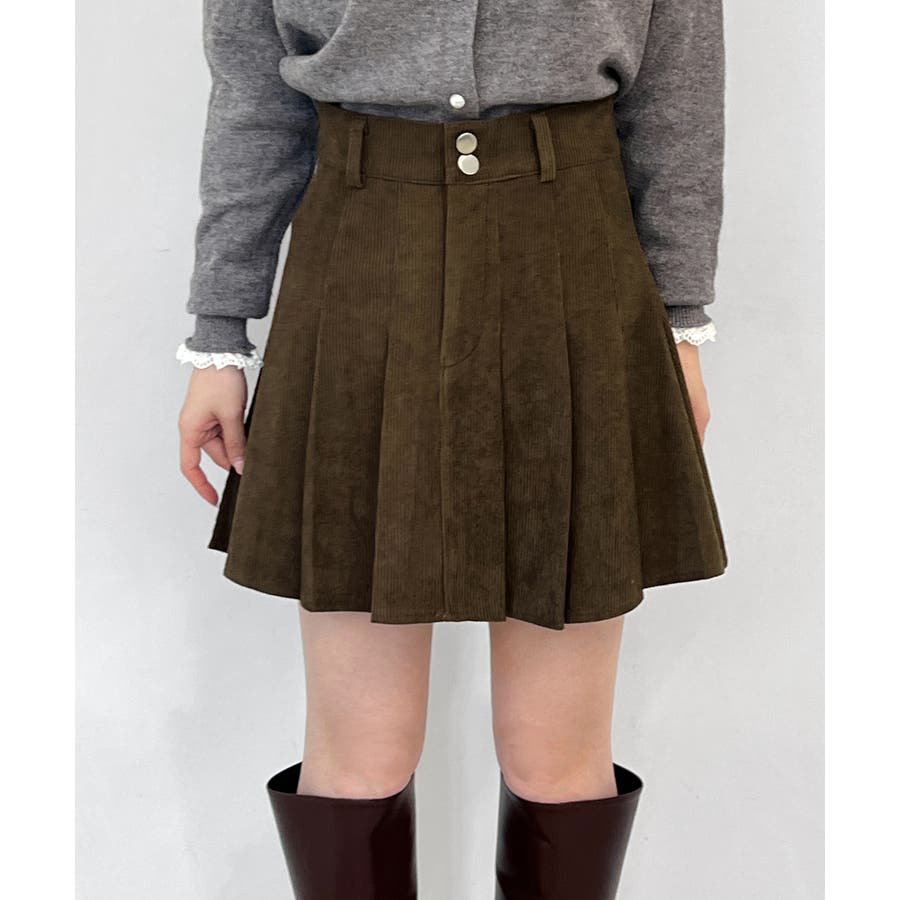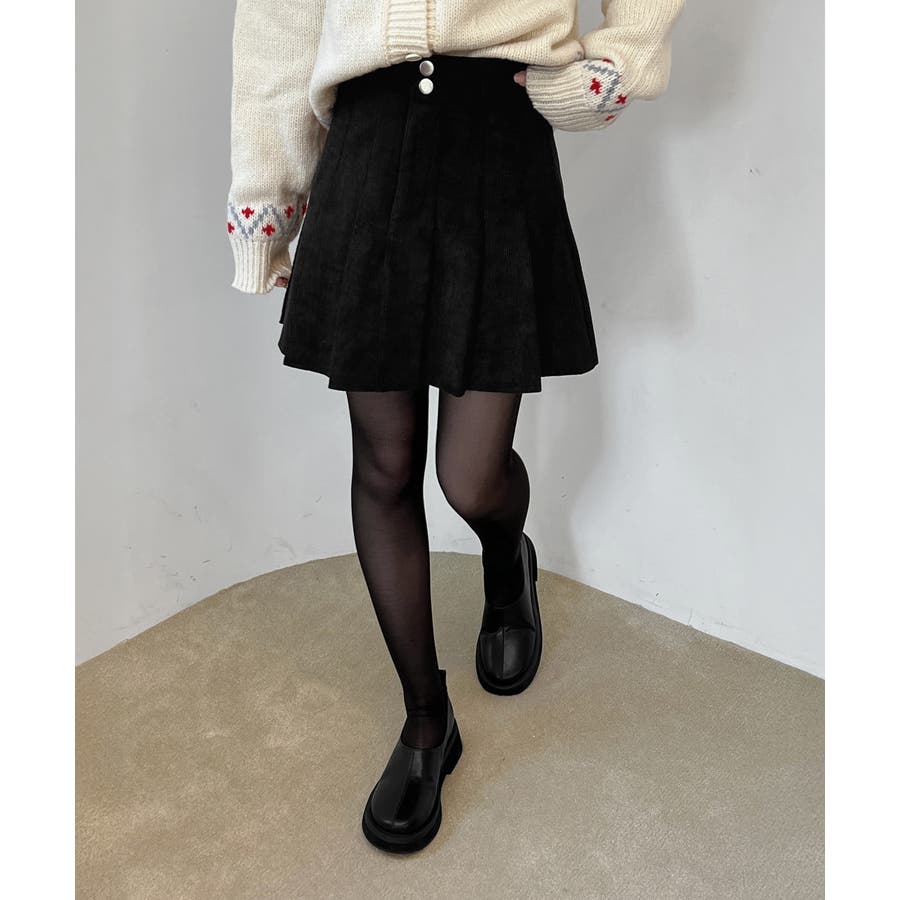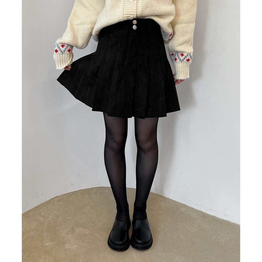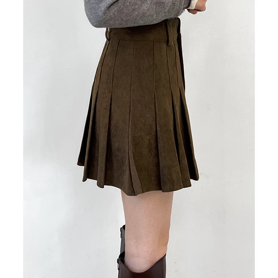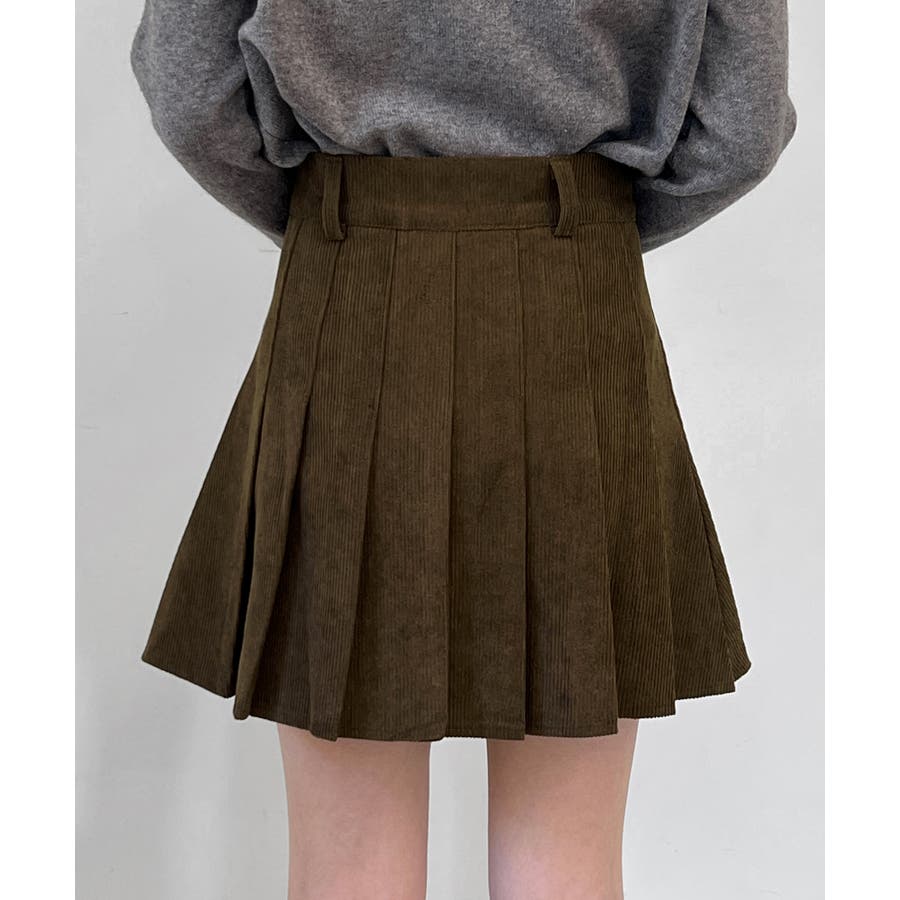 秋冬らしい表情を添えるコーデュロイプリーツスカート。