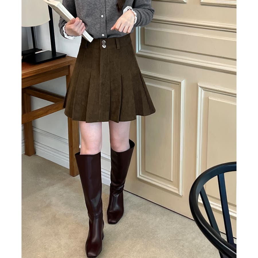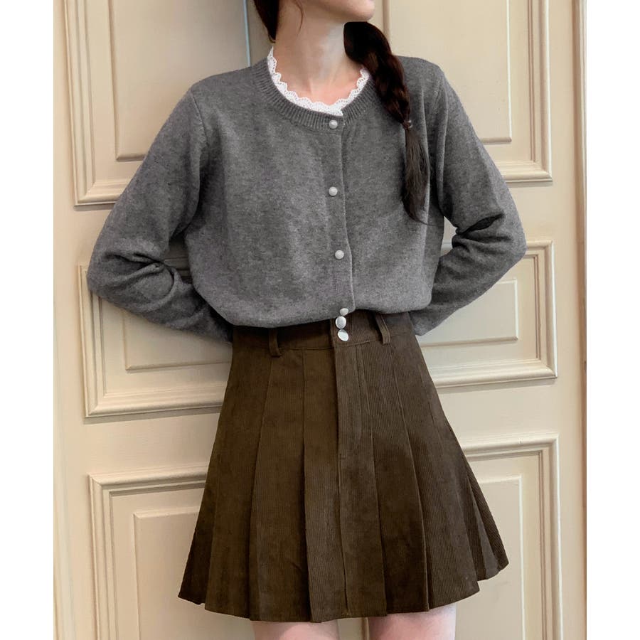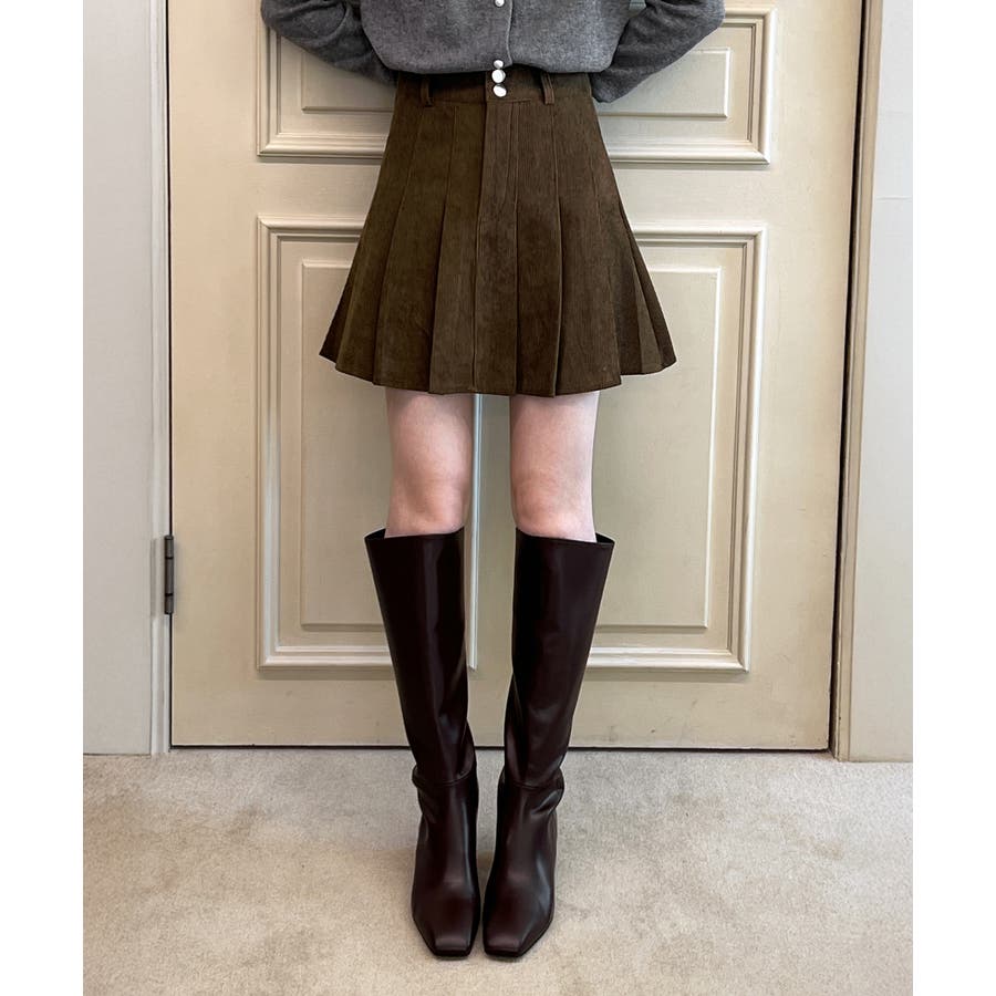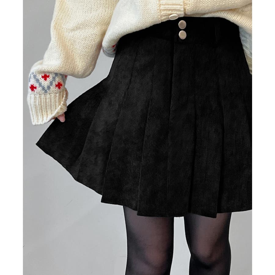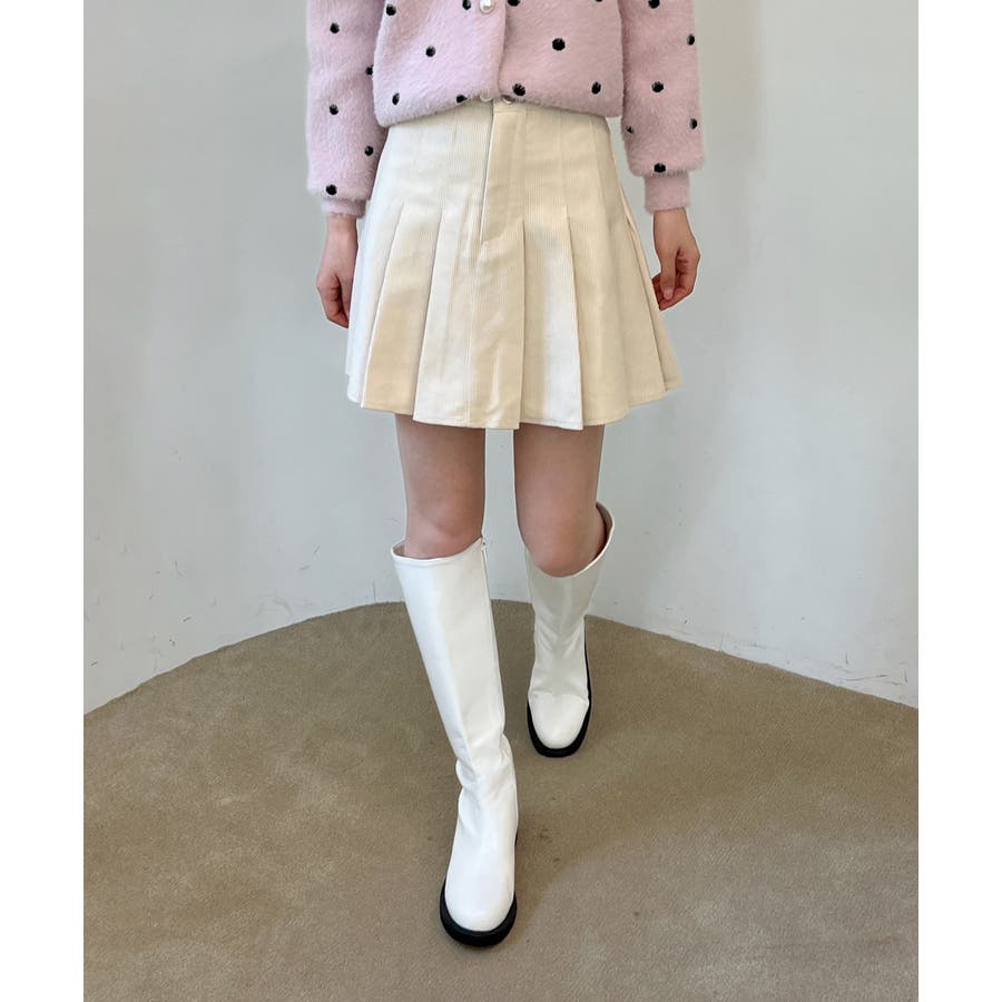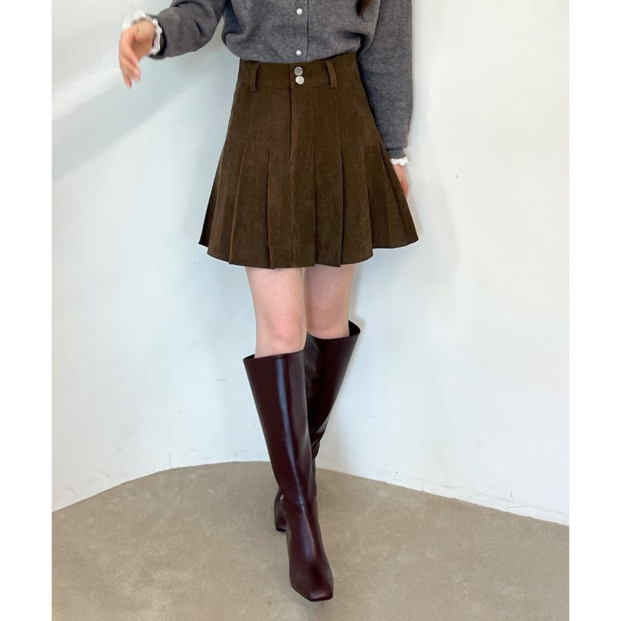 秋冬らしい表情を添えるコーデュロイプリーツスカート。