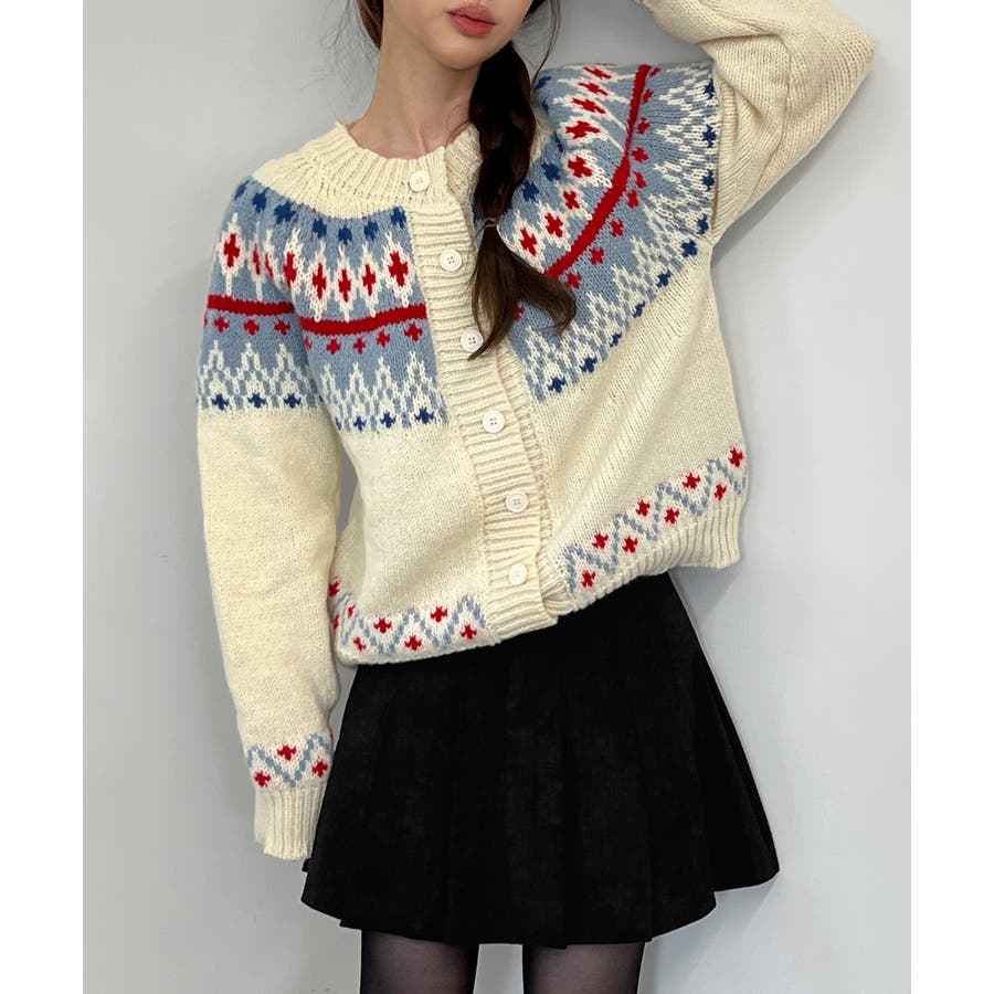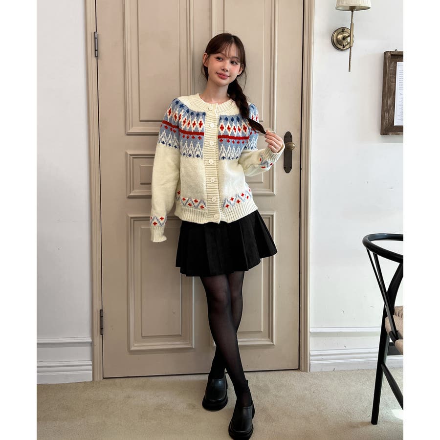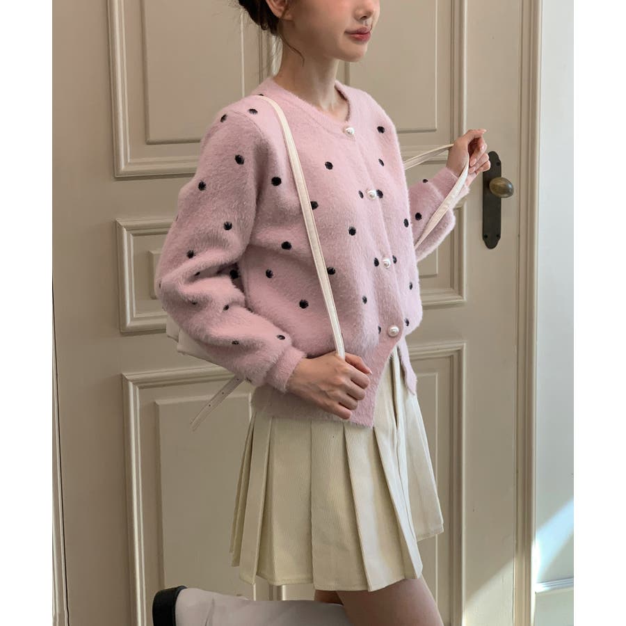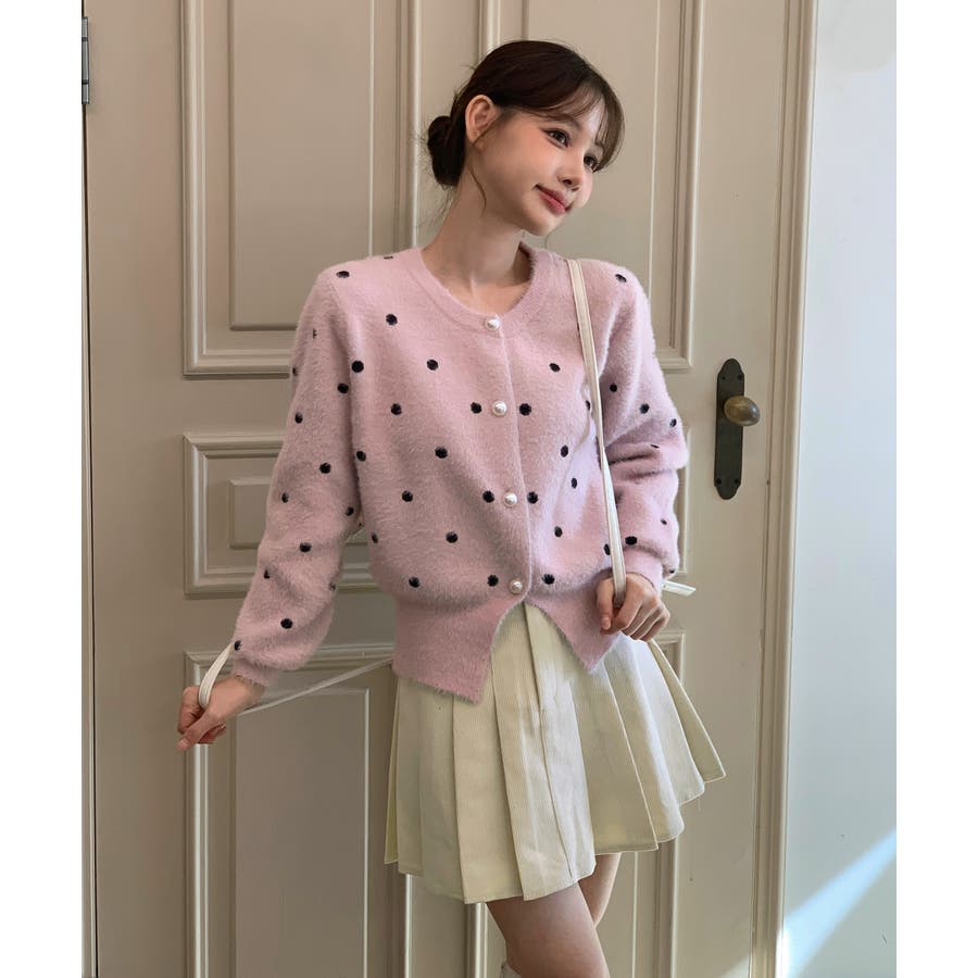 ラブリールック → ドット柄カーディガンやリボンブラウスと合わせて、可憐でガーリーな雰囲気に。
