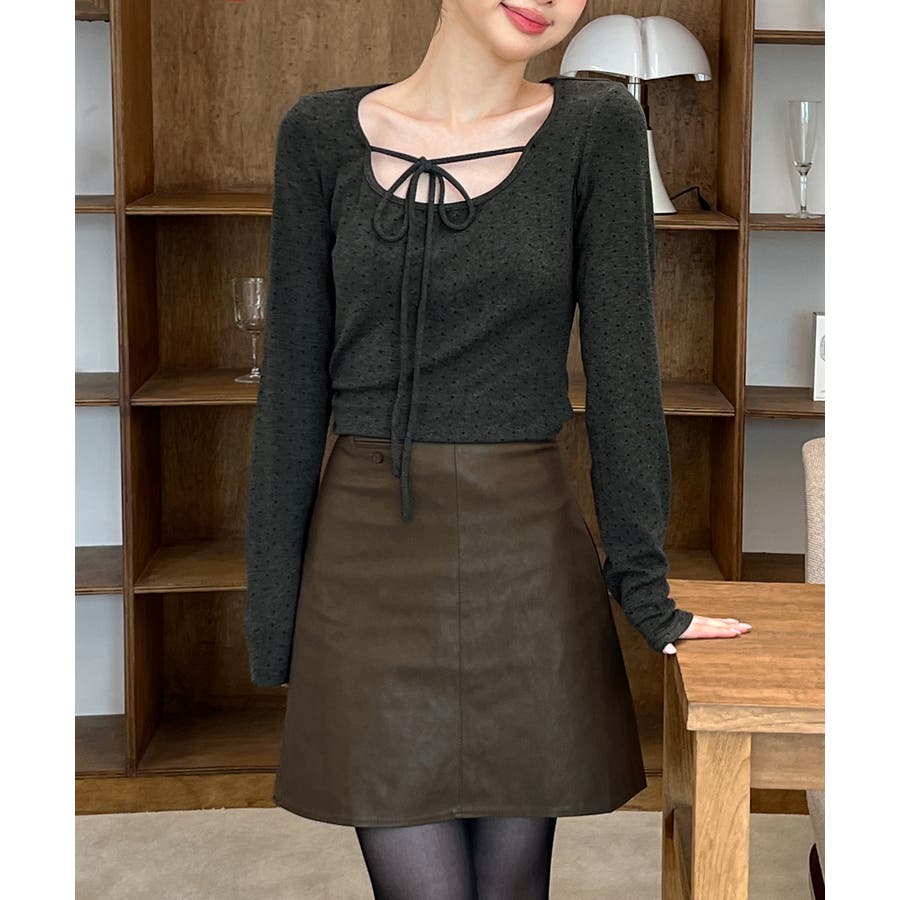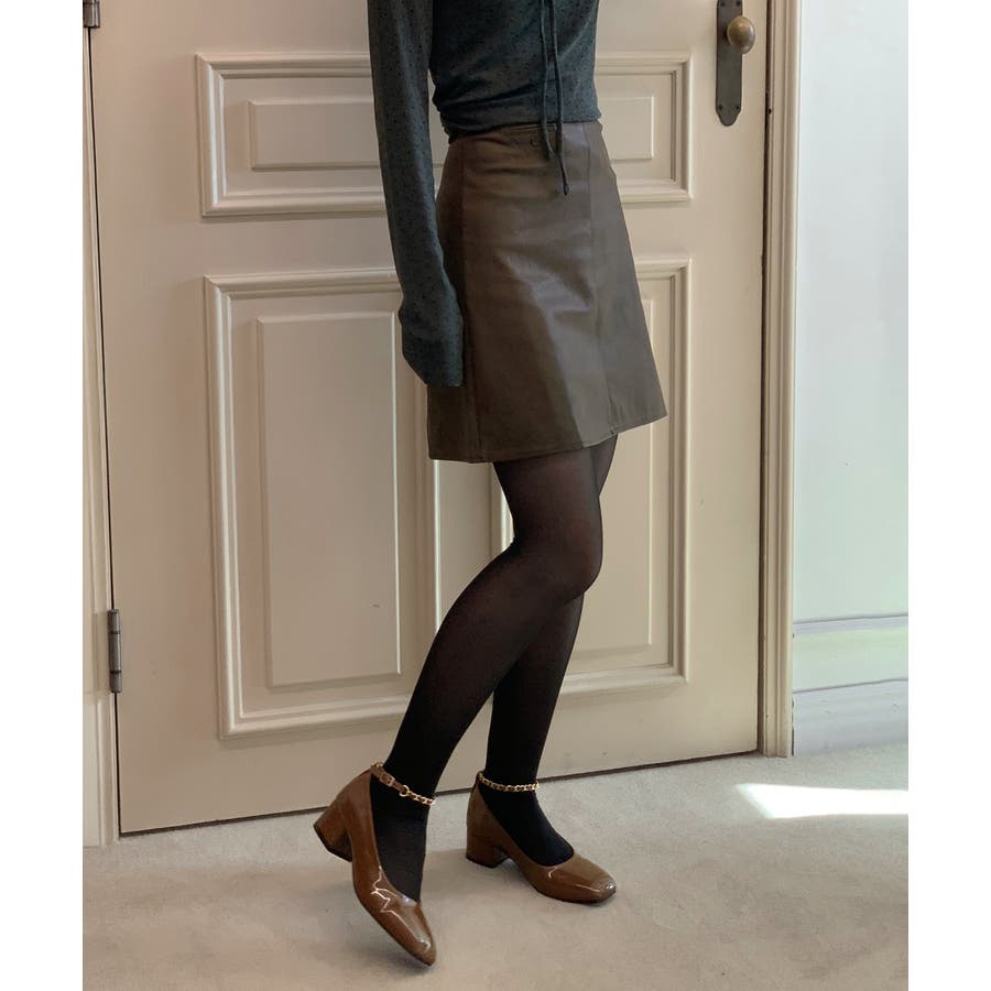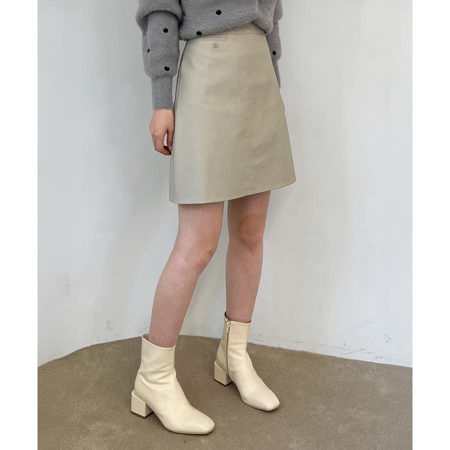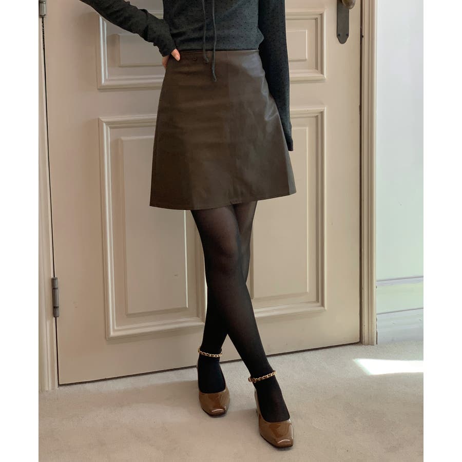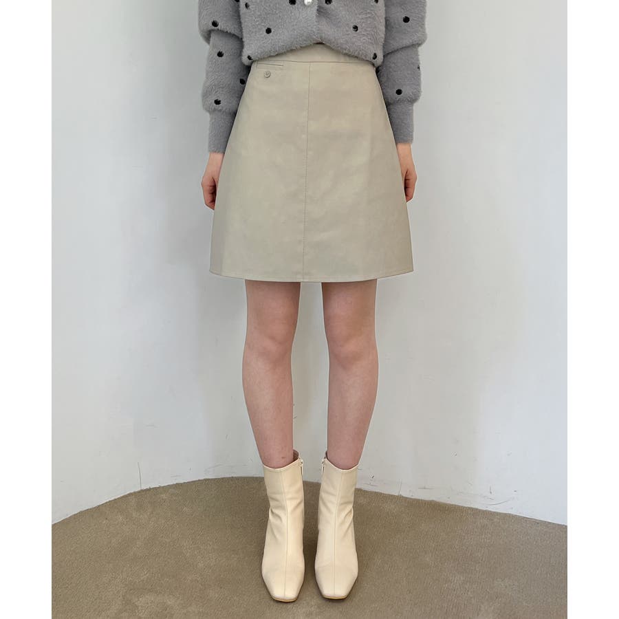 クラシックでありながらフェミニンな魅力を引き立てるレザーAラインスカート。