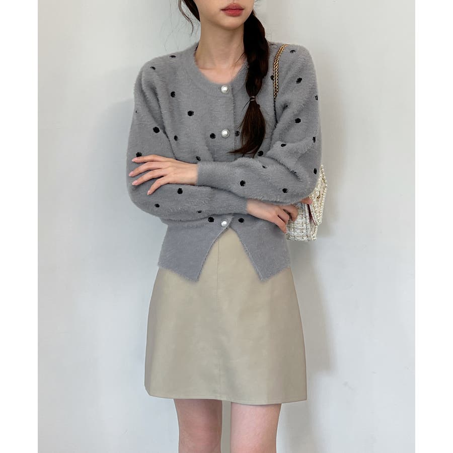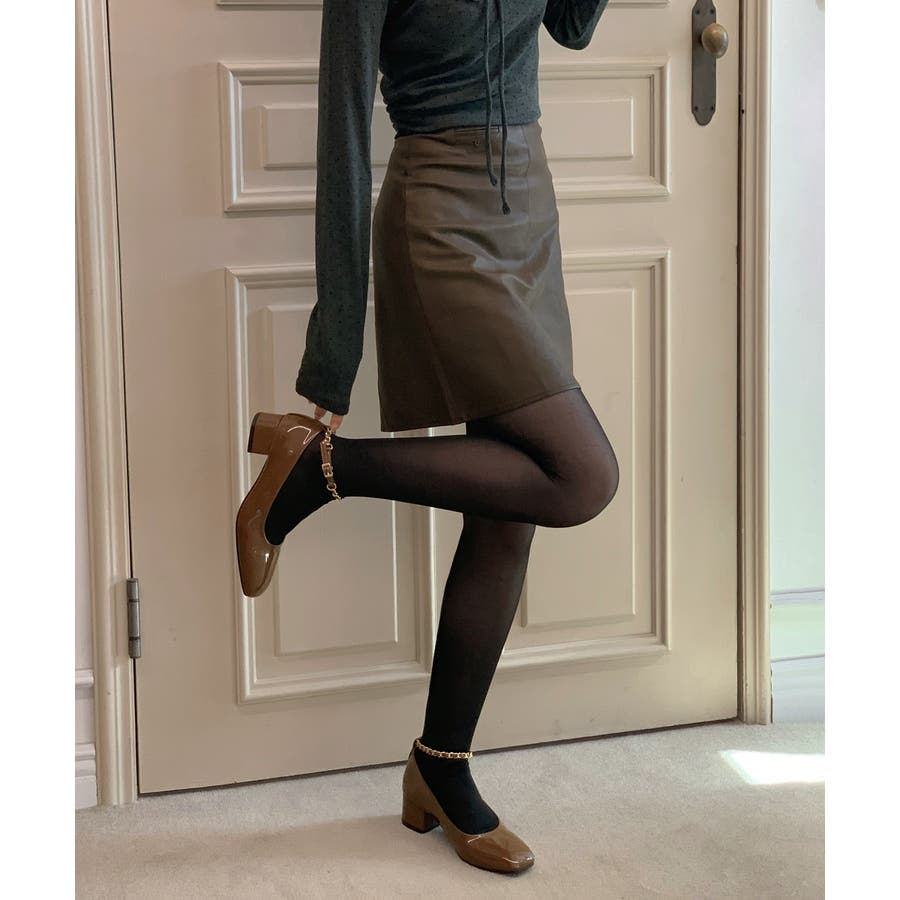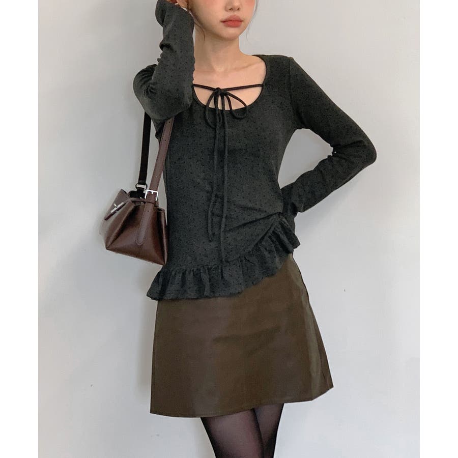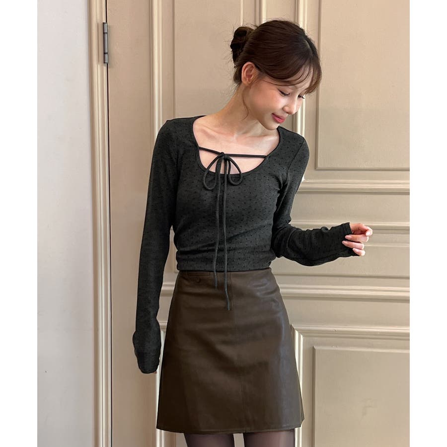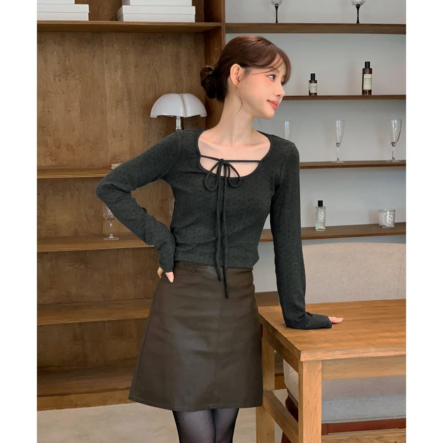 クラシックでありながらフェミニンな魅力を引き立てるレザーAラインスカート。