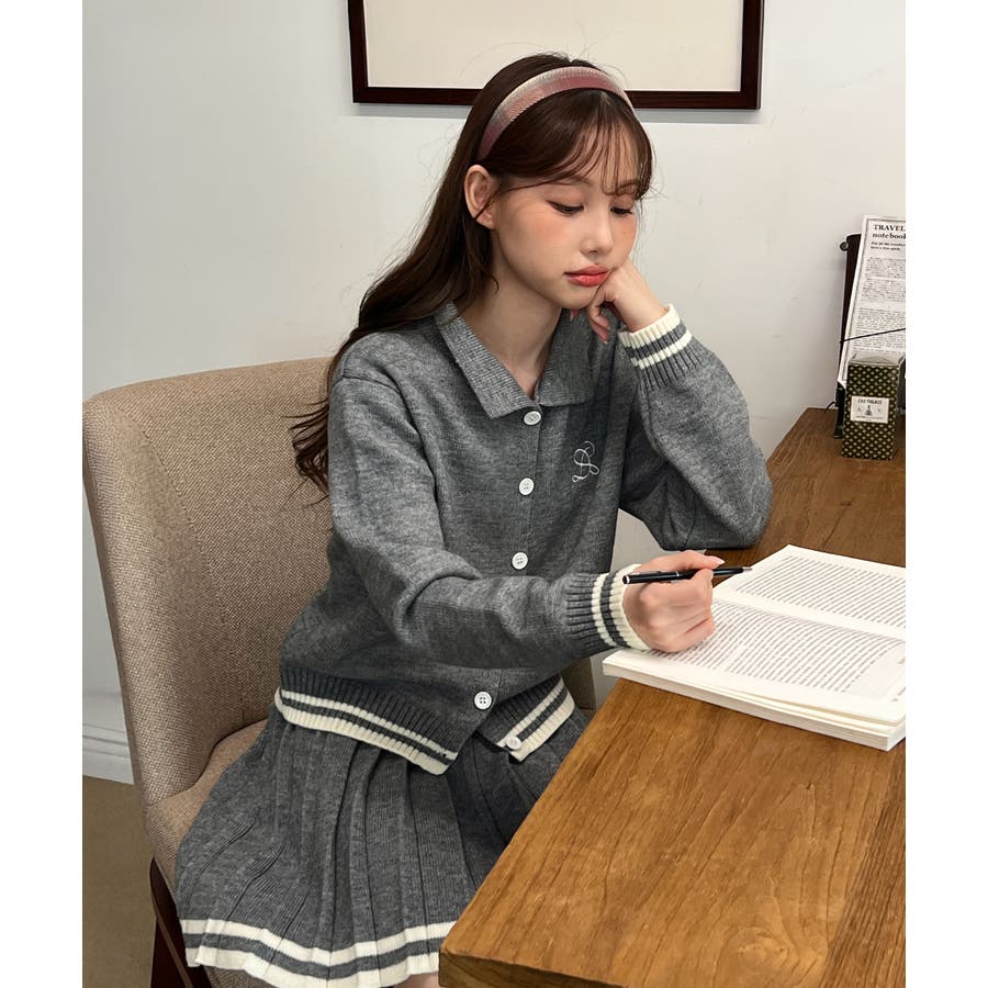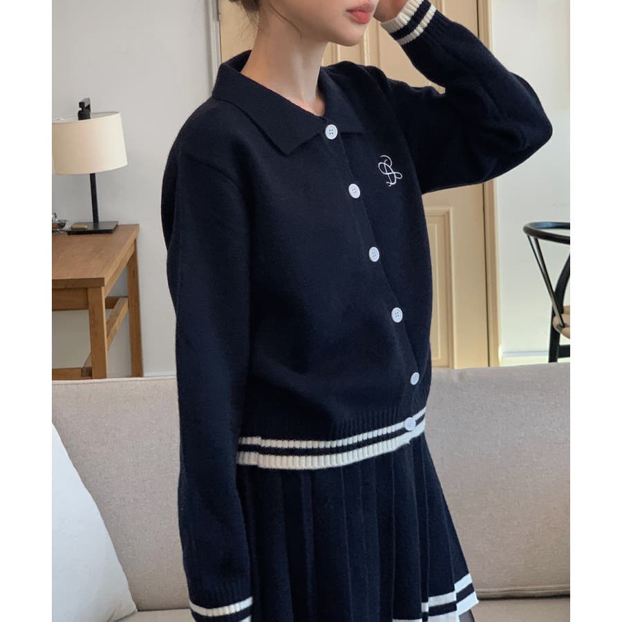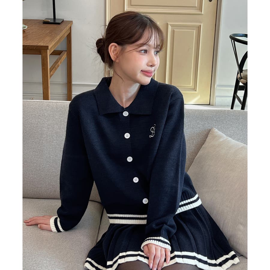 カーディガンはスタンダードフィットで端正なシルエットを演出し、フロントボタンや刺繍ディテールがさりげないアクセントに。