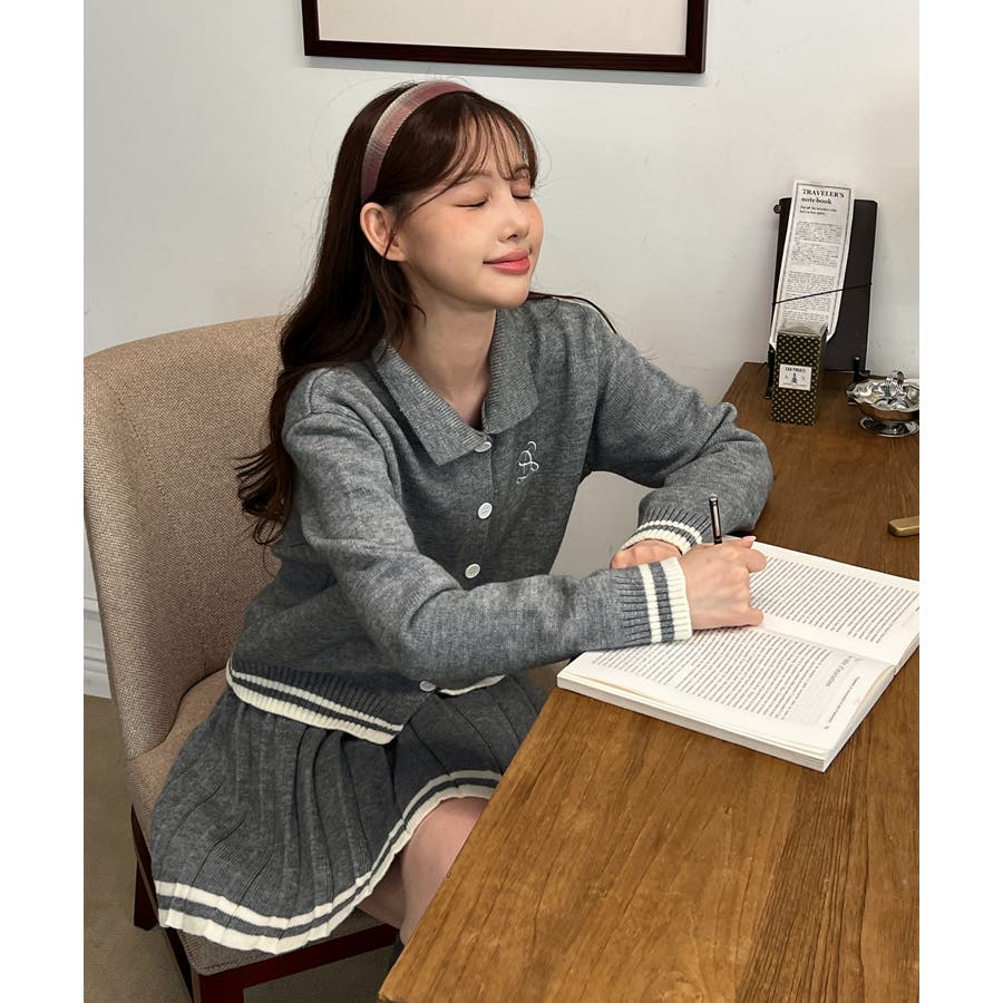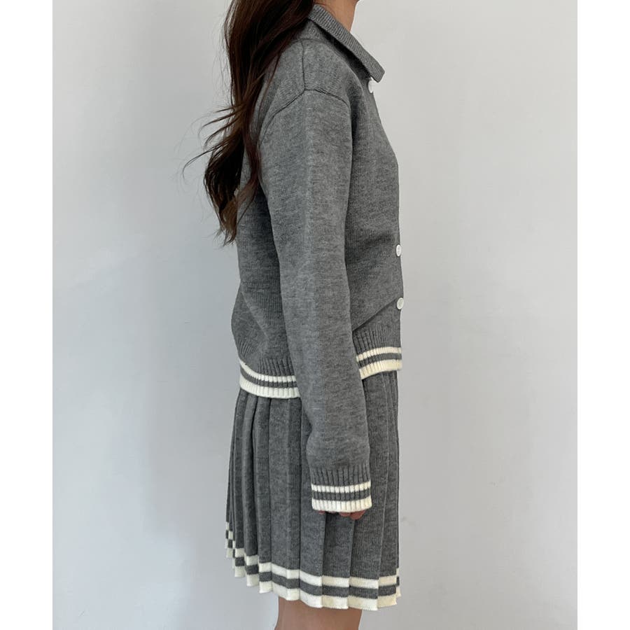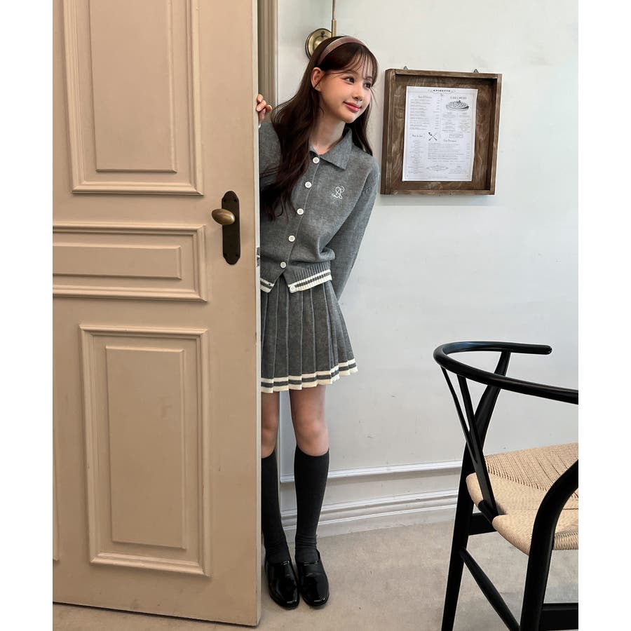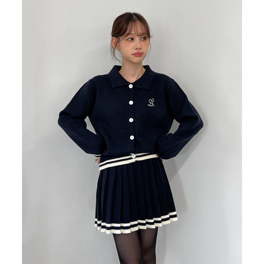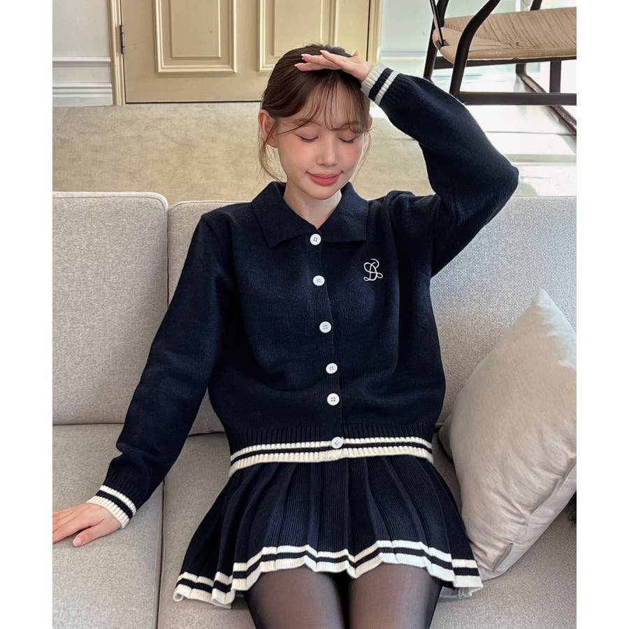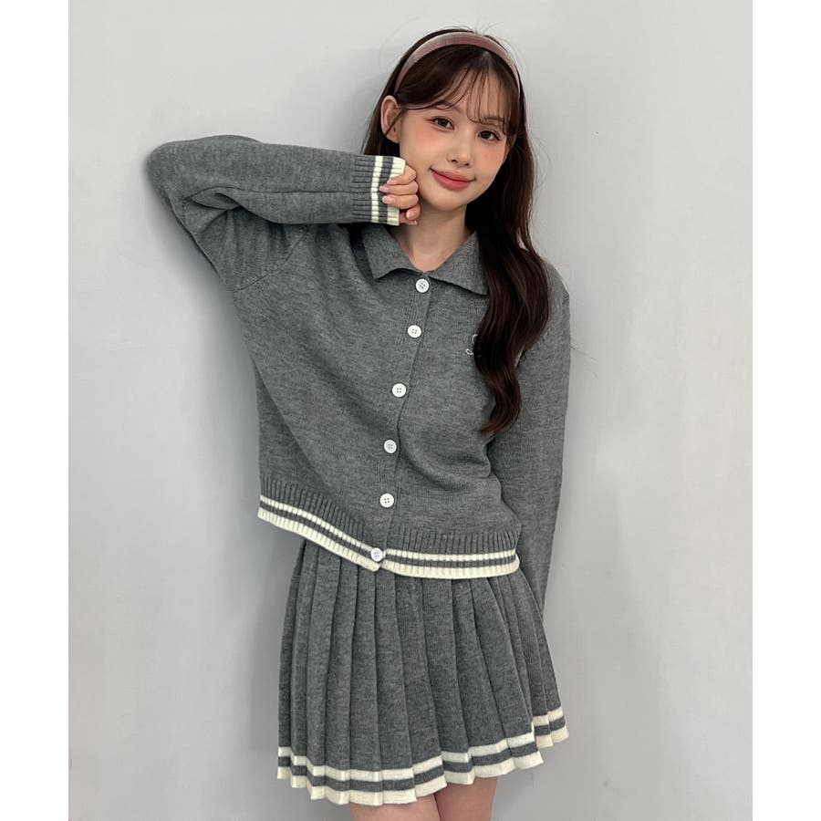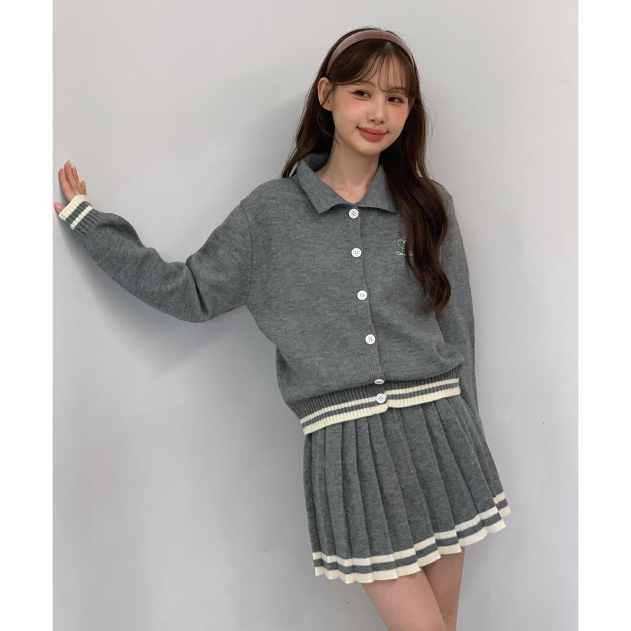 スカートはニット素材ならではの柔らかな着心地と配色ラインで、クラシカルかつ上品な印象に仕上げました。