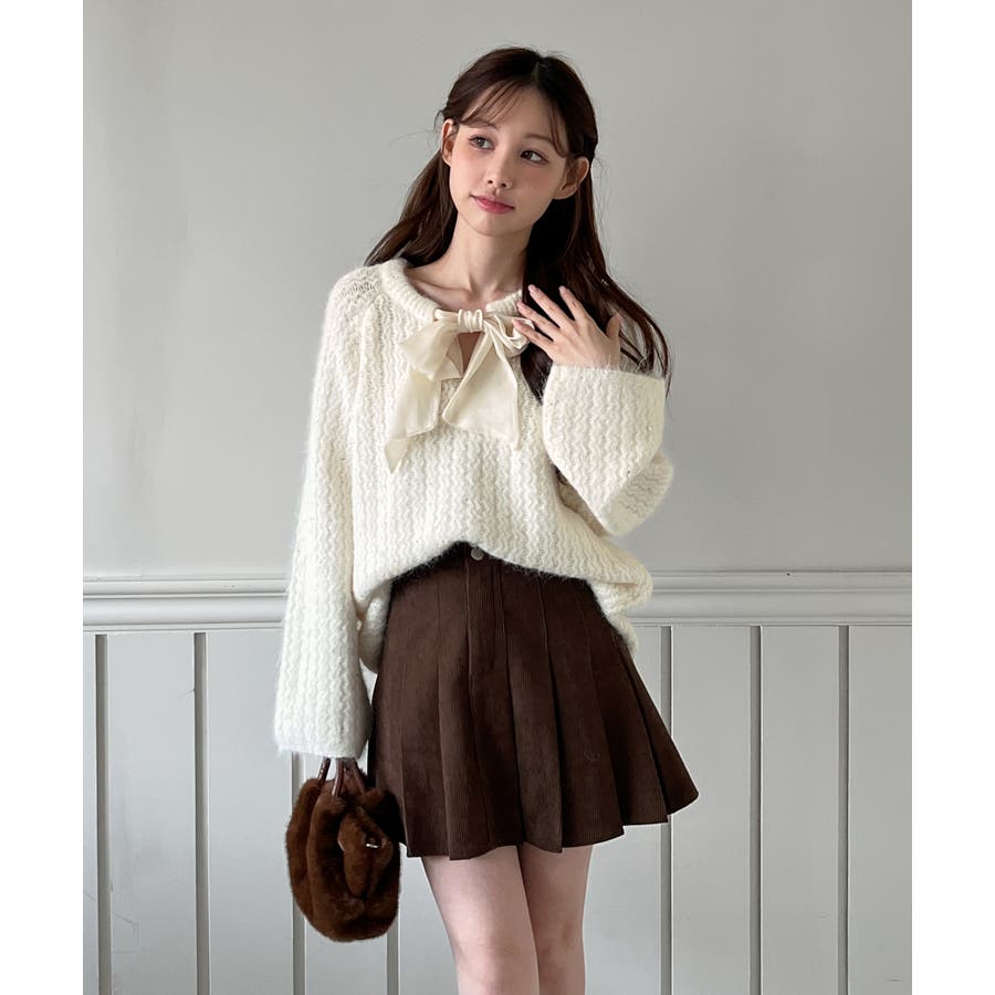 リボンは前後どちらでも結べ、スタイリングに合わせて表情をチェンジ