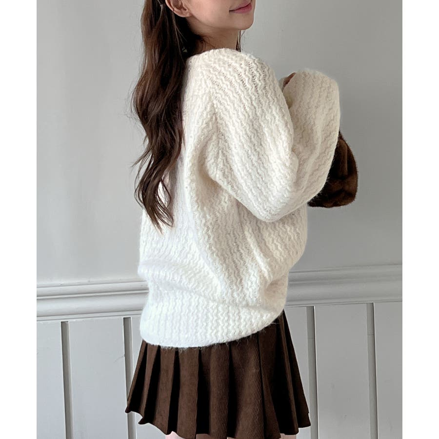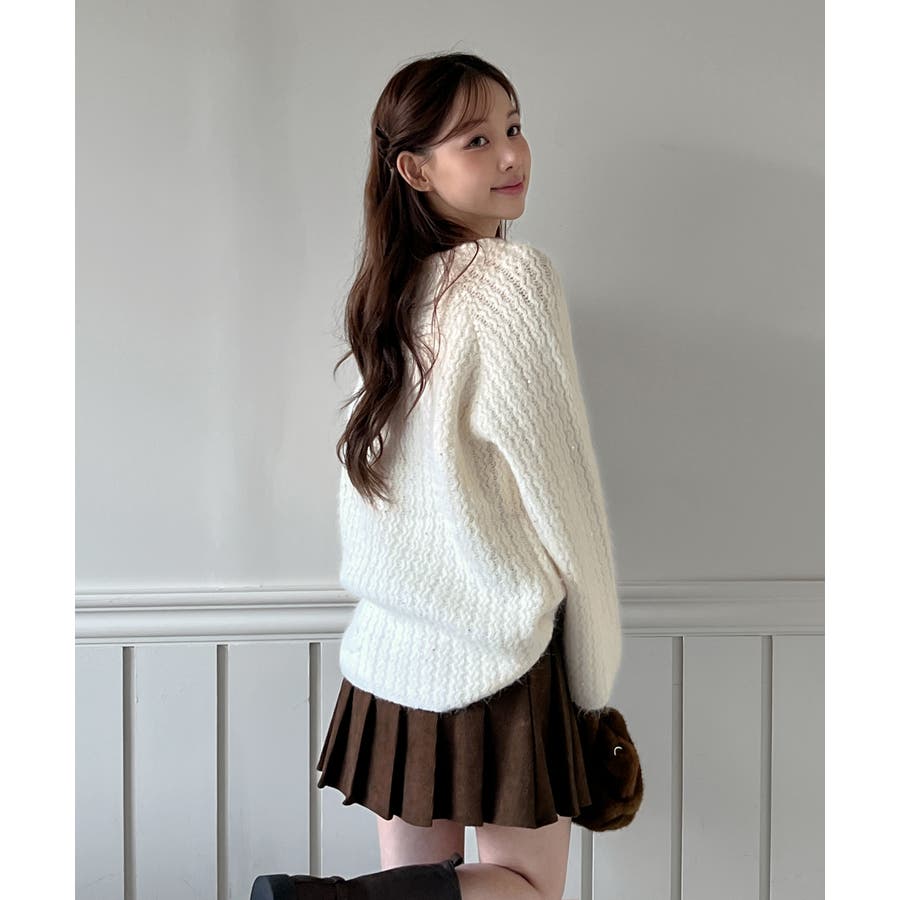 立体感のある編み地が上質さを際立たせ、スカートやパンツなど幅広いコーデに合わせやすい一枚です。