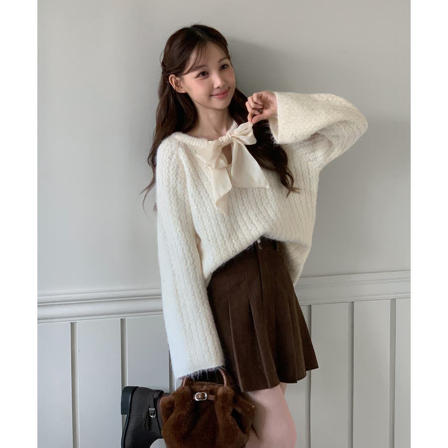 【着用動画あり 2色展開】リボンストラップポイントニット 2025