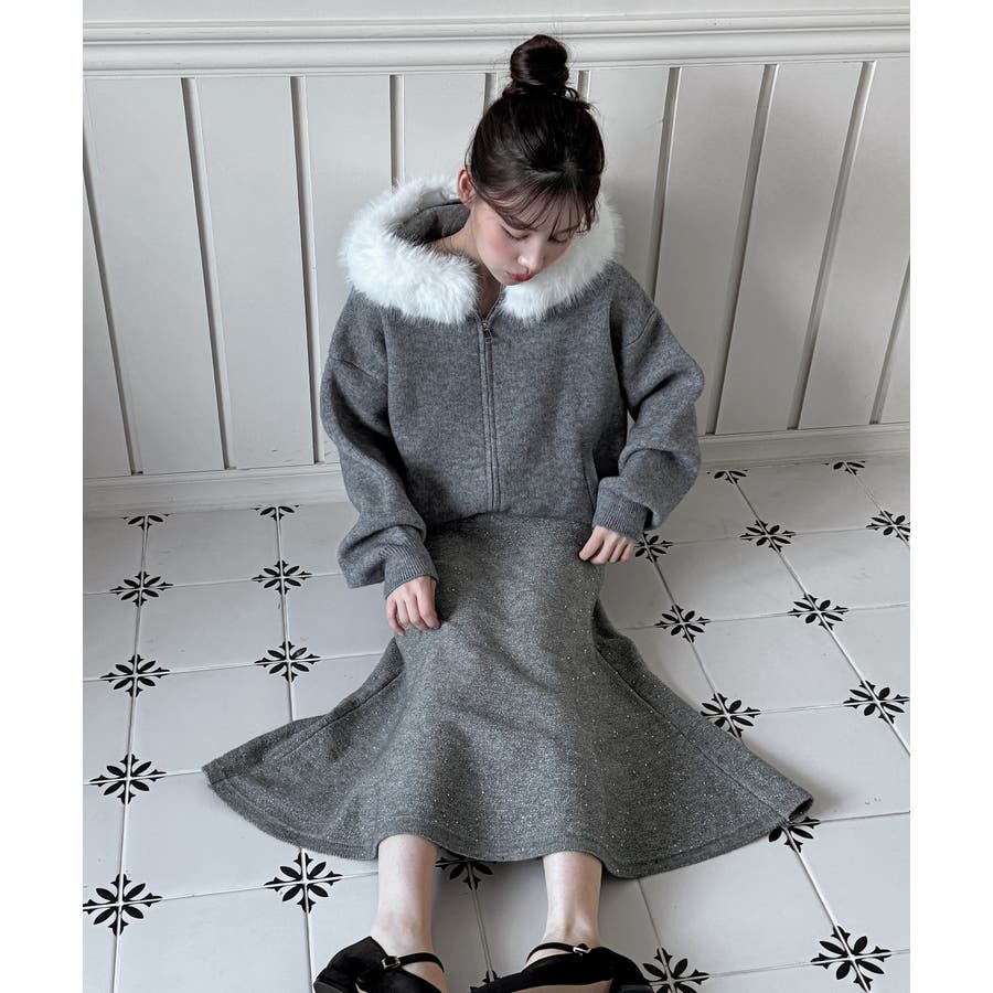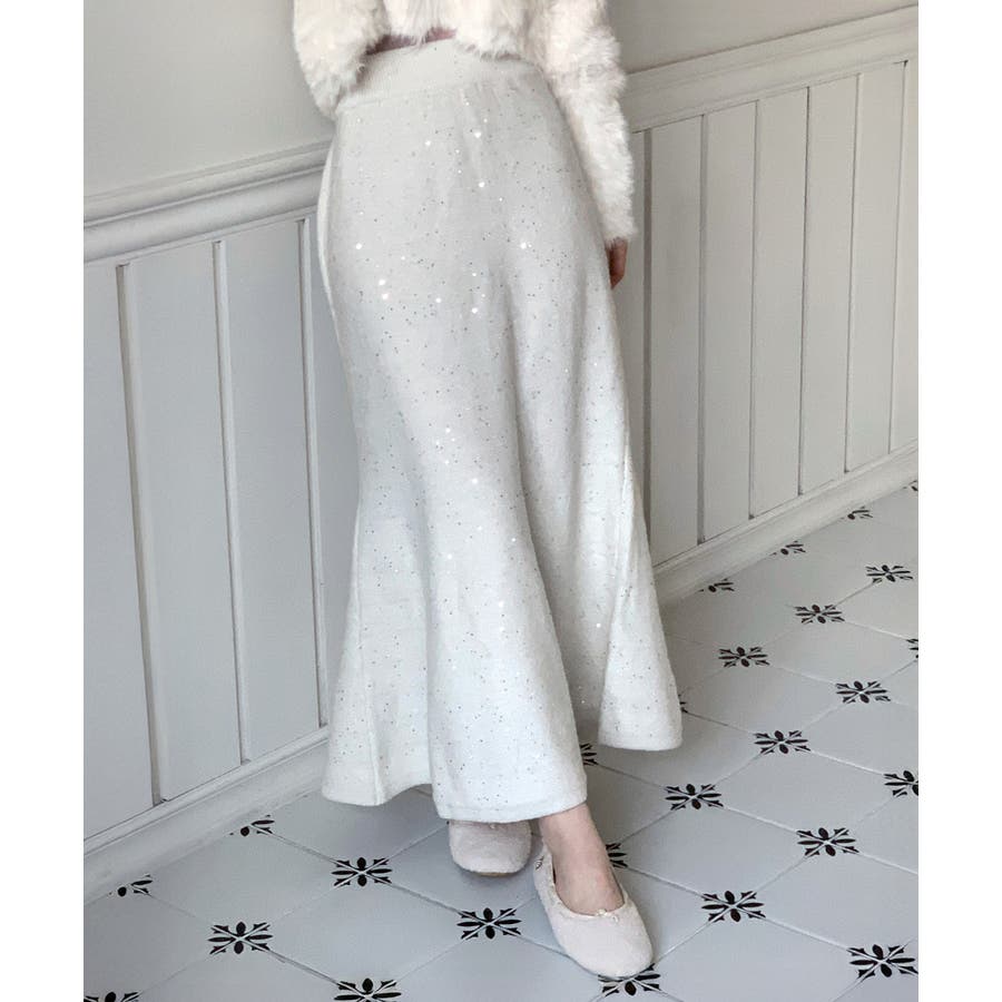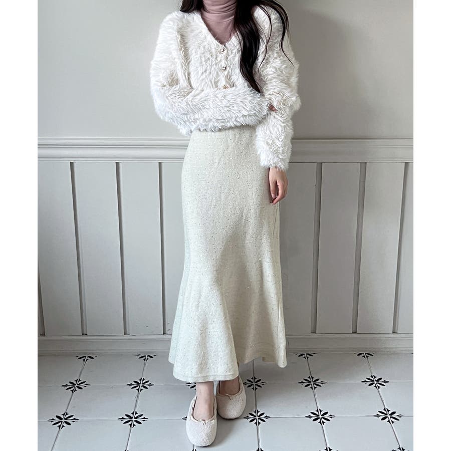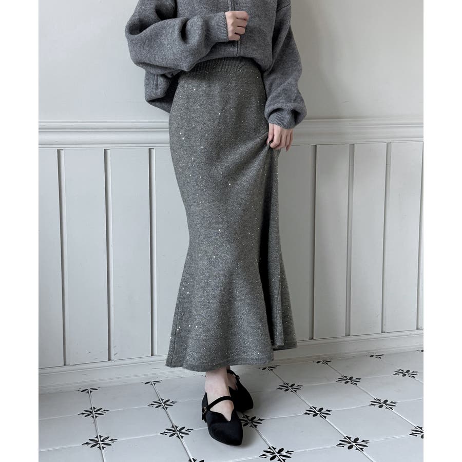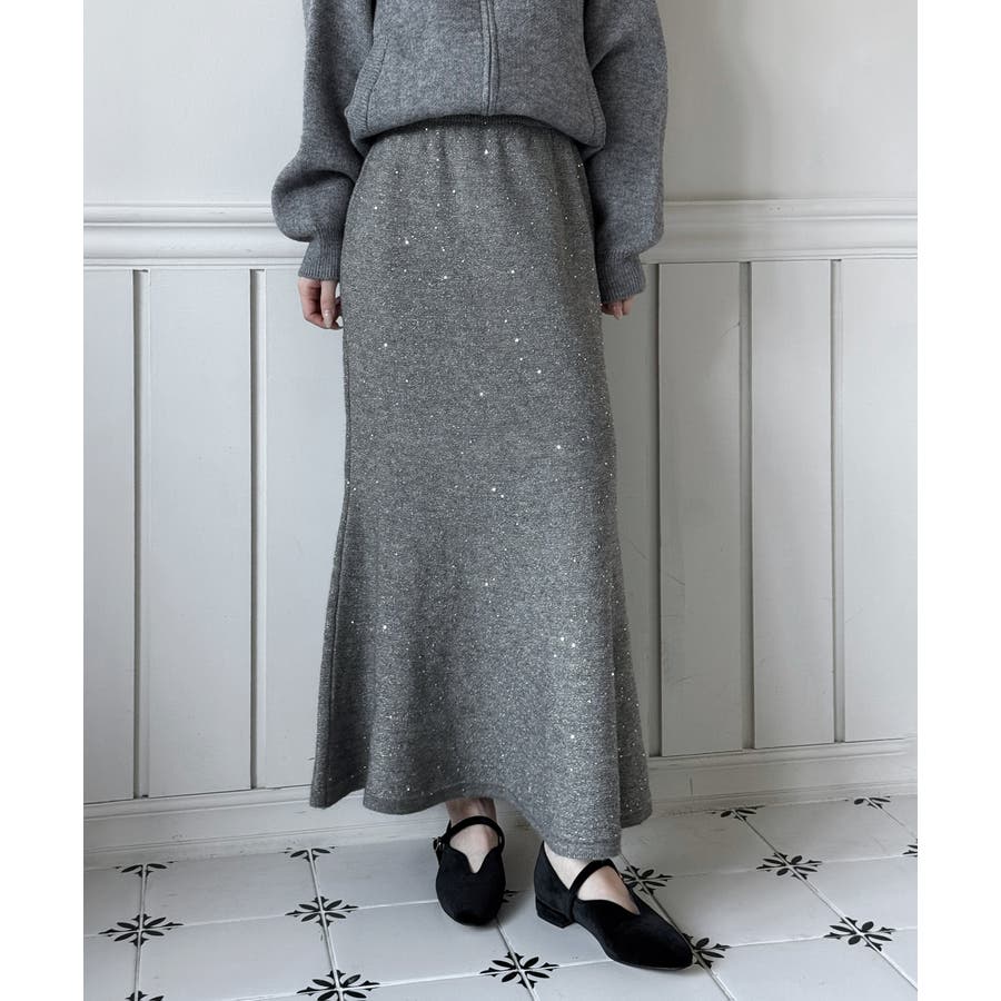 動くたびにほのかにきらめくパールポイントが魅力の、上品なフレアニットスカート。