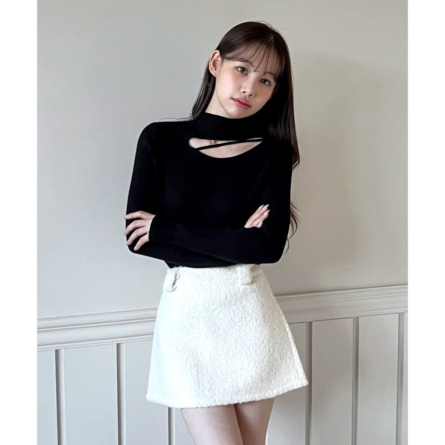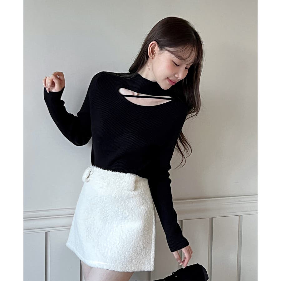 ネックラインのカットアウトが目を惹く、トレンド感たっぷりのデザイン