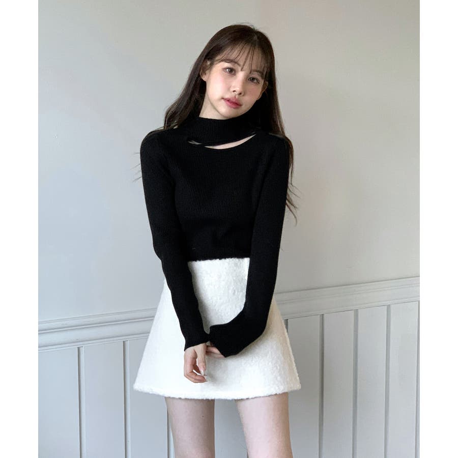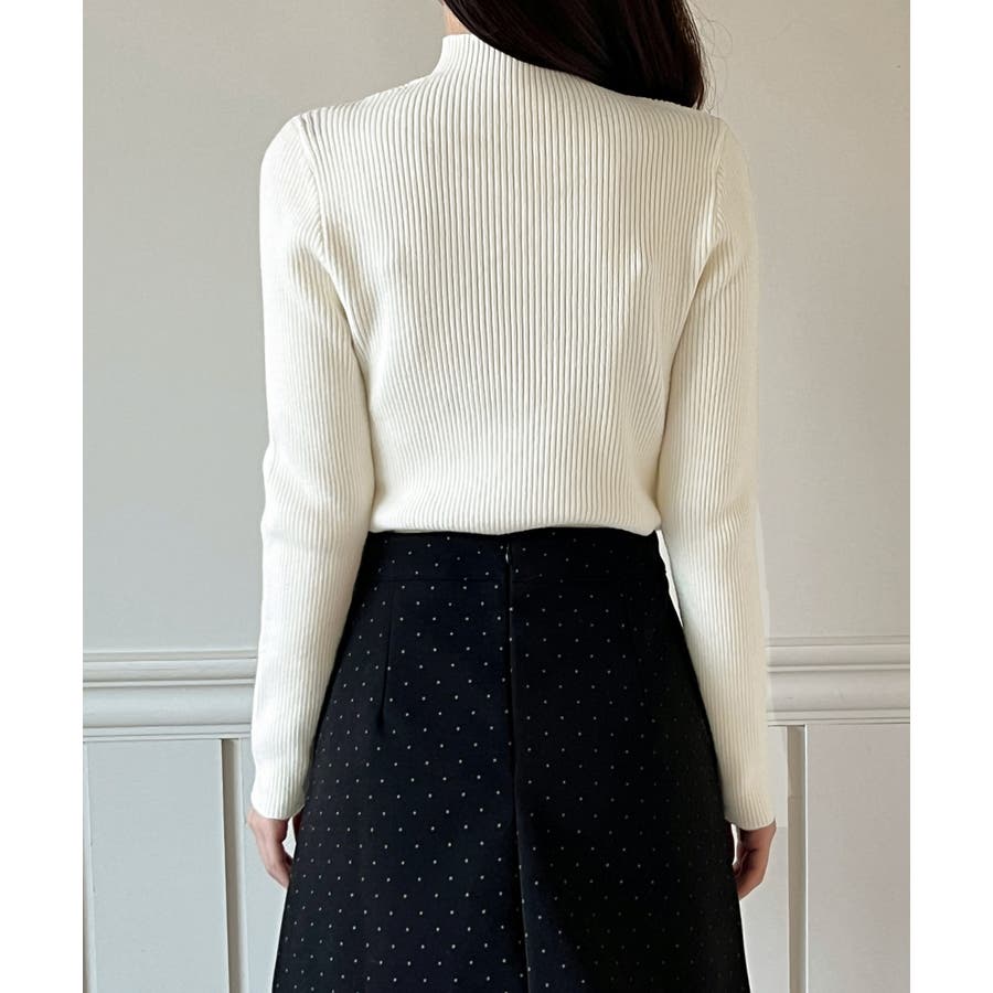 伸縮性のある柔らかなニット素材で着心地も良く、思わず手に取りたくなる一着です。